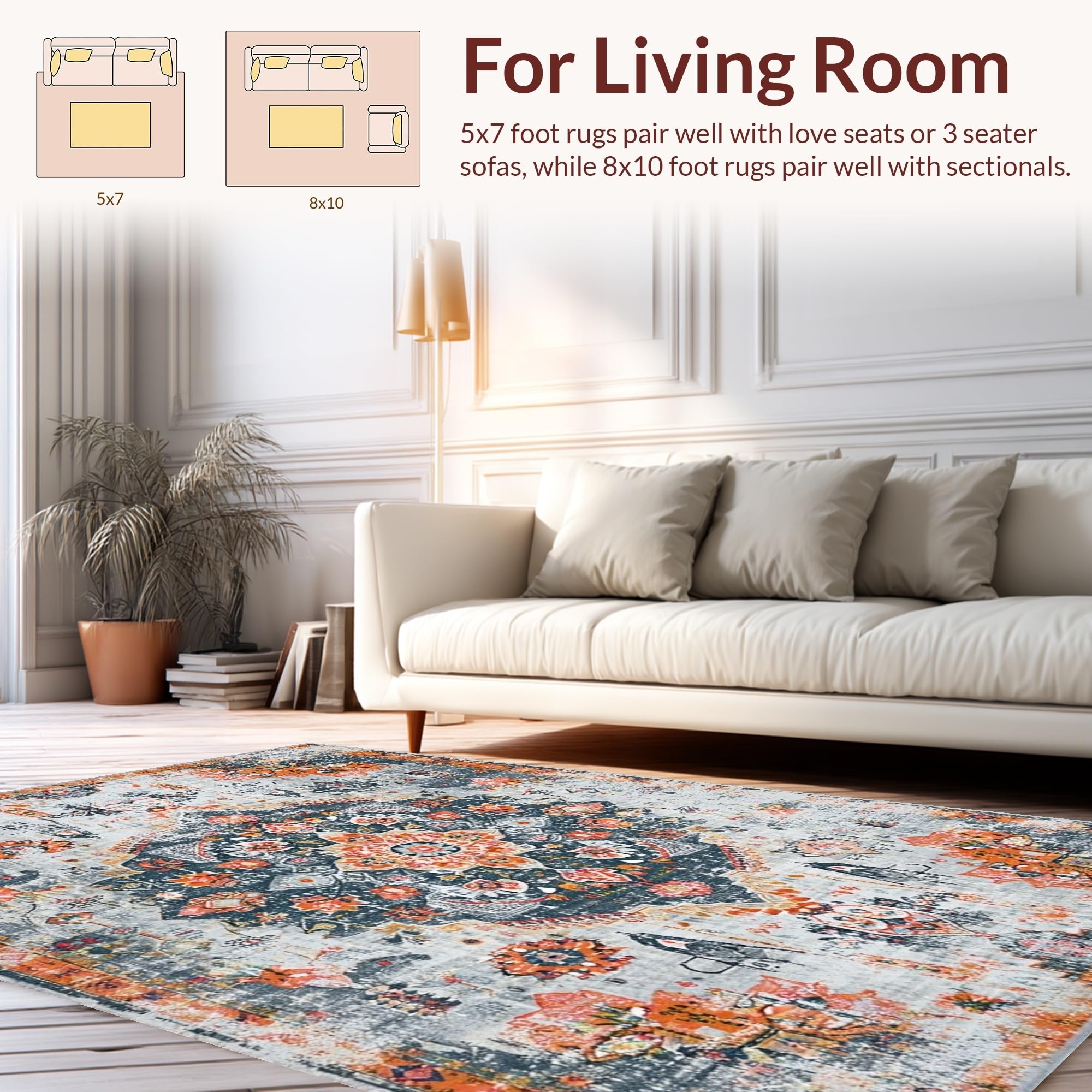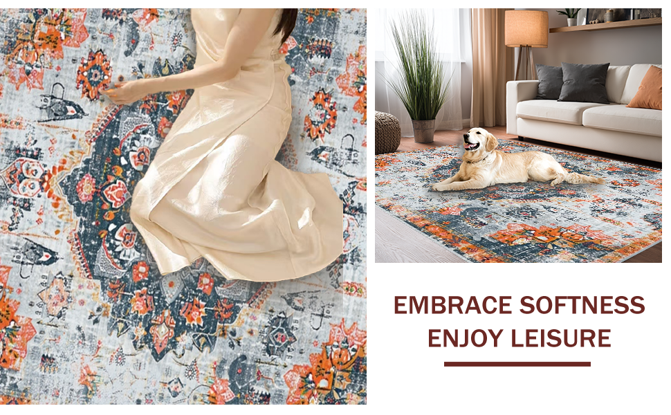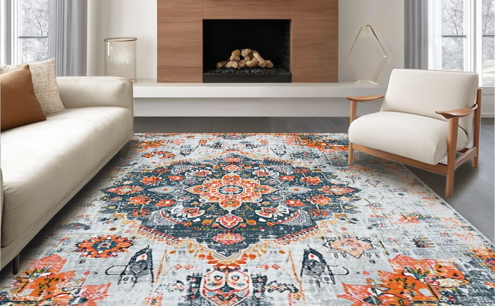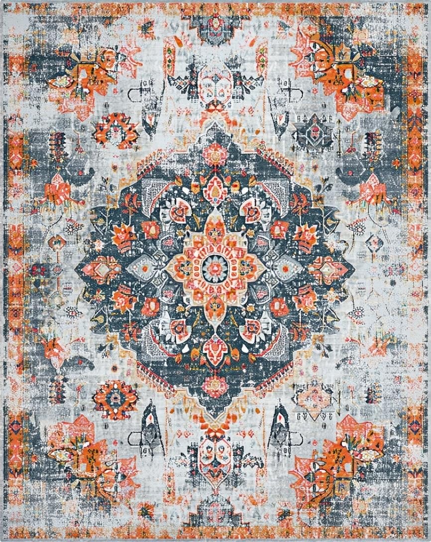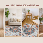Ultra Soft Area Rug, Non Slip, Stain Resistant, Washable Area Rugs for Living Room, Bedroom, Elegant Distressed Blossom Design(Gray) Overview: