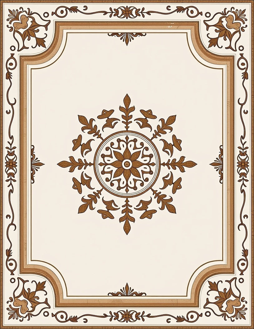 Elegant Distressed Floral Medallion with Ornate Scrollwork(Beige)