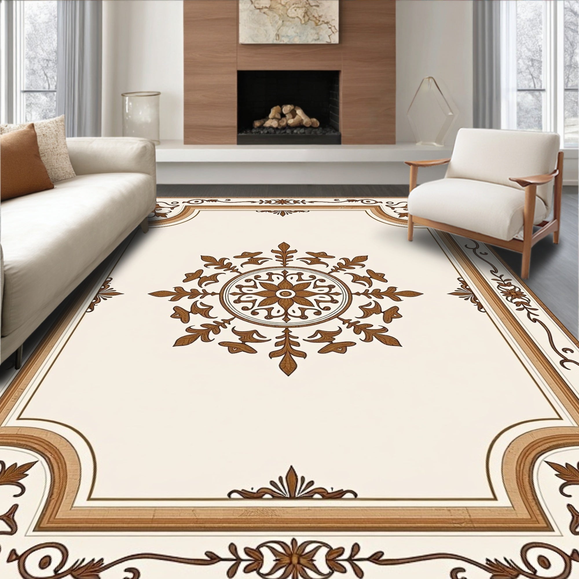 Flatwoven High Traffic Area Rug, Elegant Distressed Floral Medallion with Ornate Scrollwork, Non Slip, Stain Resistant, Washable Area Rugs for Living Room, Bedroom (Beige) Overview: