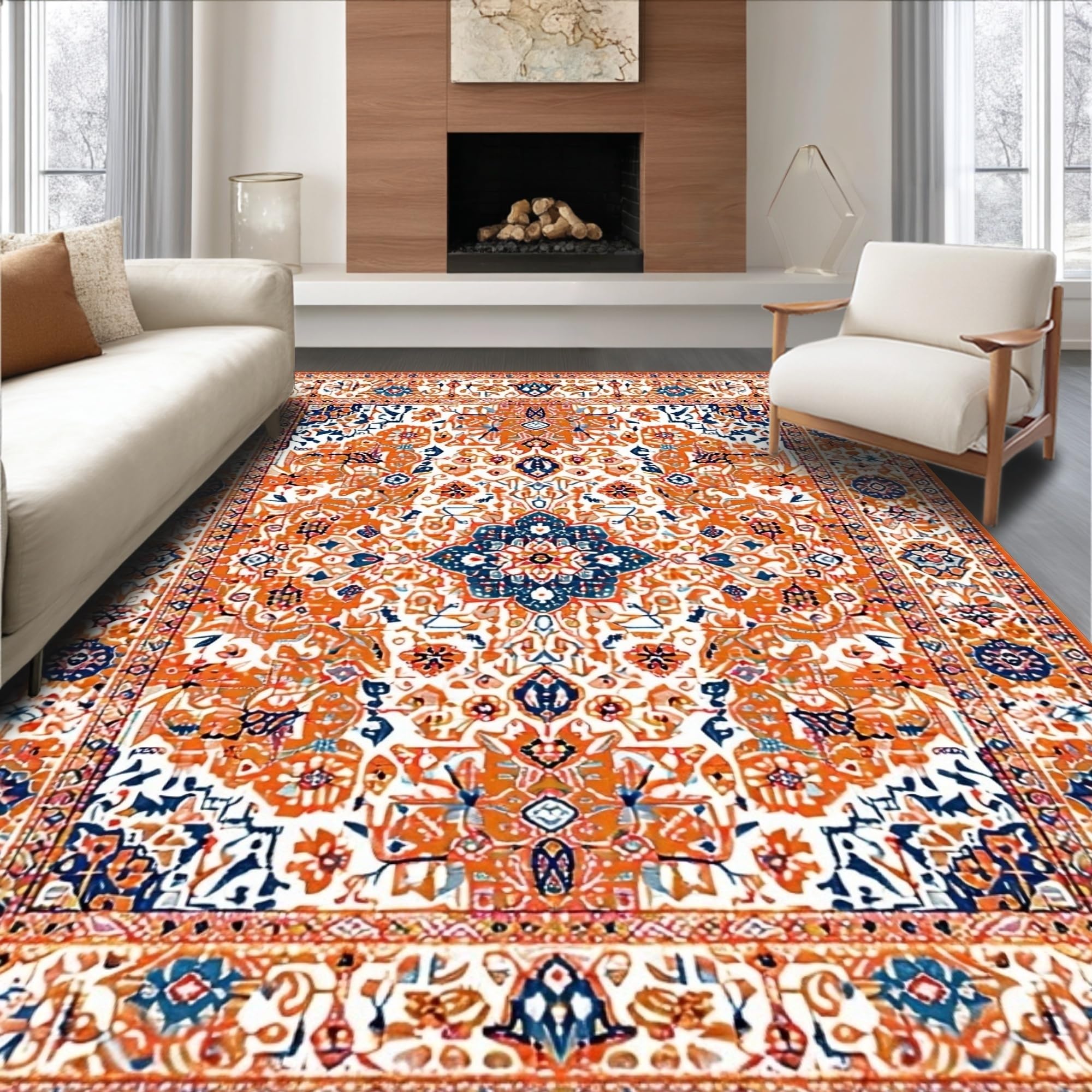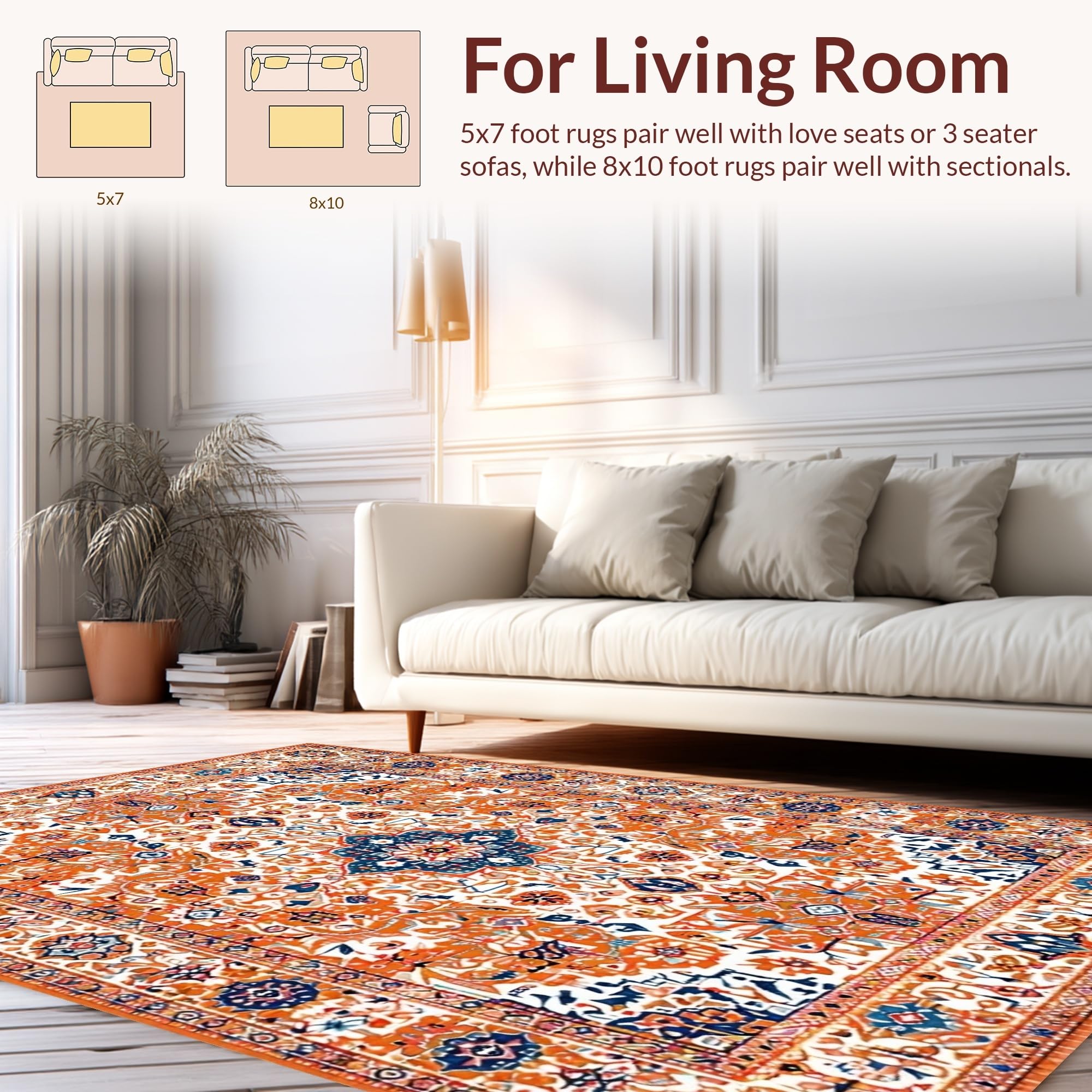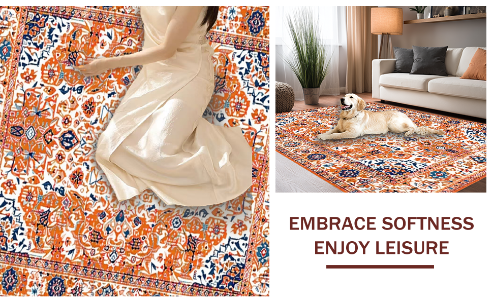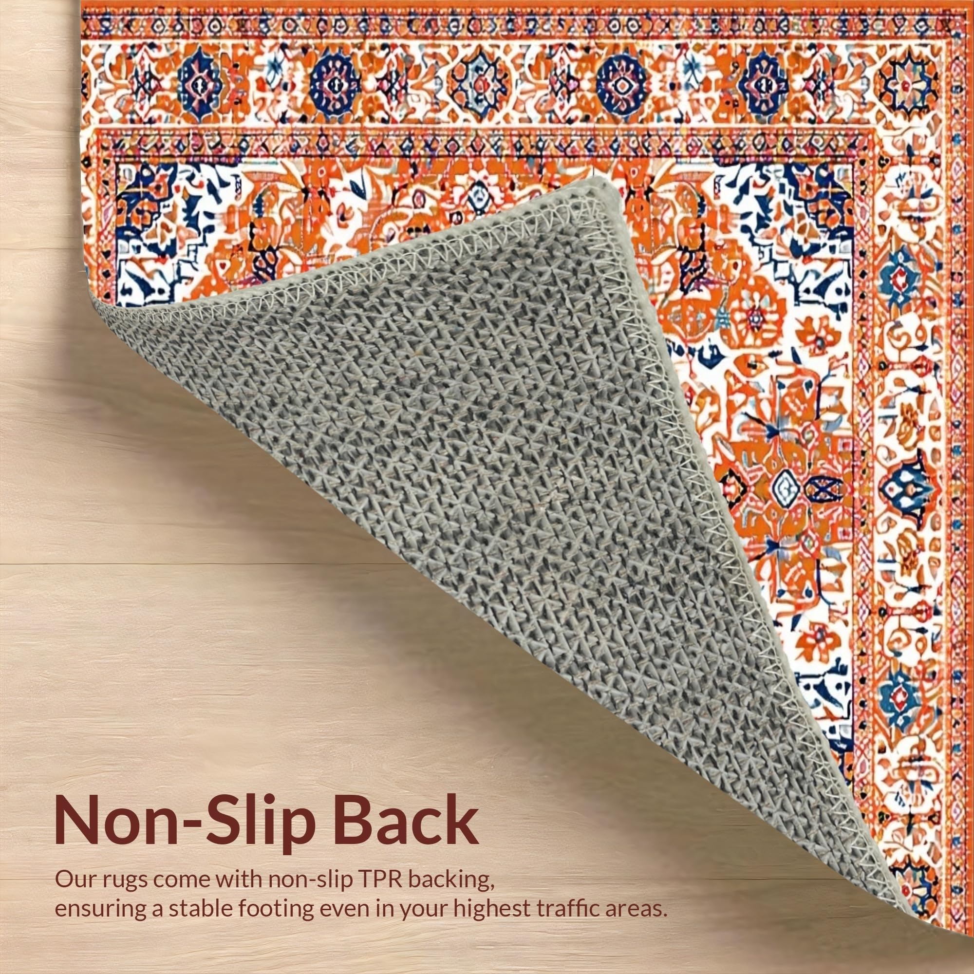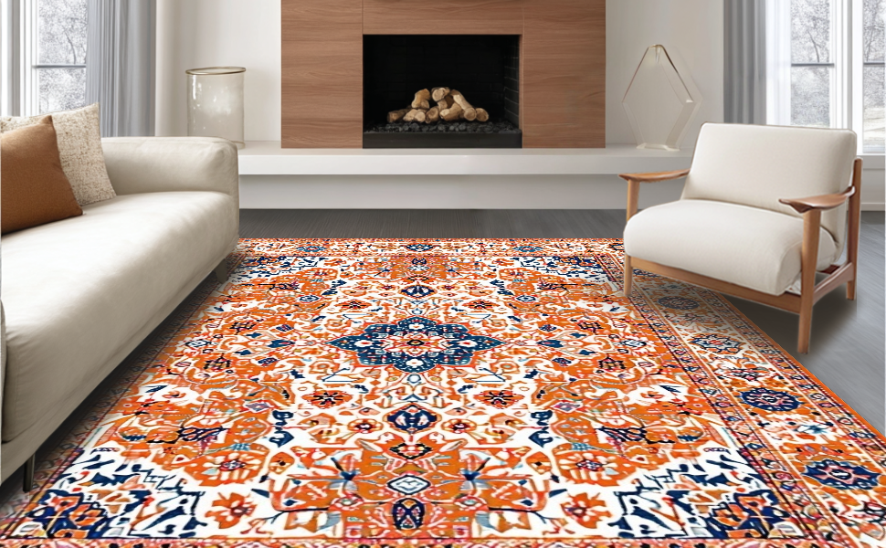 Ultra Soft Area Rug, Non Slip, Stain Resistant, Washable Area Rugs for Living Room, Bedroom, Elegant Distressed Flower Motif(Orange) Overview: