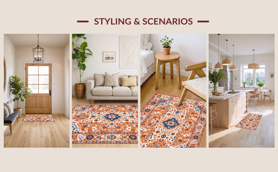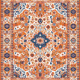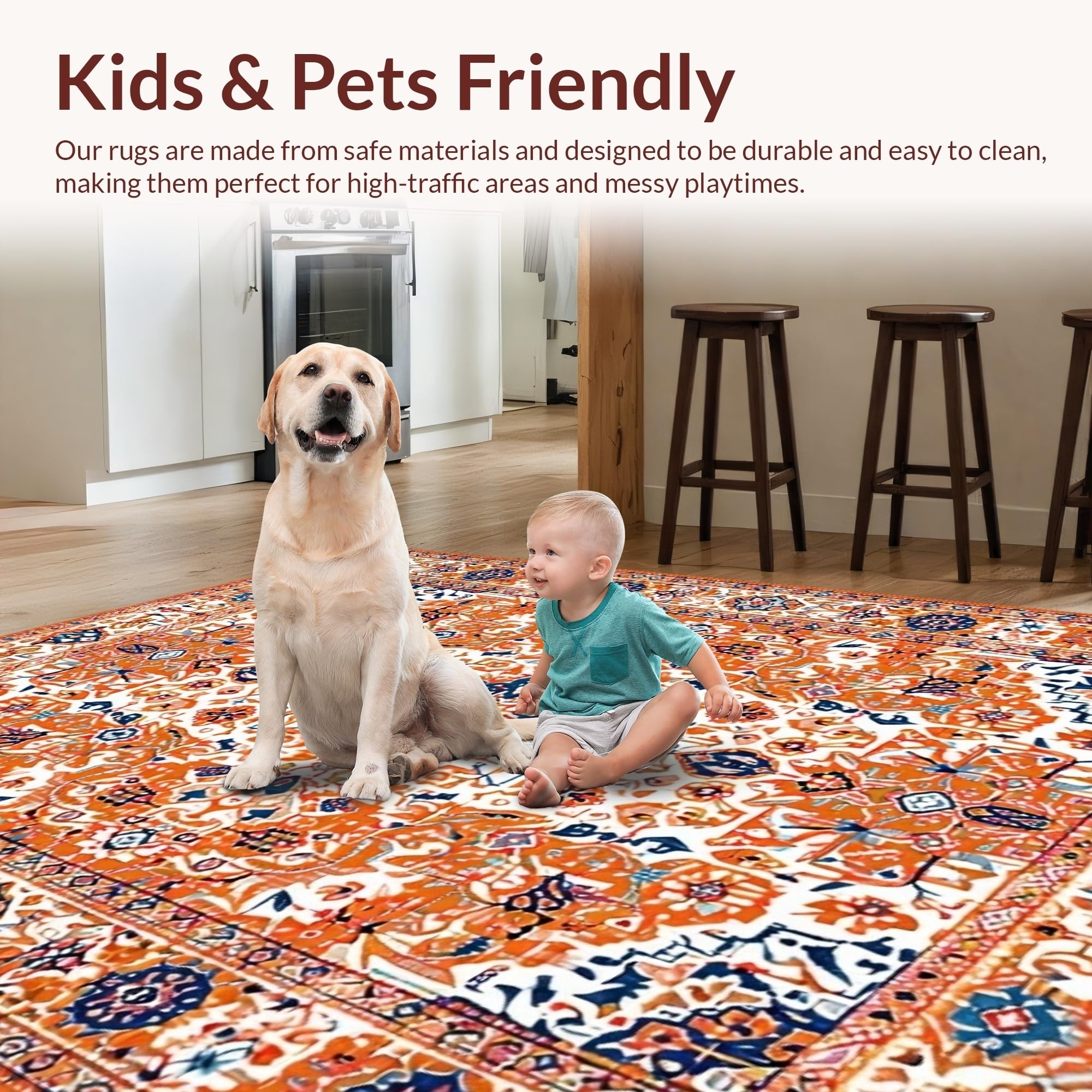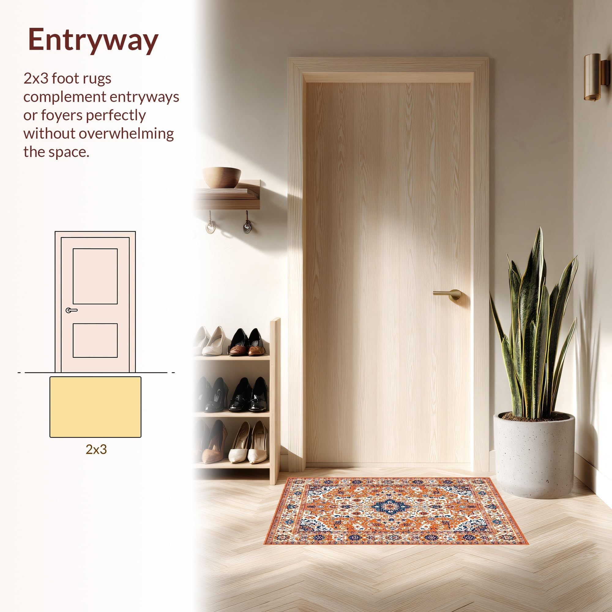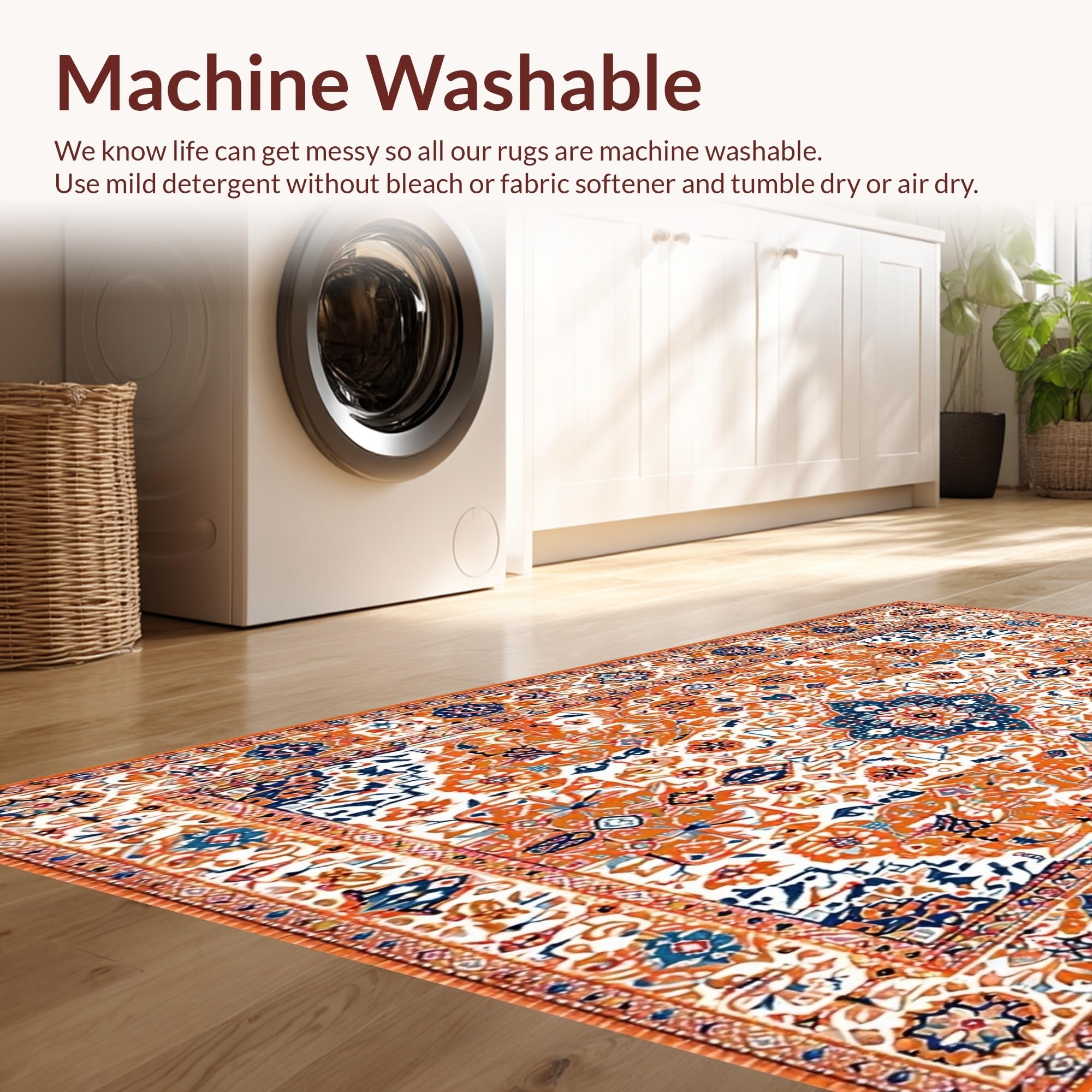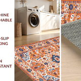 Ultra Soft Area Rug, Non Slip, Stain Resistant, Washable Area Rugs for Living Room, Bedroom, Elegant Distressed Flower Motif(Orange) Overview: