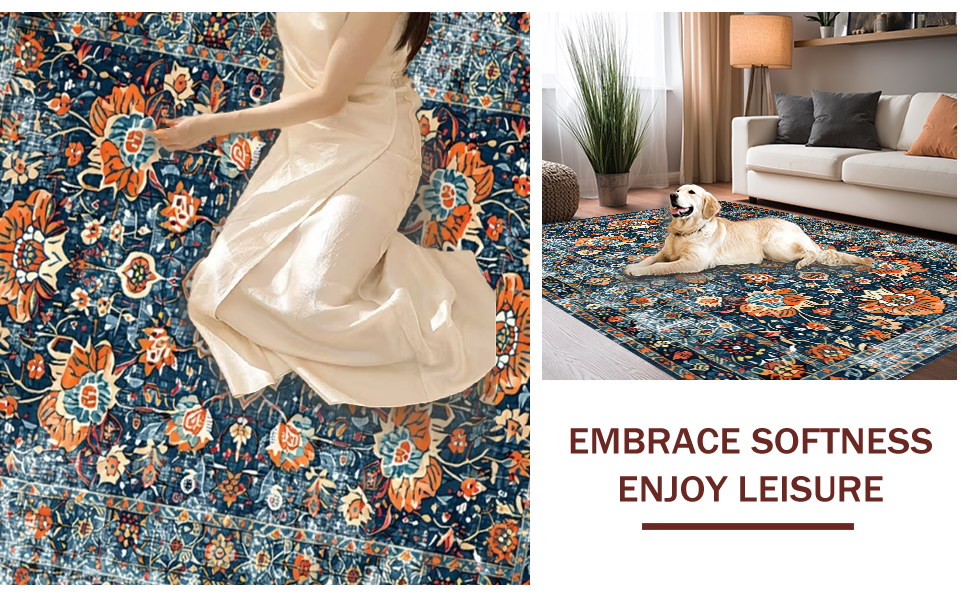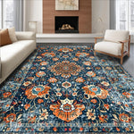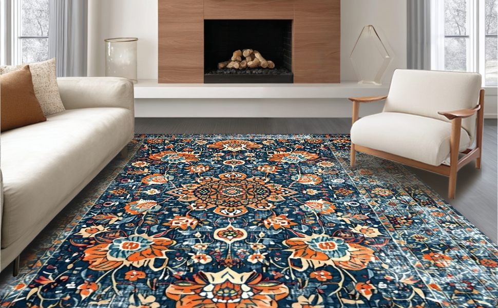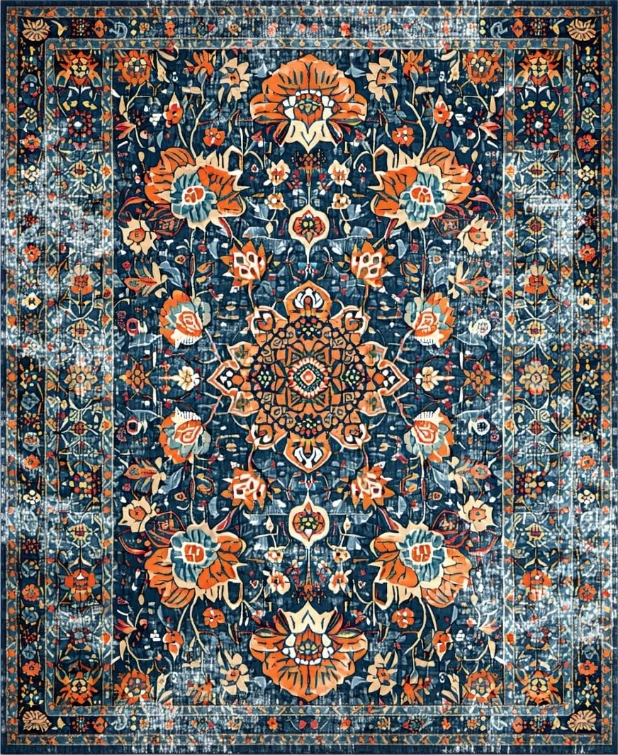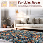 Ultra Soft Area Rug, Non Slip, Stain Resistant, Washable Area Rugs for Living Room, Bedroom, Elegant Distressed Geometric Arrangement(Blue) Overview: