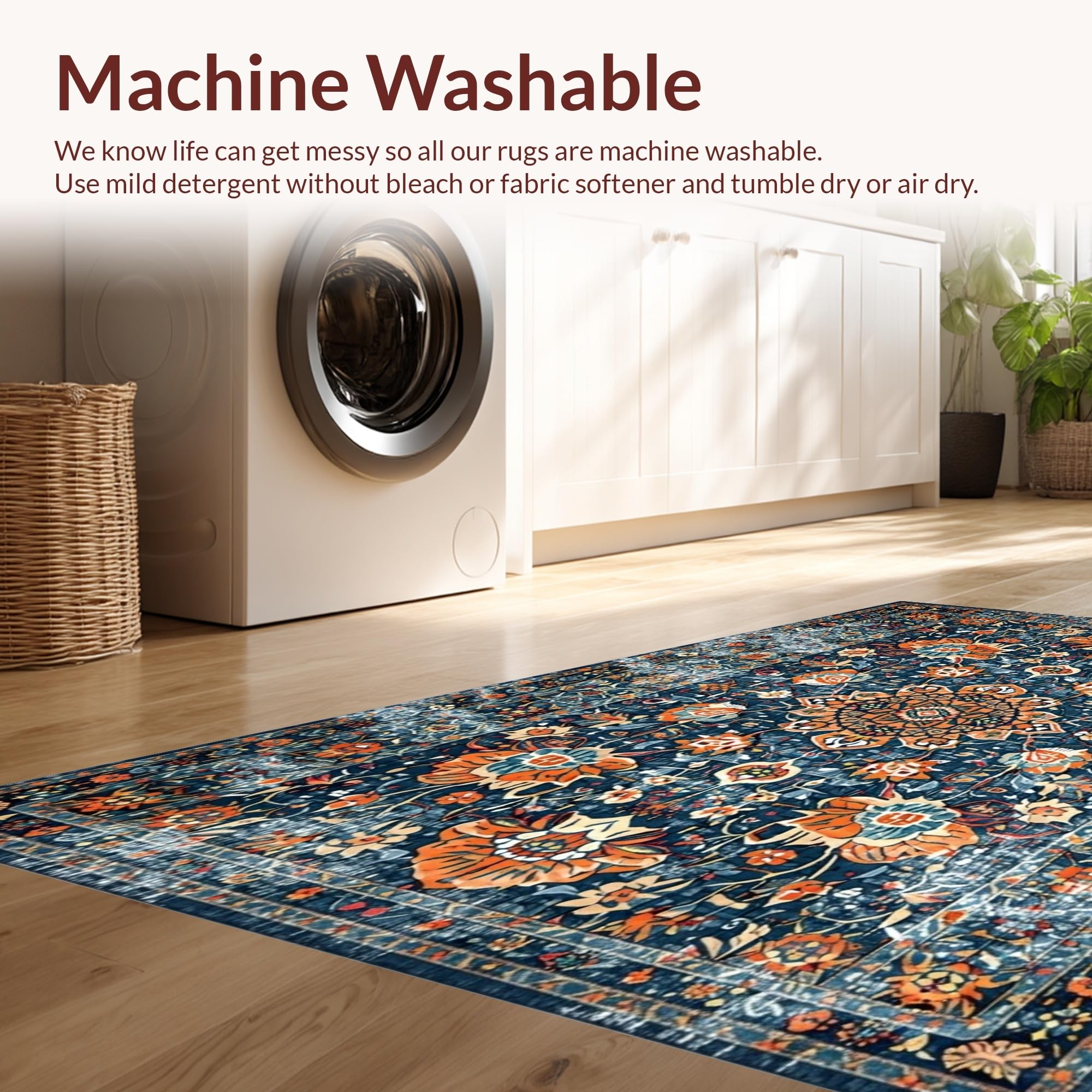 - Machine Washable: Our rugs can be easily thrown in the wash machine.