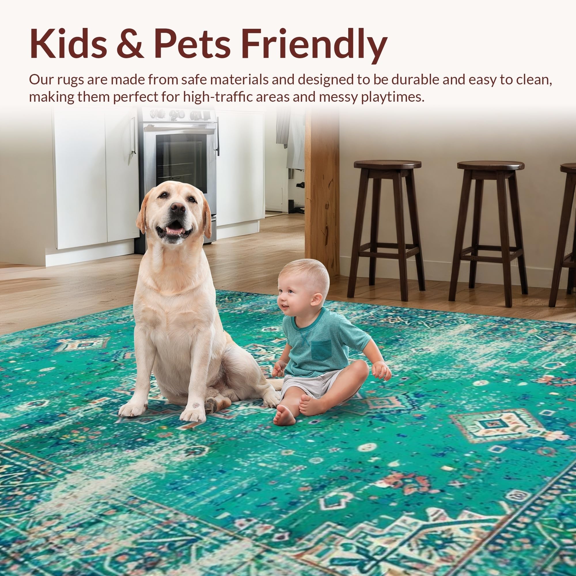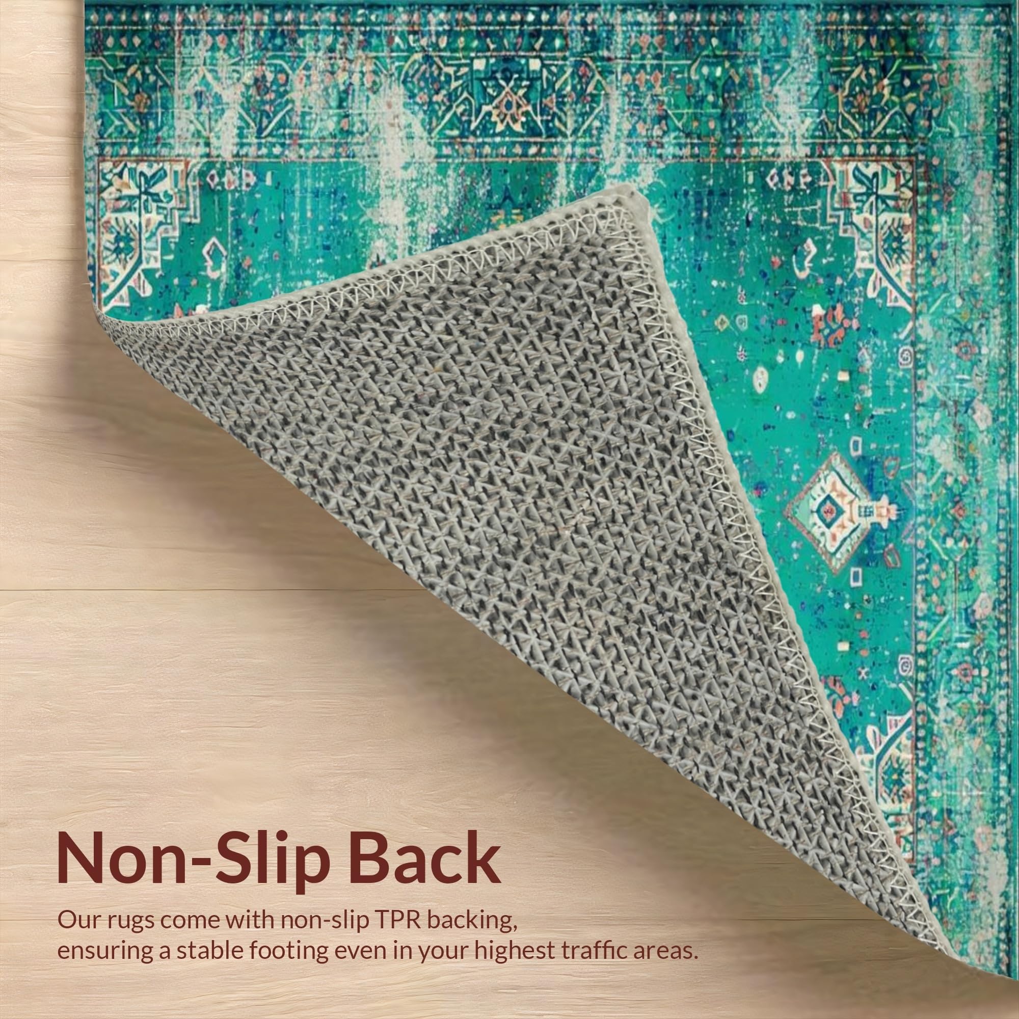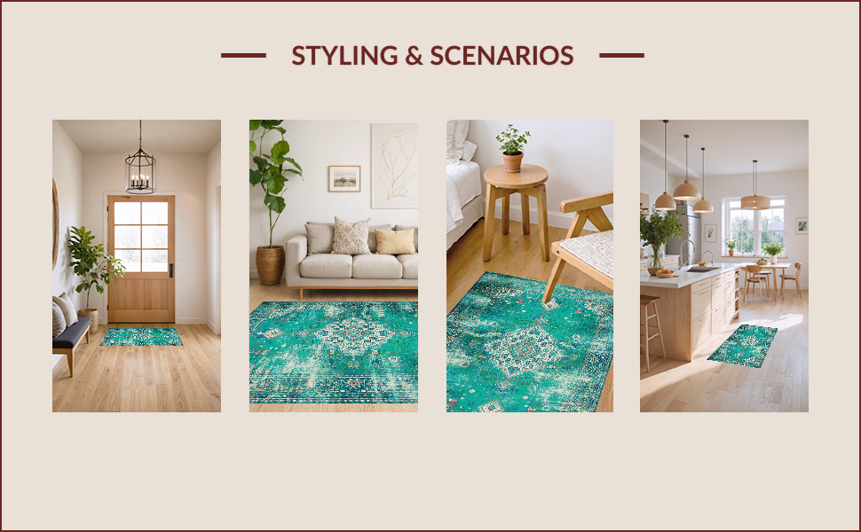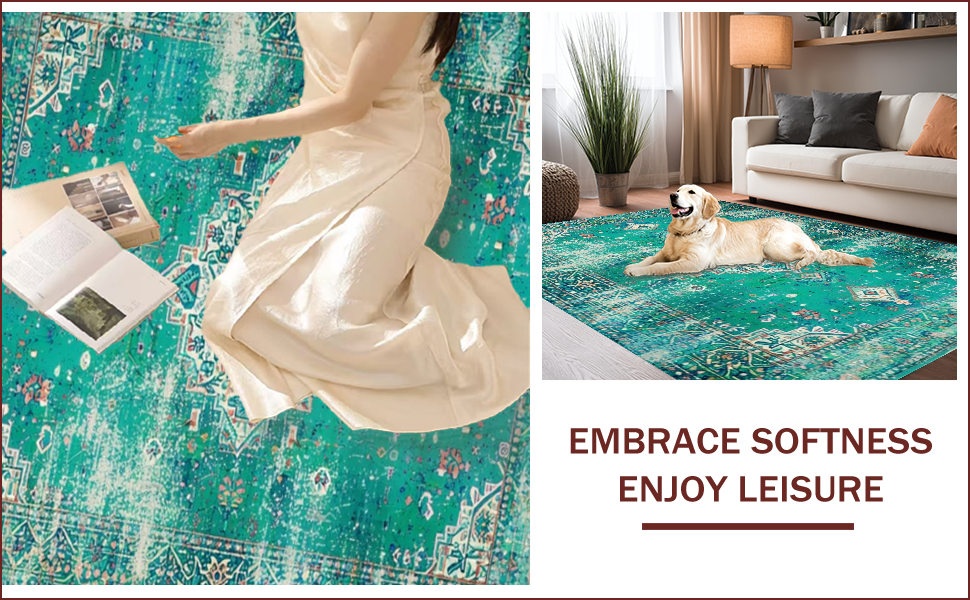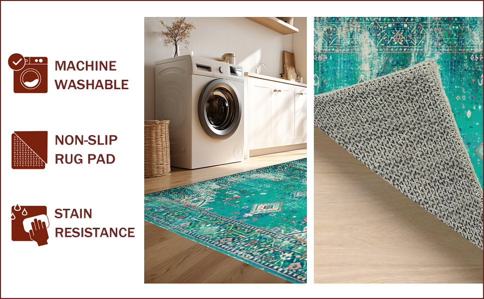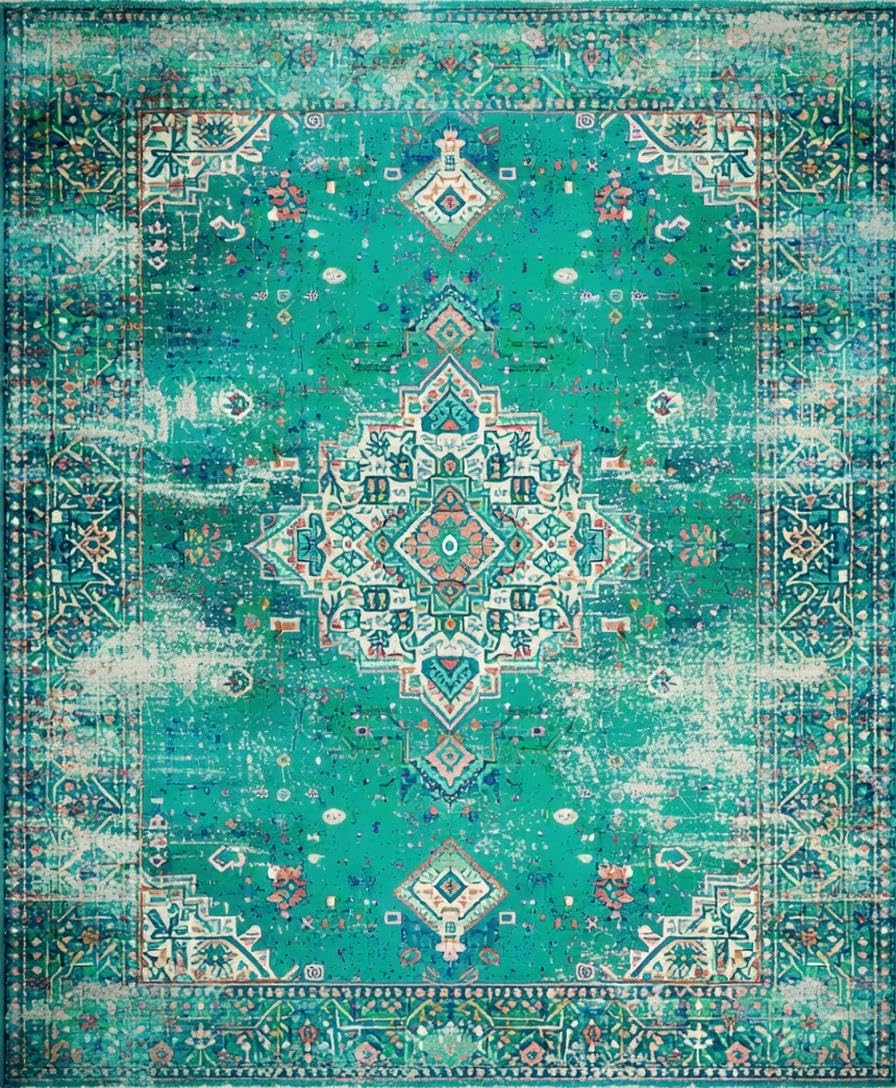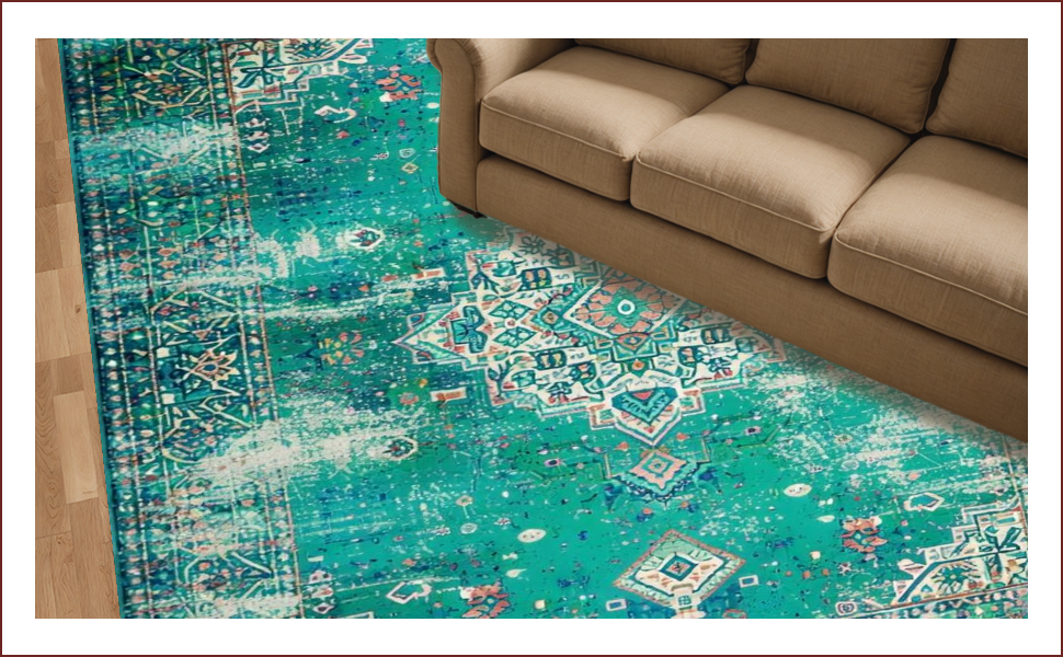 Ultra Soft Area Rug, Non Slip, Stain Resistant, Washable Area Rugs for Living Room, Bedroom, Elegant Distressed Geometric Touch(Green) Overview:
