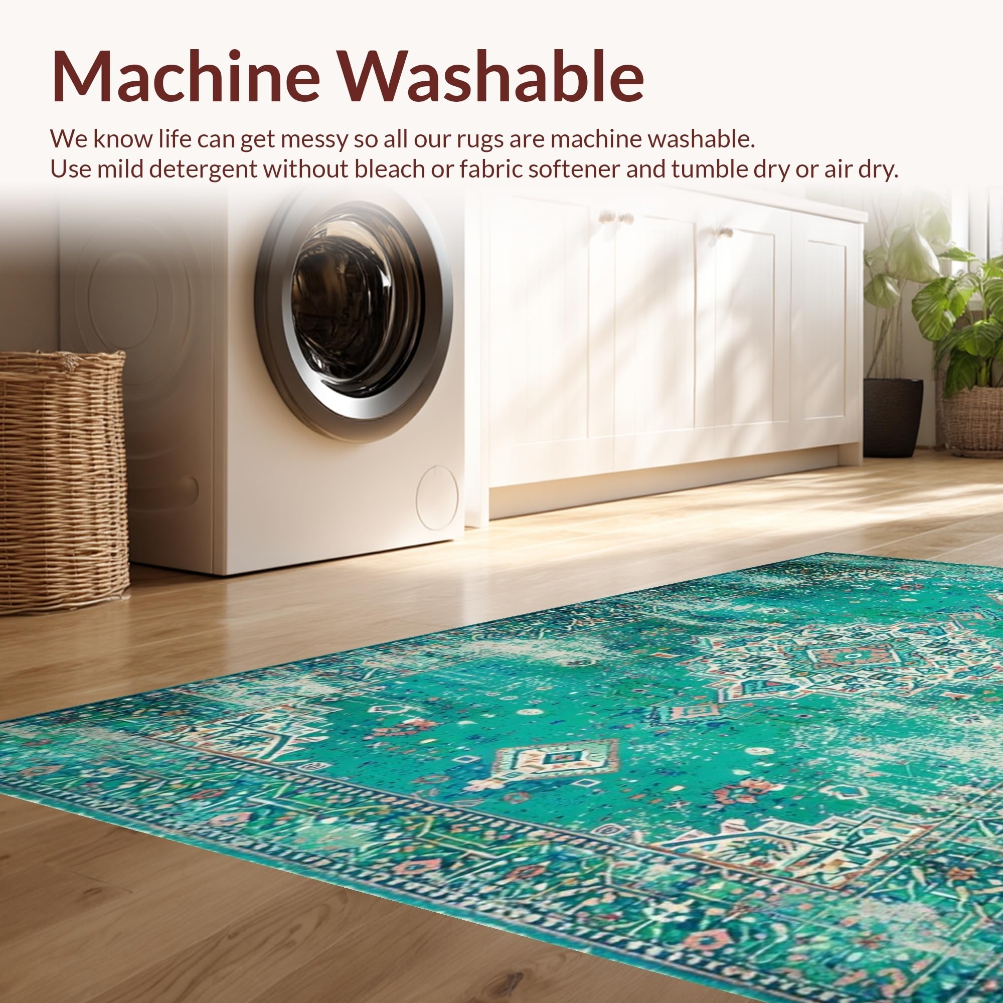 - Machine Washable: Our rugs can be easily thrown in the wash machine.