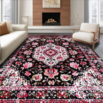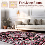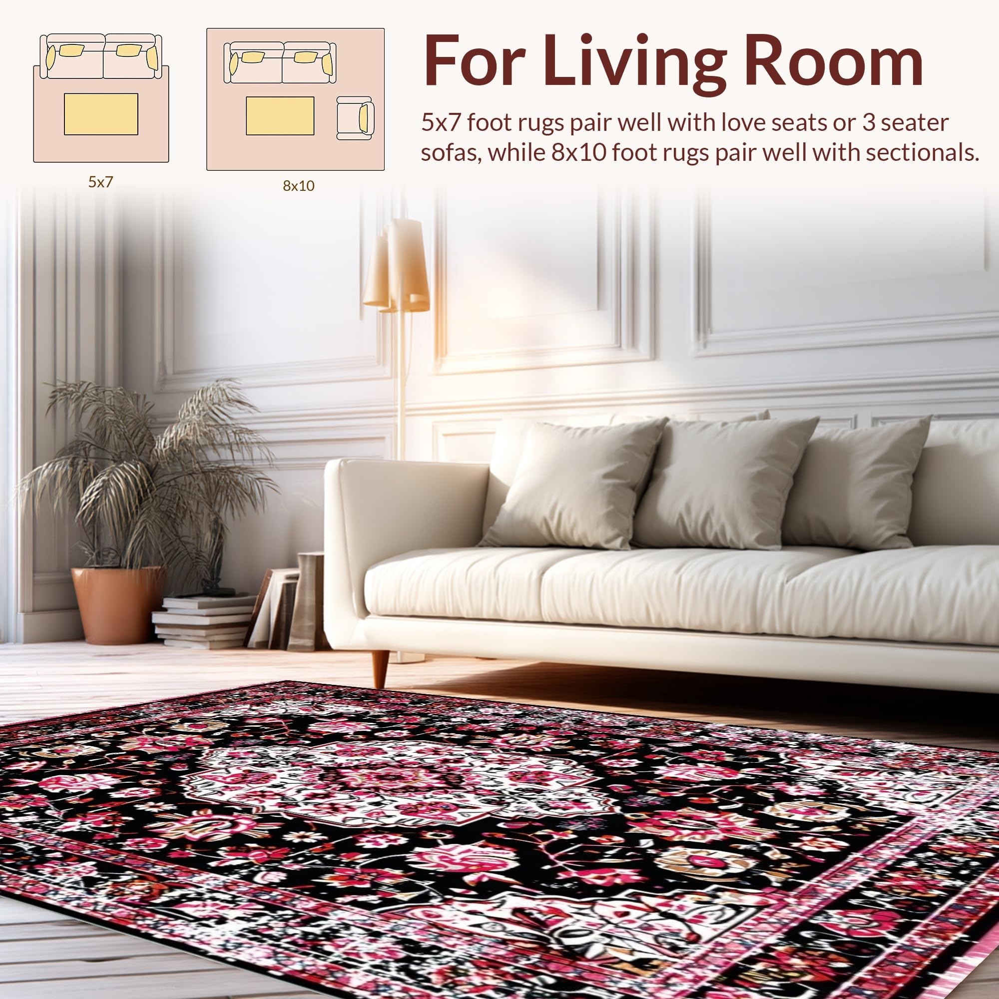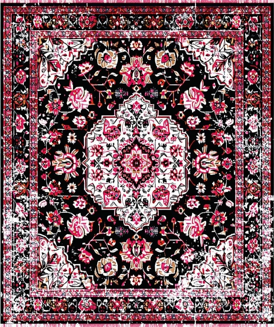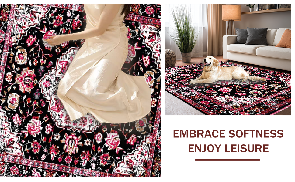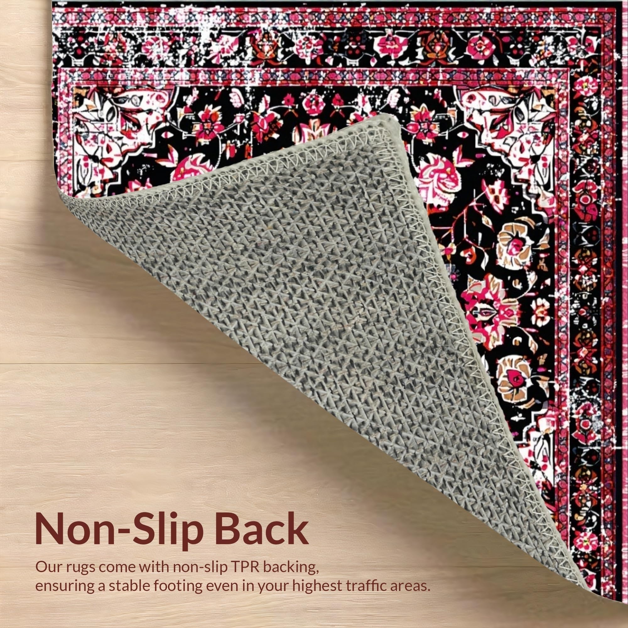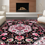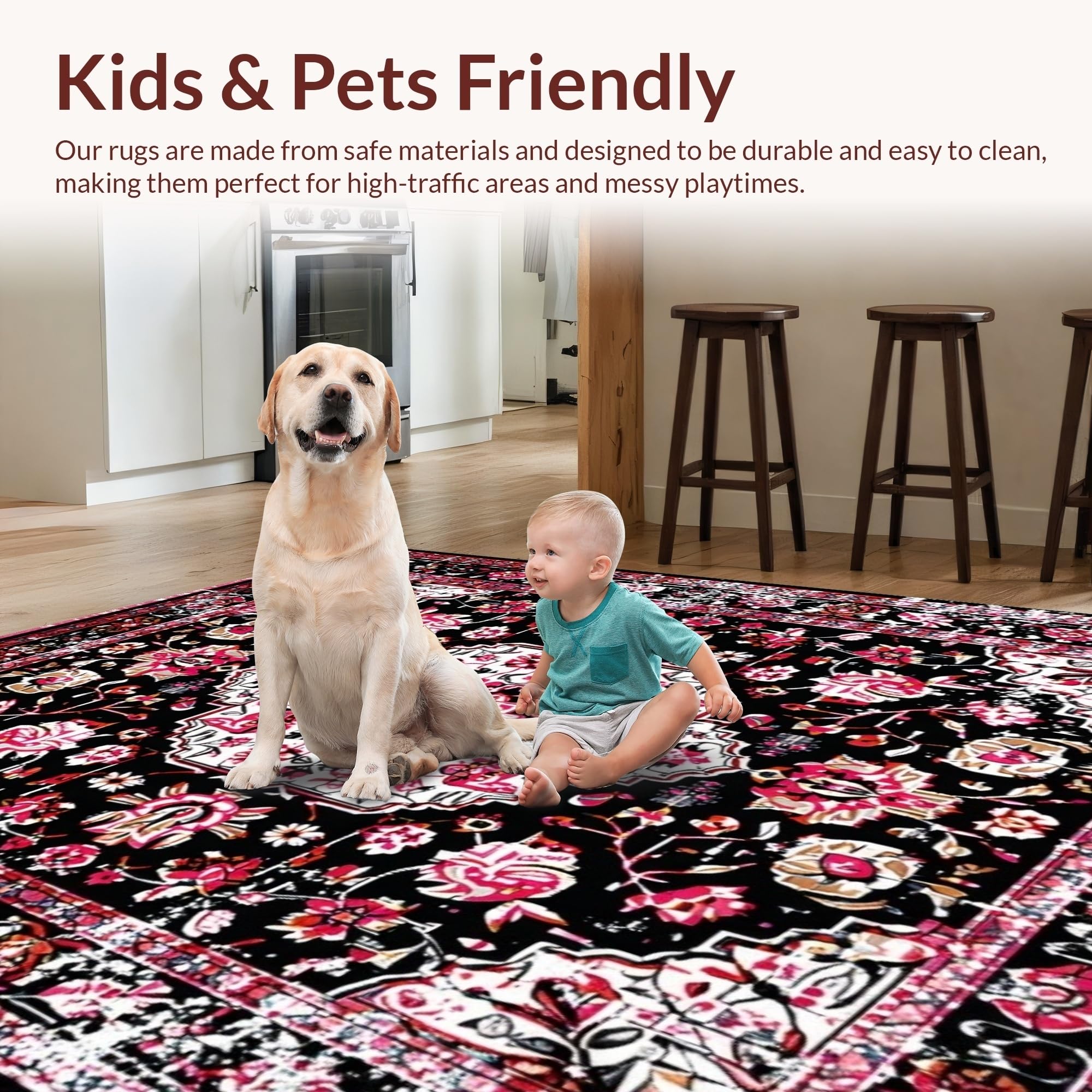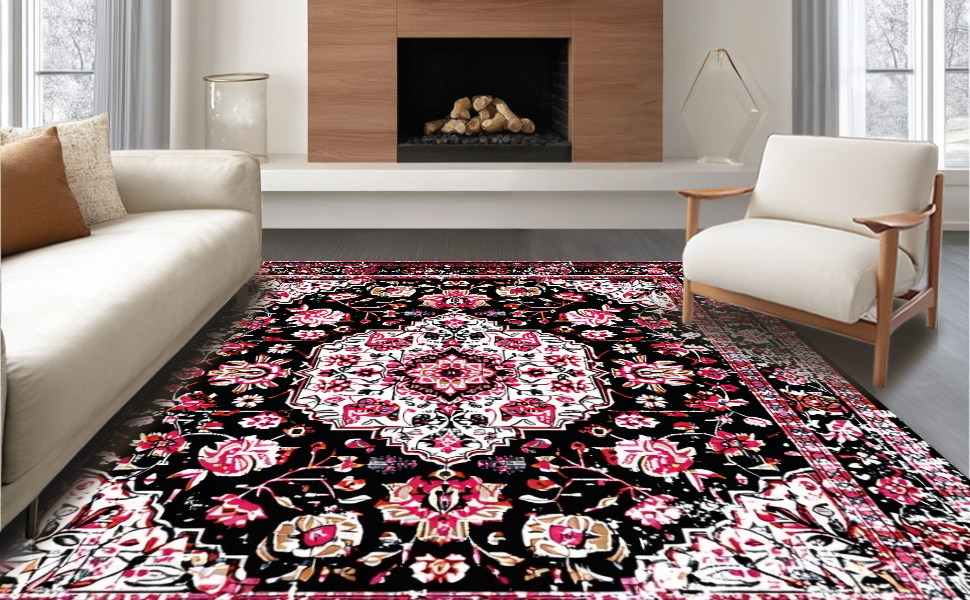 Ultra Soft Area Rug, Non Slip, Stain Resistant, Washable Area Rugs for Living Room, Bedroom, Elegant Distressed Patterned Motif(Black) Overview: