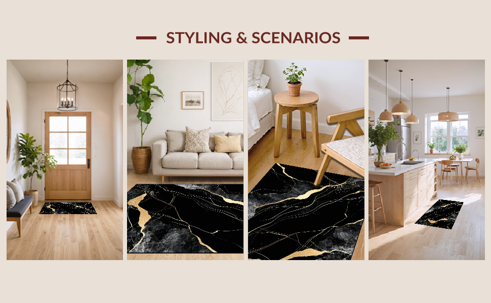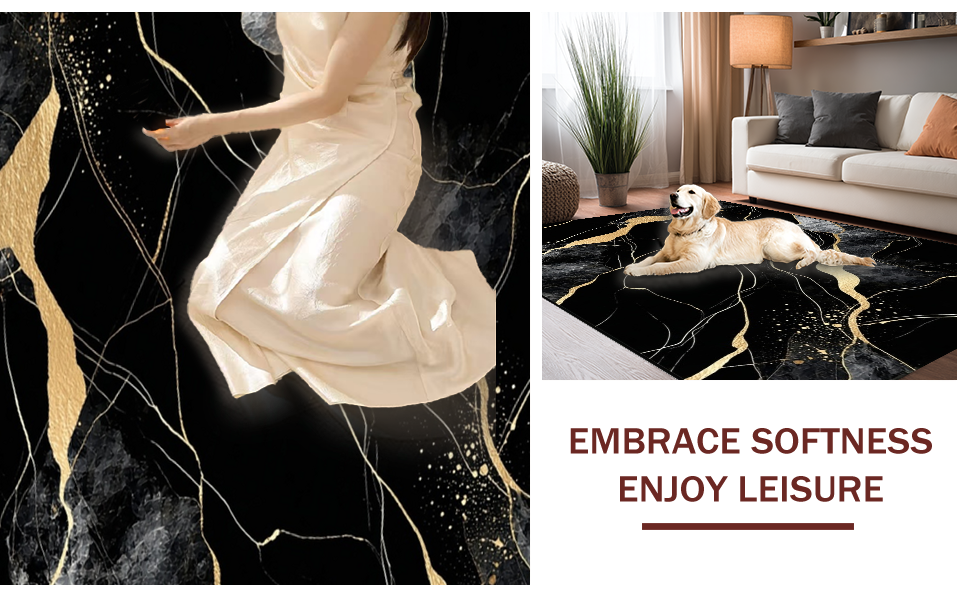 Ultra Soft Area Rug, Non Slip, Stain Resistant, Washable Area Rugs for Living Room, Bedroom, Elegant Dynamic Style Arrangement(Black) Overview: