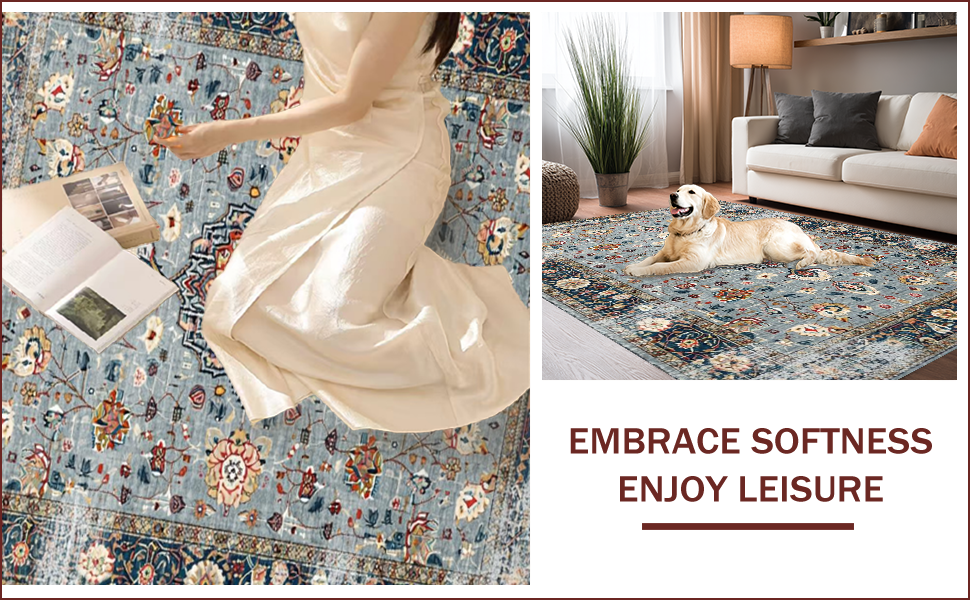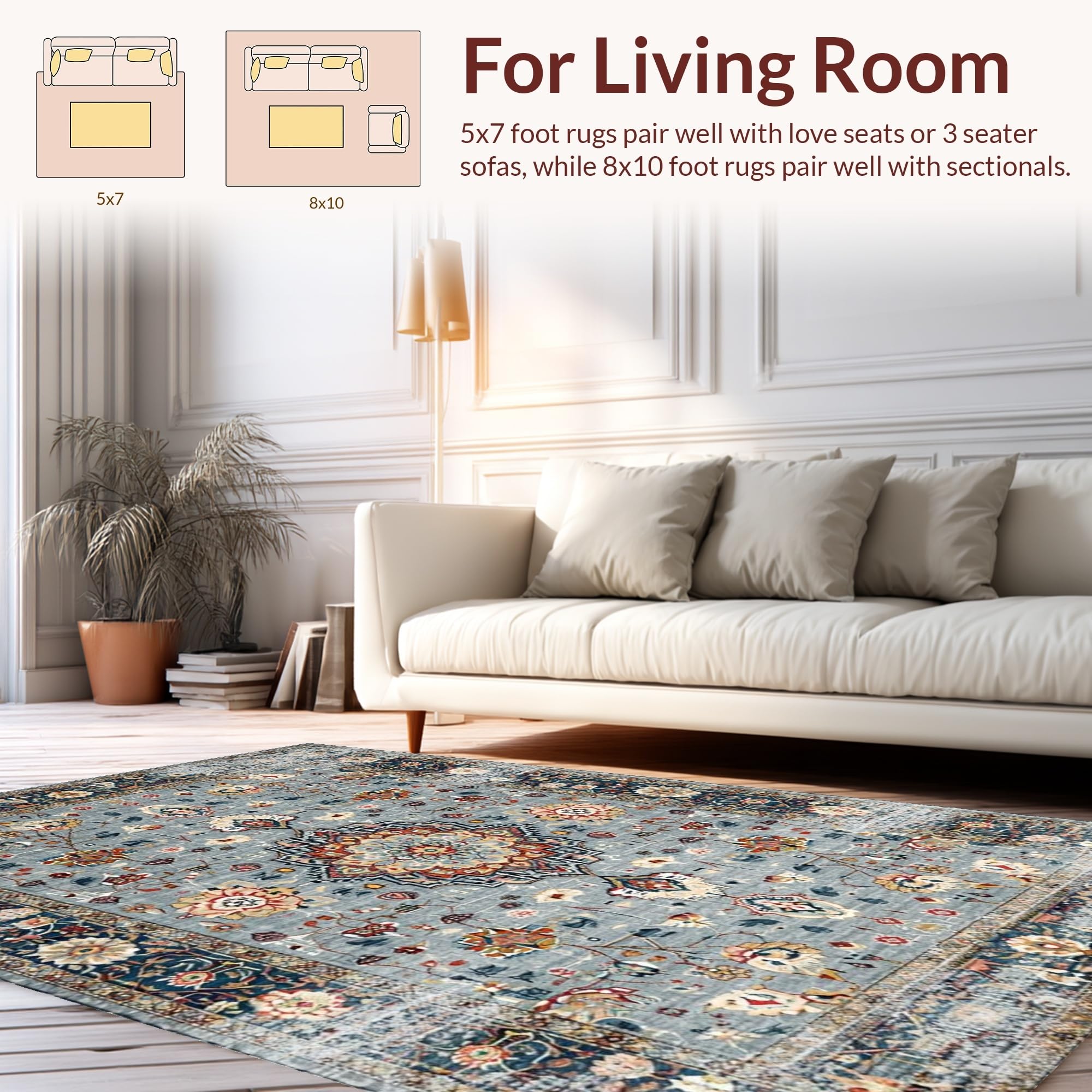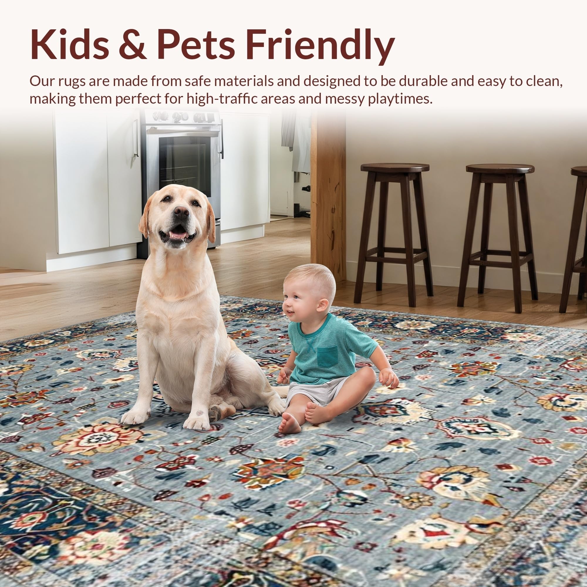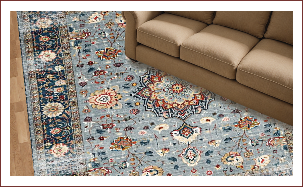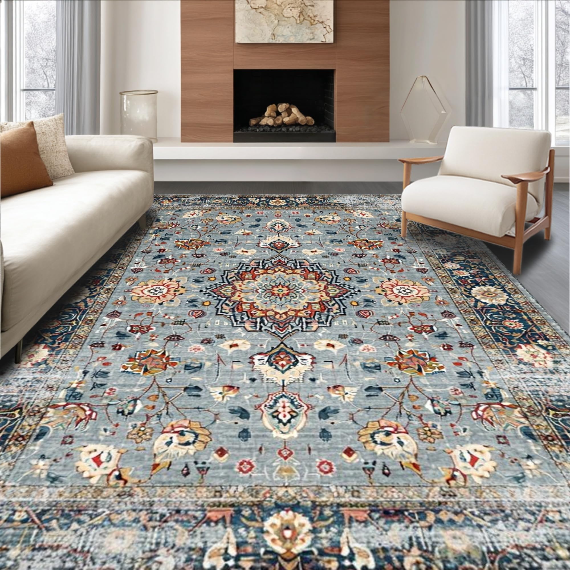 Ultra Soft Area Rug, Non Slip, Stain Resistant, Washable Area Rugs for Living Room, Bedroom, Elegant Earth Tone Medallion(Gray) Overview: