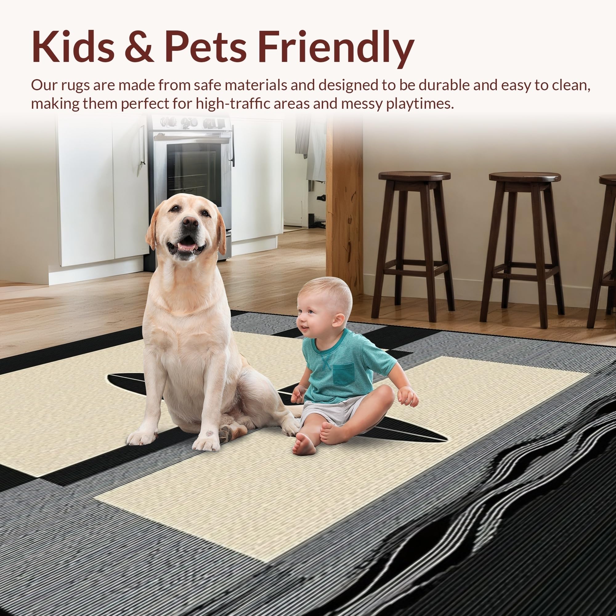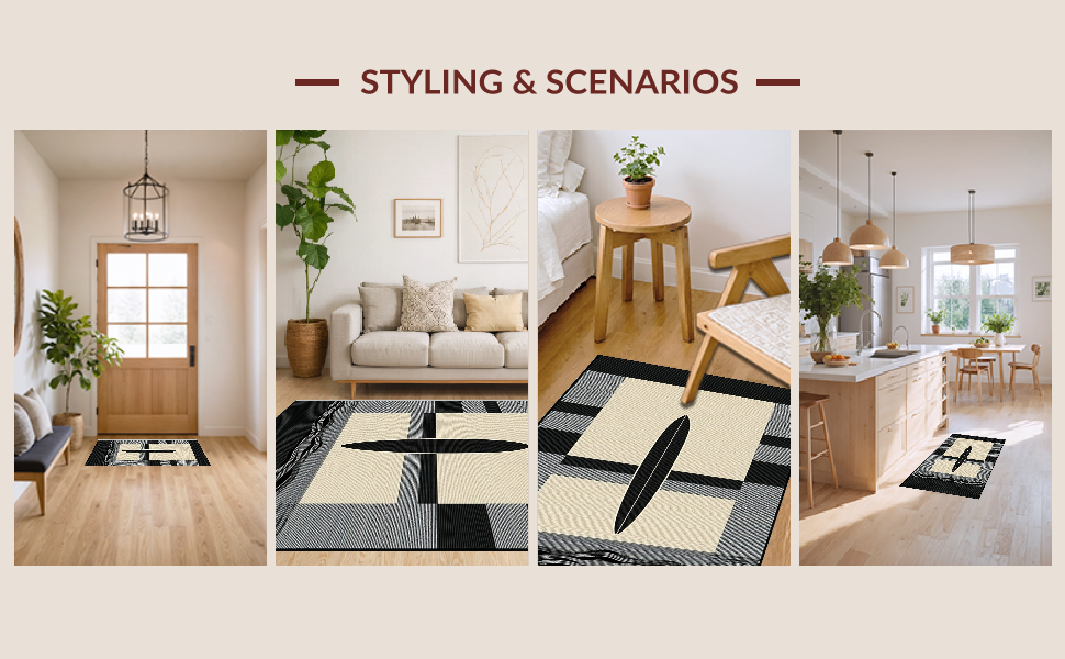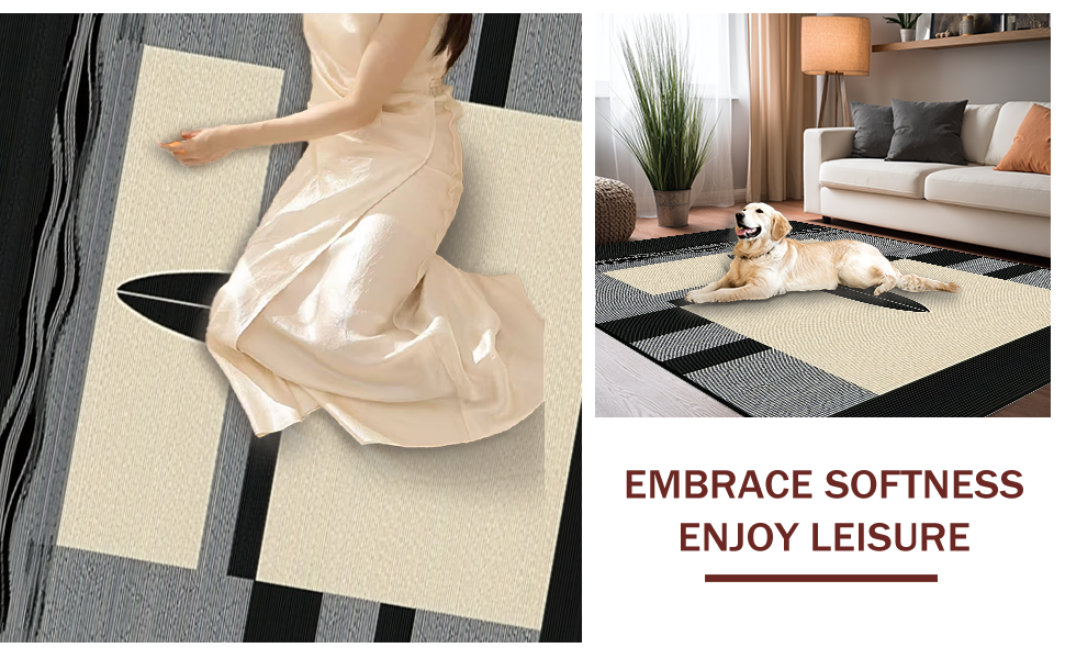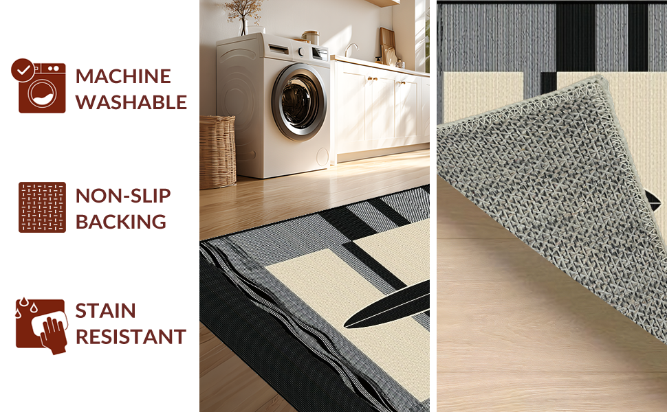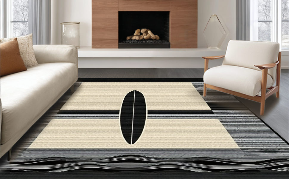 Ultra Soft Area Rug, Non Slip, Stain Resistant, Washable Area Rugs for Living Room, Bedroom, Elegant Earth Tone Surfboard Design(Beige) Overview: