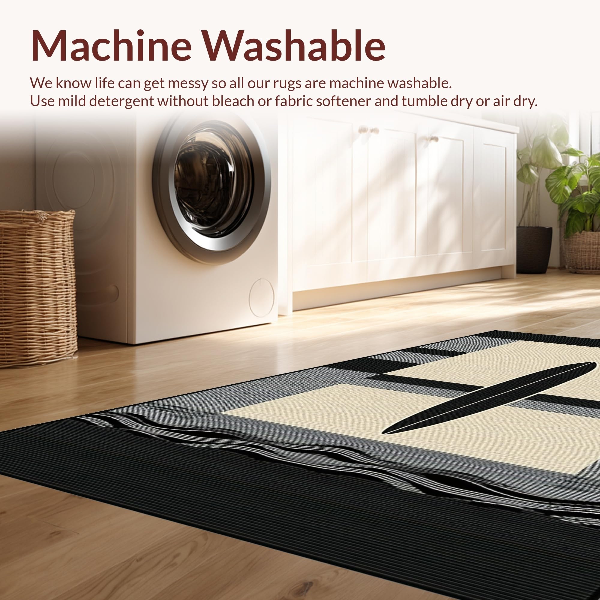 - Machine Washable: Our rugs can be easily thrown in the wash machine.