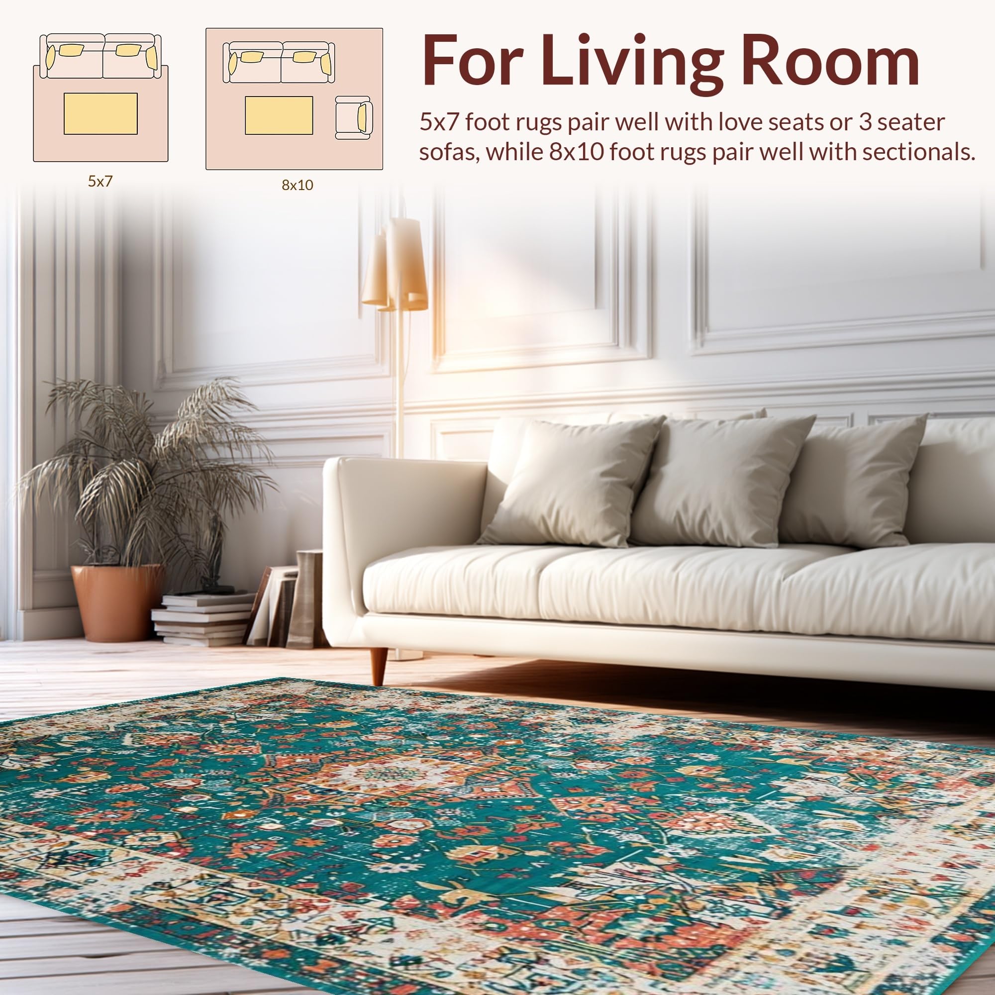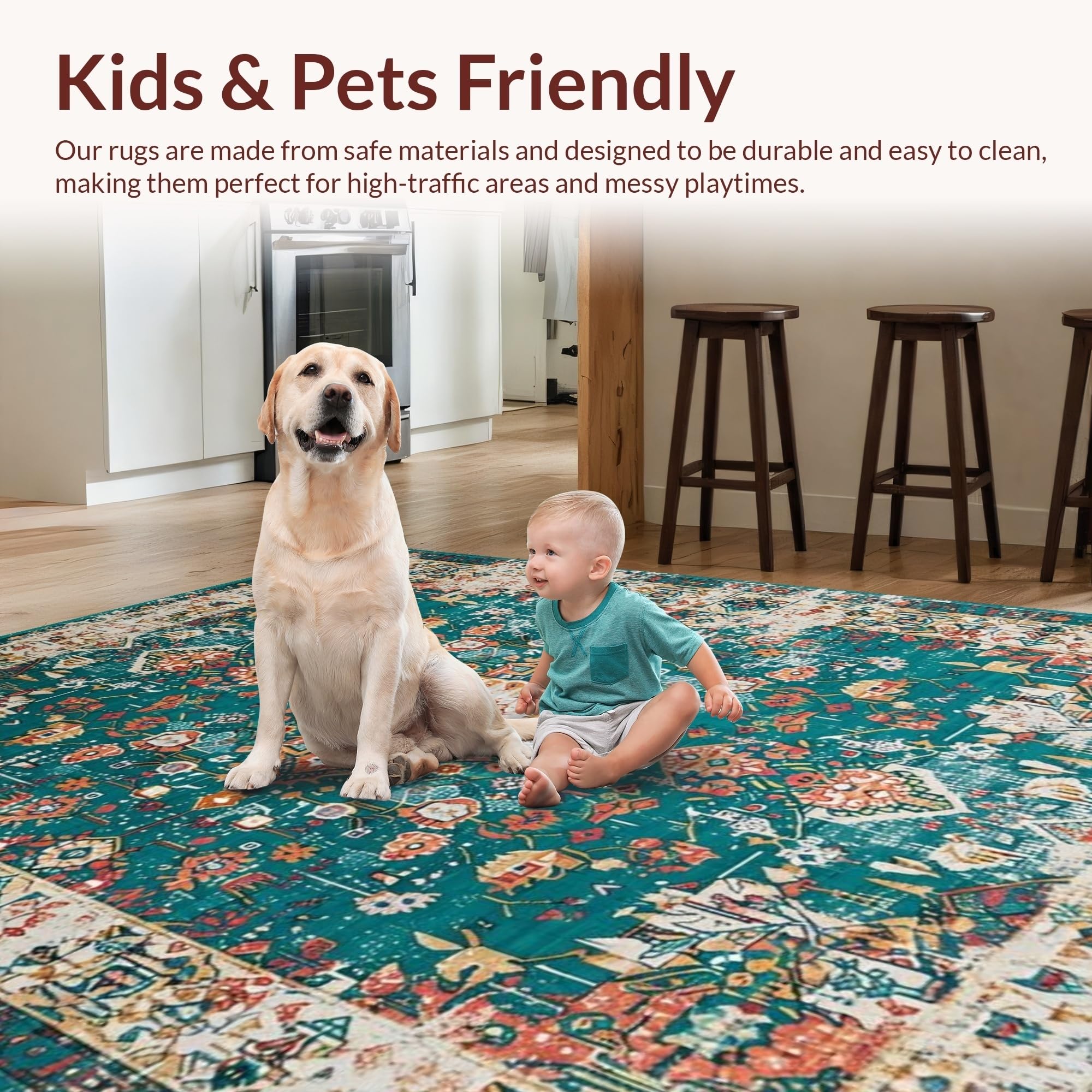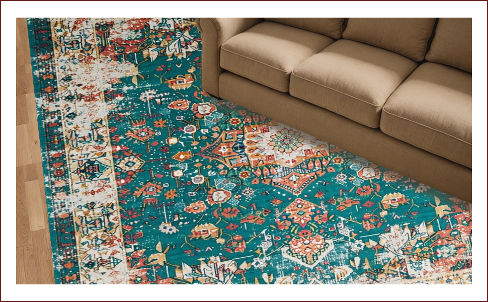 Ultra Soft Area Rug, Non Slip, Stain Resistant, Washable Area Rugs for Living Room, Bedroom, Elegant Earth Tone Symmetry(Green) Overview: