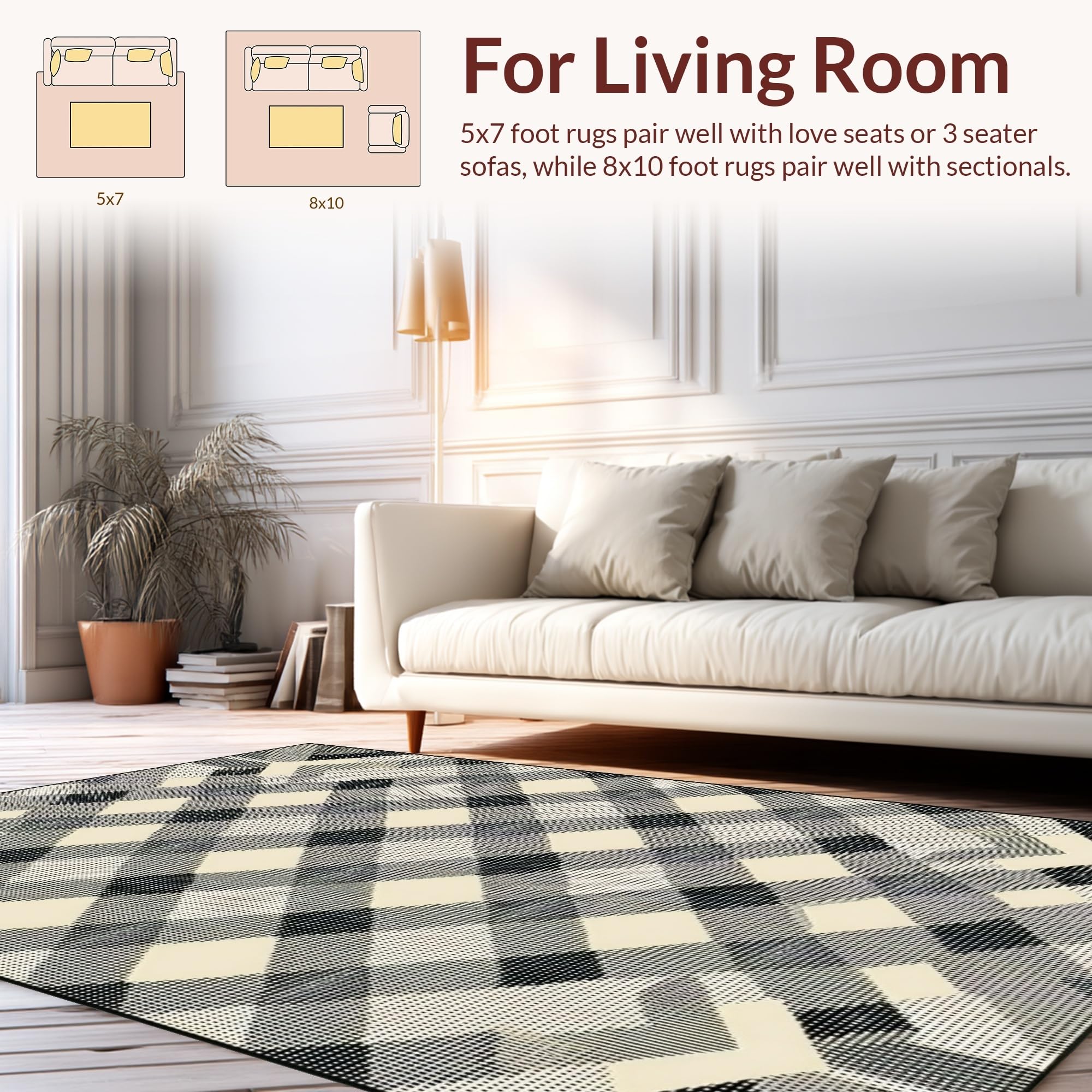 Ultra Soft Area Rug, Non Slip, Stain Resistant, Washable Area Rugs for Living Room, Bedroom, Elegant Earth Tone Trellis Design(Beige) Overview: