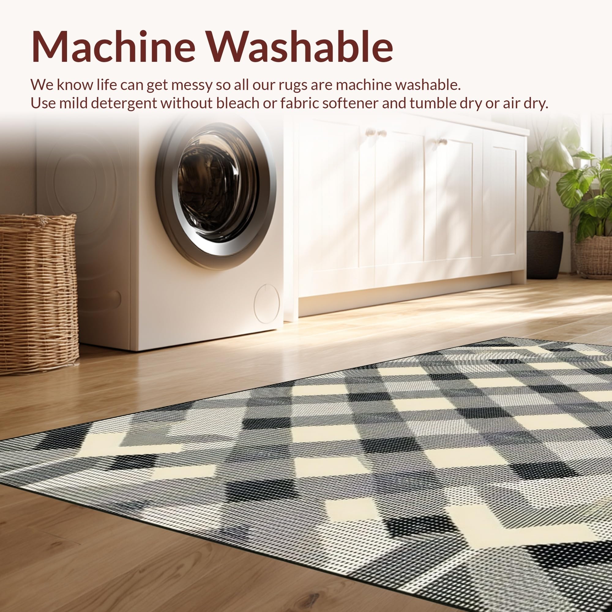 - Machine Washable: Our rugs can be easily thrown in the wash machine.