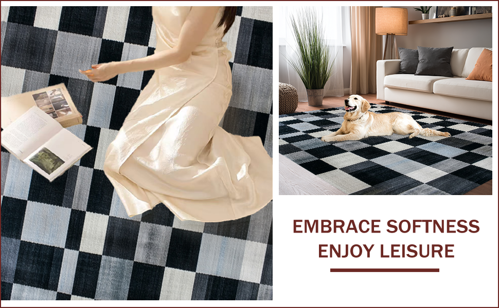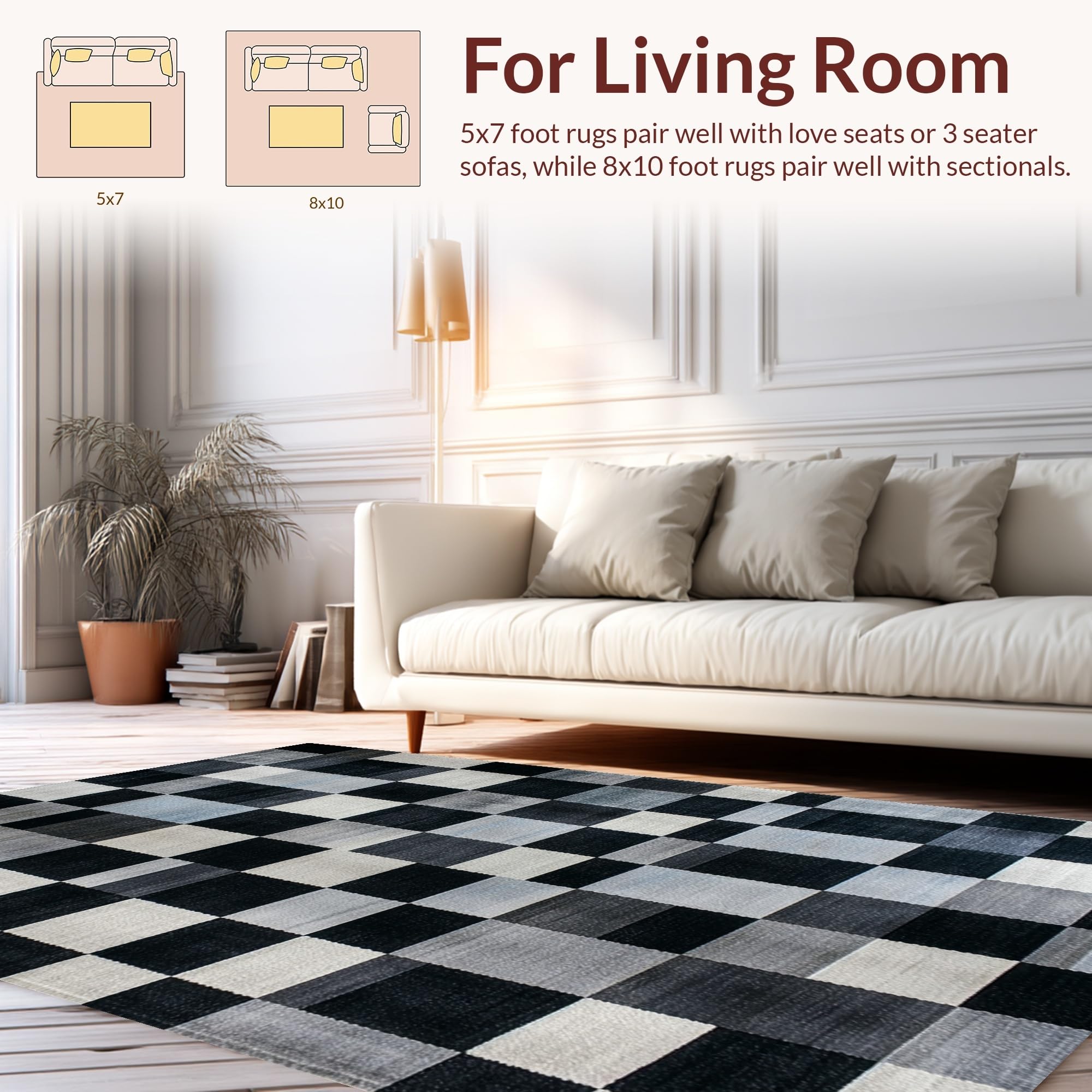 Ultra Soft Area Rug, Non Slip, Stain Resistant, Washable Area Rugs for Living Room, Bedroom, Elegant Earth Toned Trellis Design(Black) Overview: