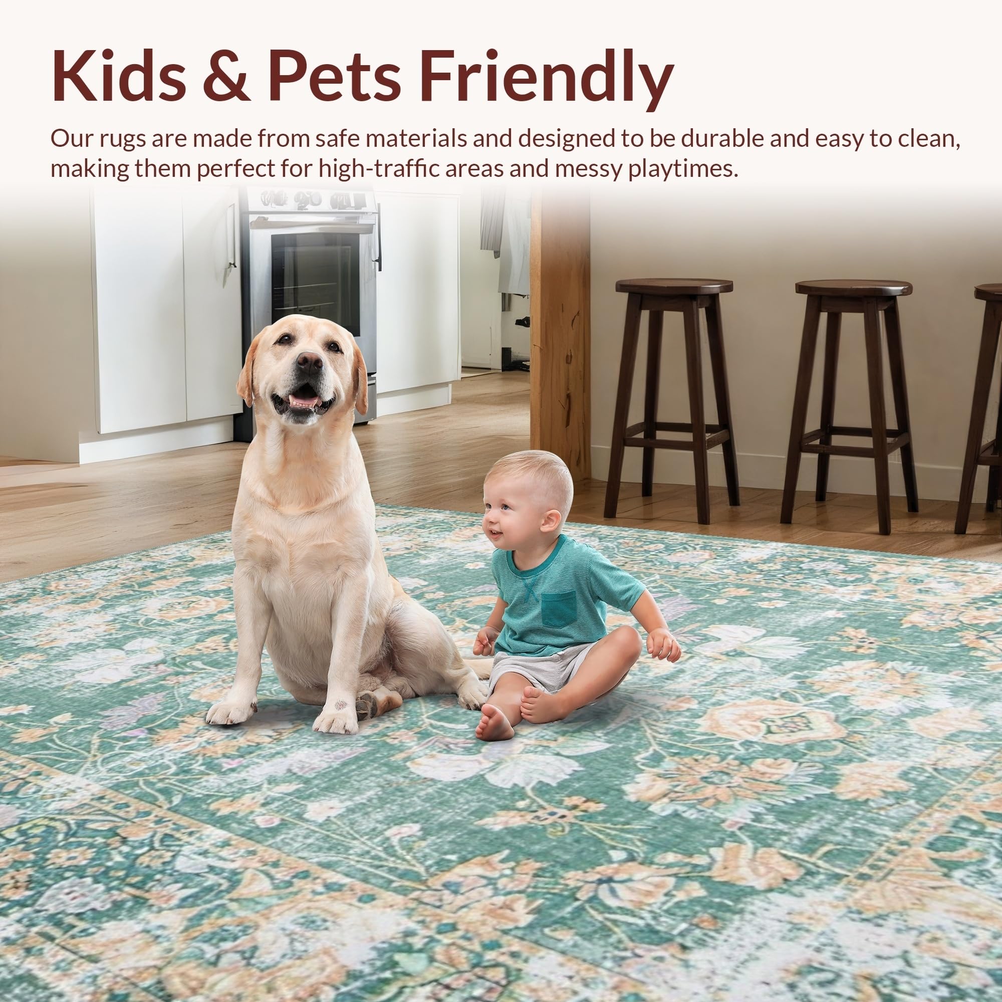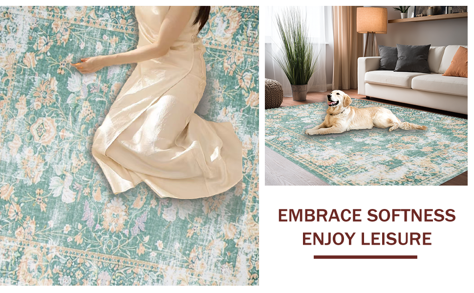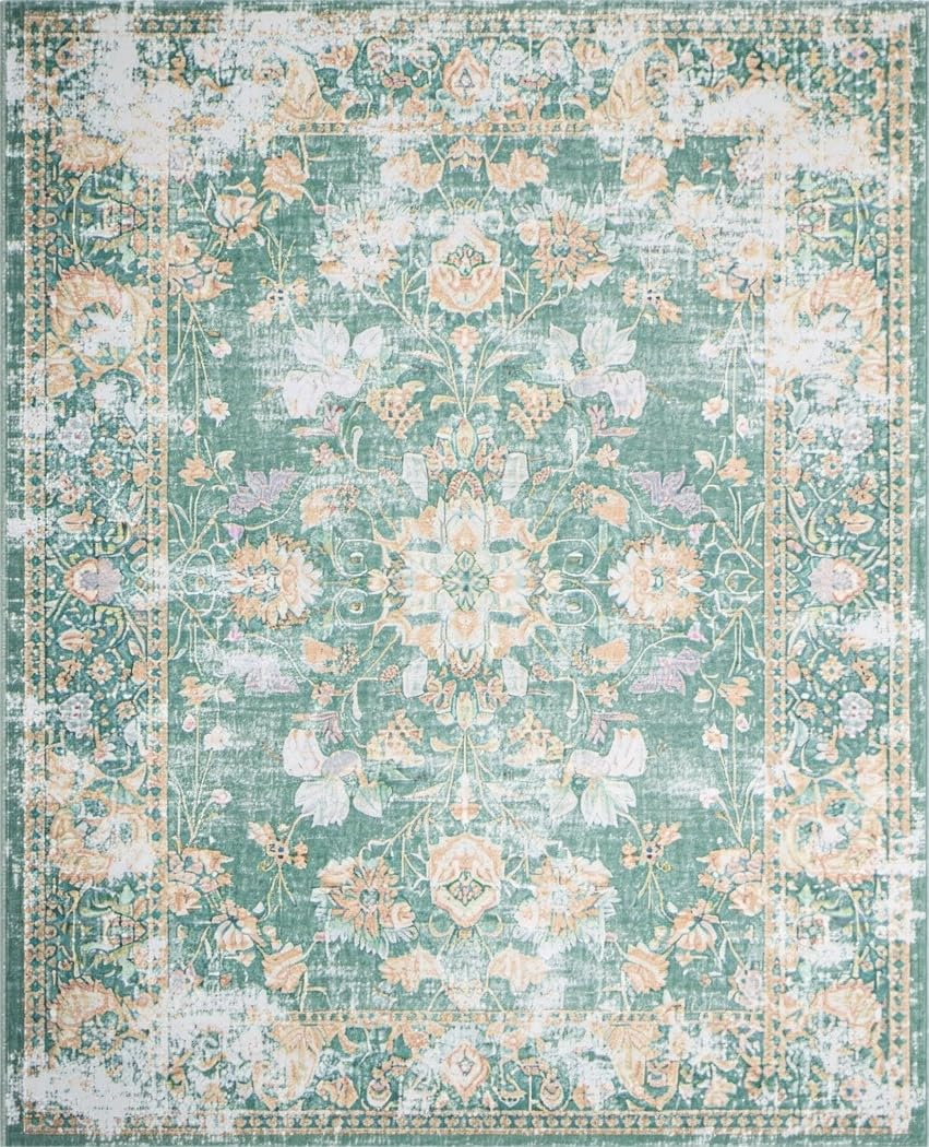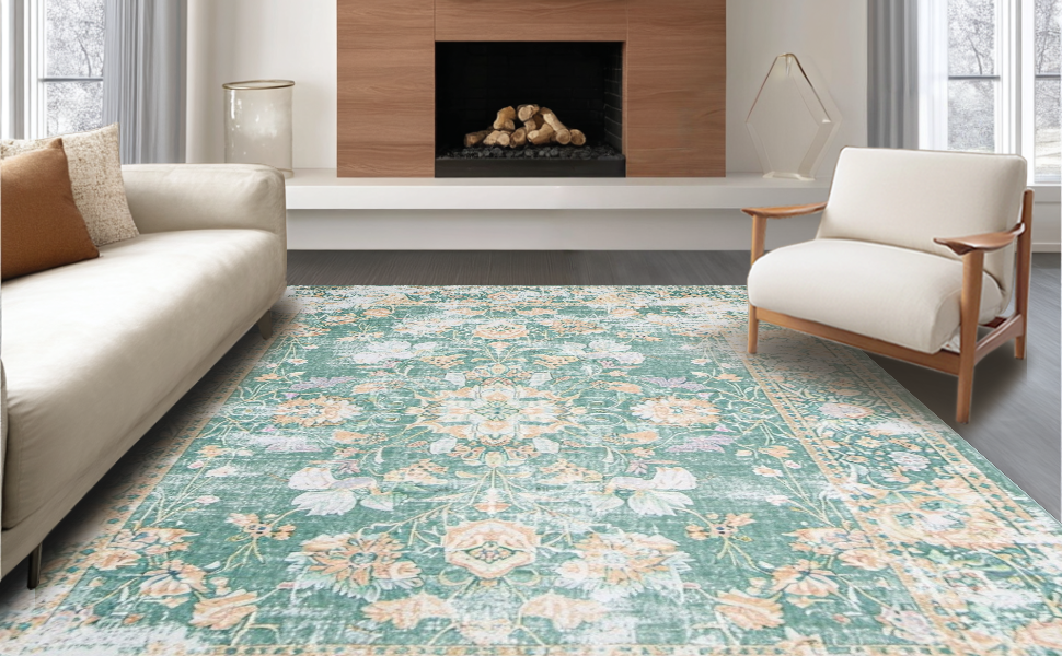 Ultra Soft Area Rug, Non Slip, Stain Resistant, Washable Area Rugs for Living Room, Bedroom, Elegant Earth Tones Medallion Style(Green) Overview: