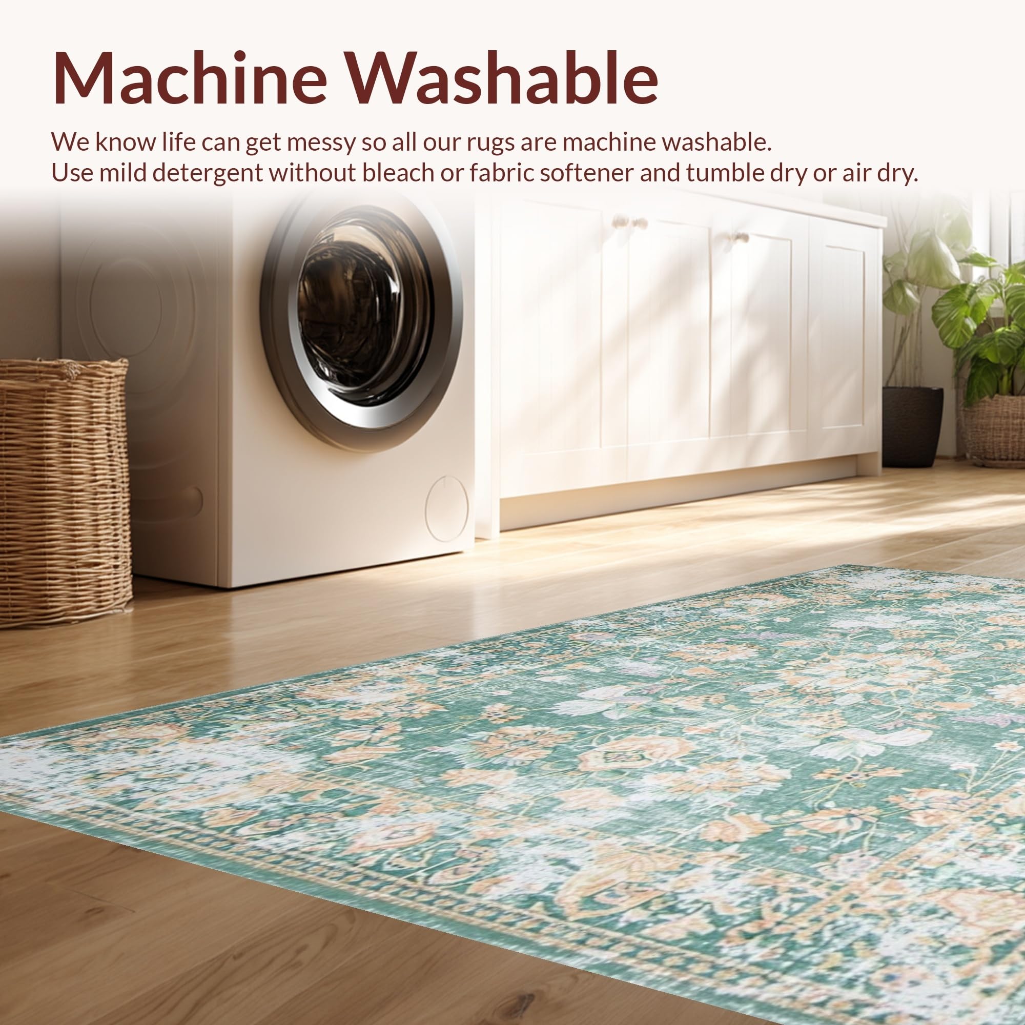 - Machine Washable: Our rugs can be easily thrown in the wash machine.
