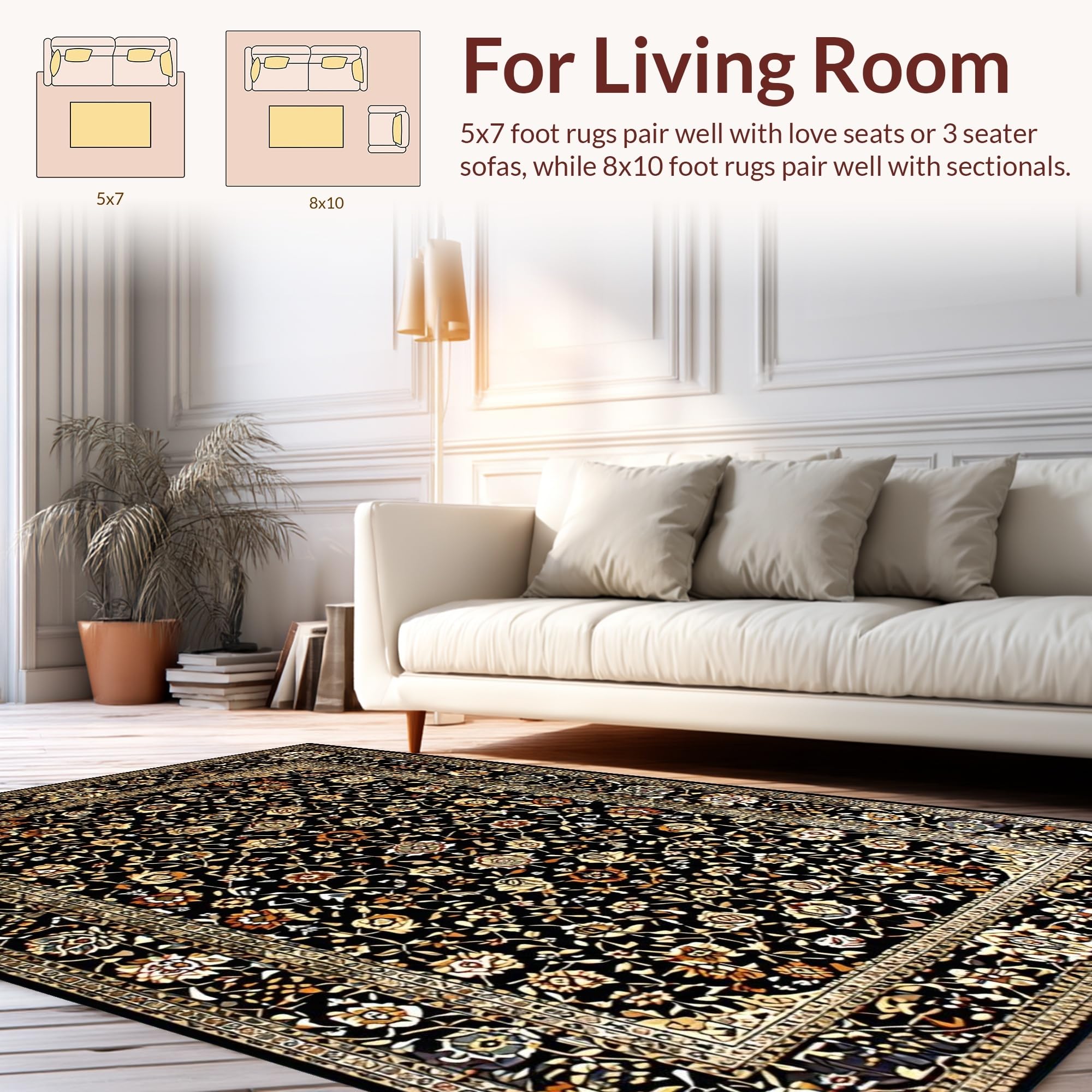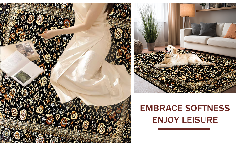 Ultra Soft Area Rug, Non Slip, Stain Resistant, Washable Area Rugs for Living Room, Bedroom, Elegant Earthy Braided Aesthetic(Black) Overview:
