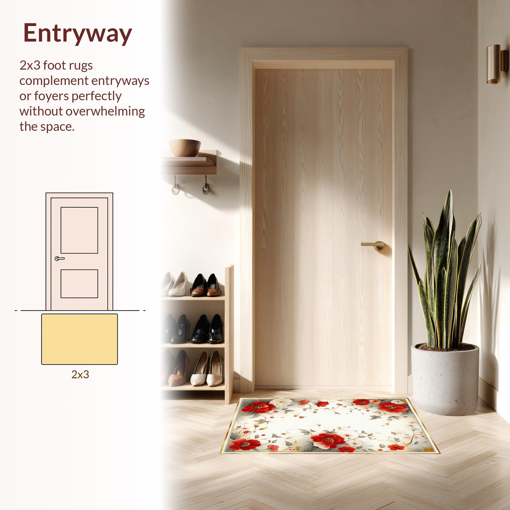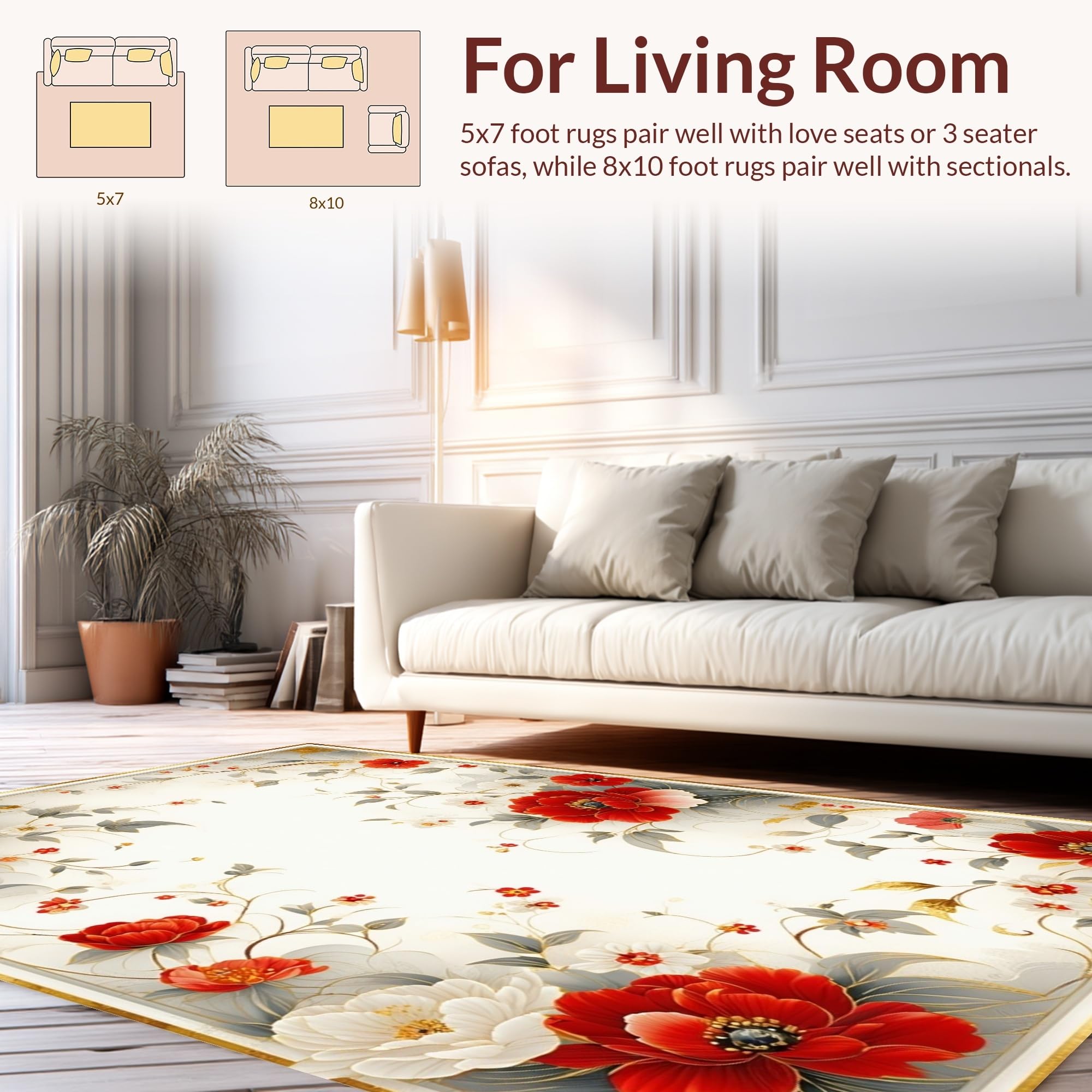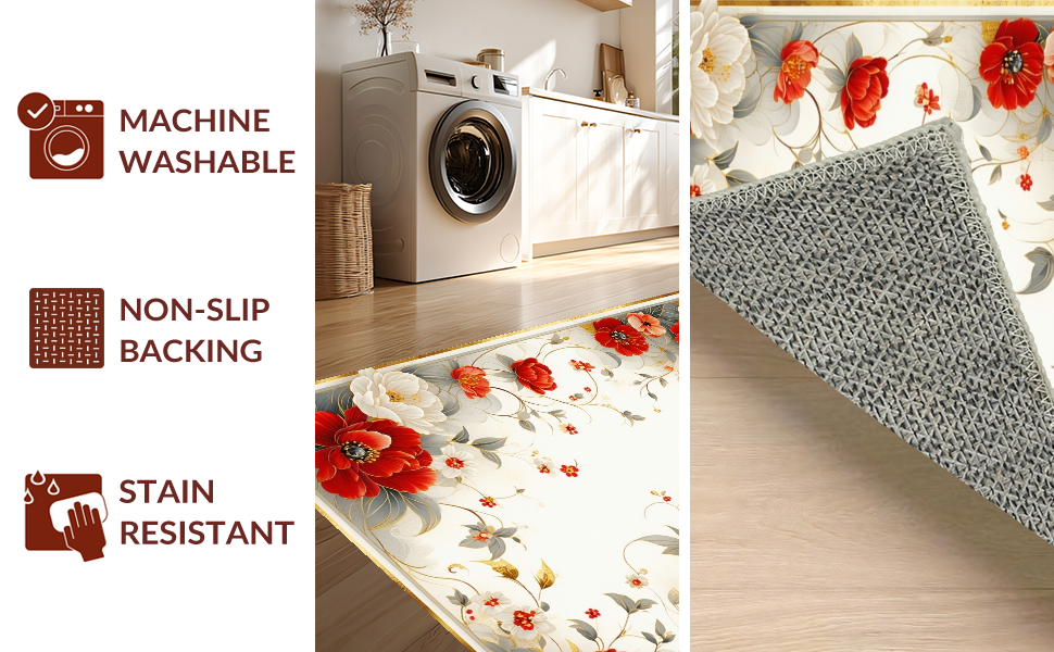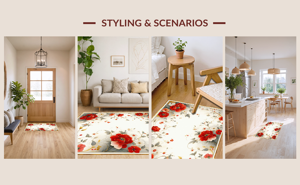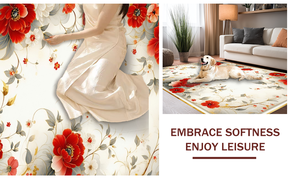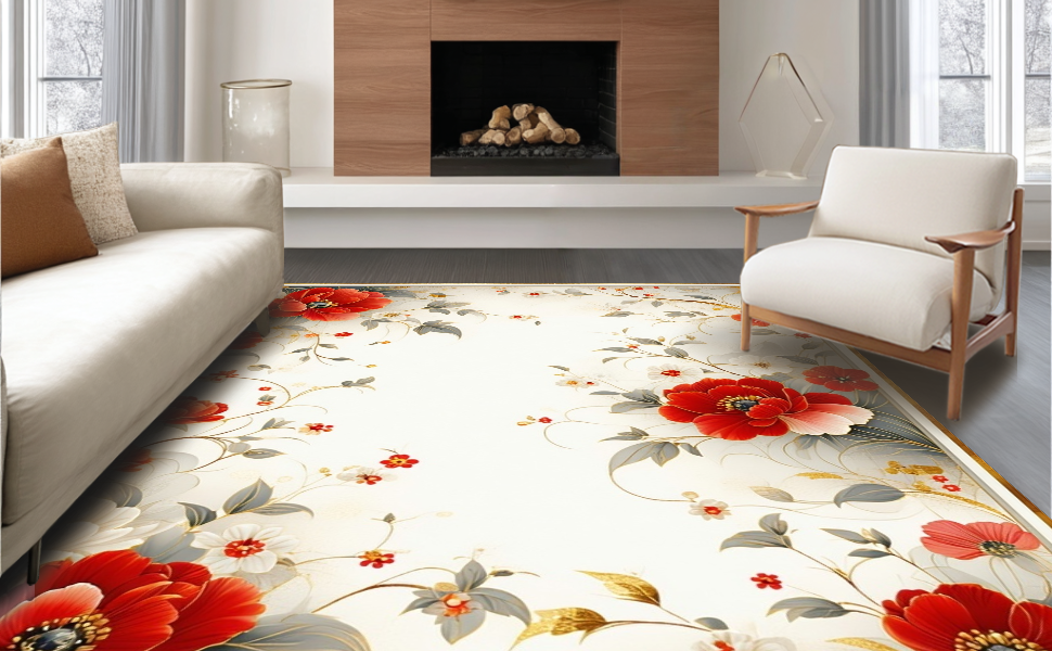 Ultra Soft Area Rug, Non Slip, Stain Resistant, Washable Area Rugs for Living Room, Bedroom, Elegant Earthy Floral Fusion(Red) Overview: