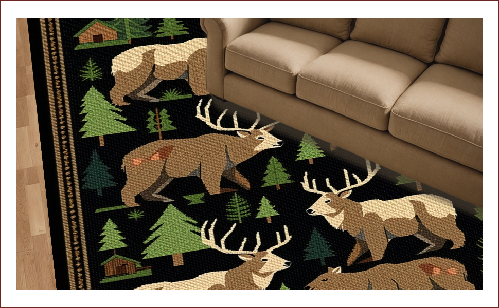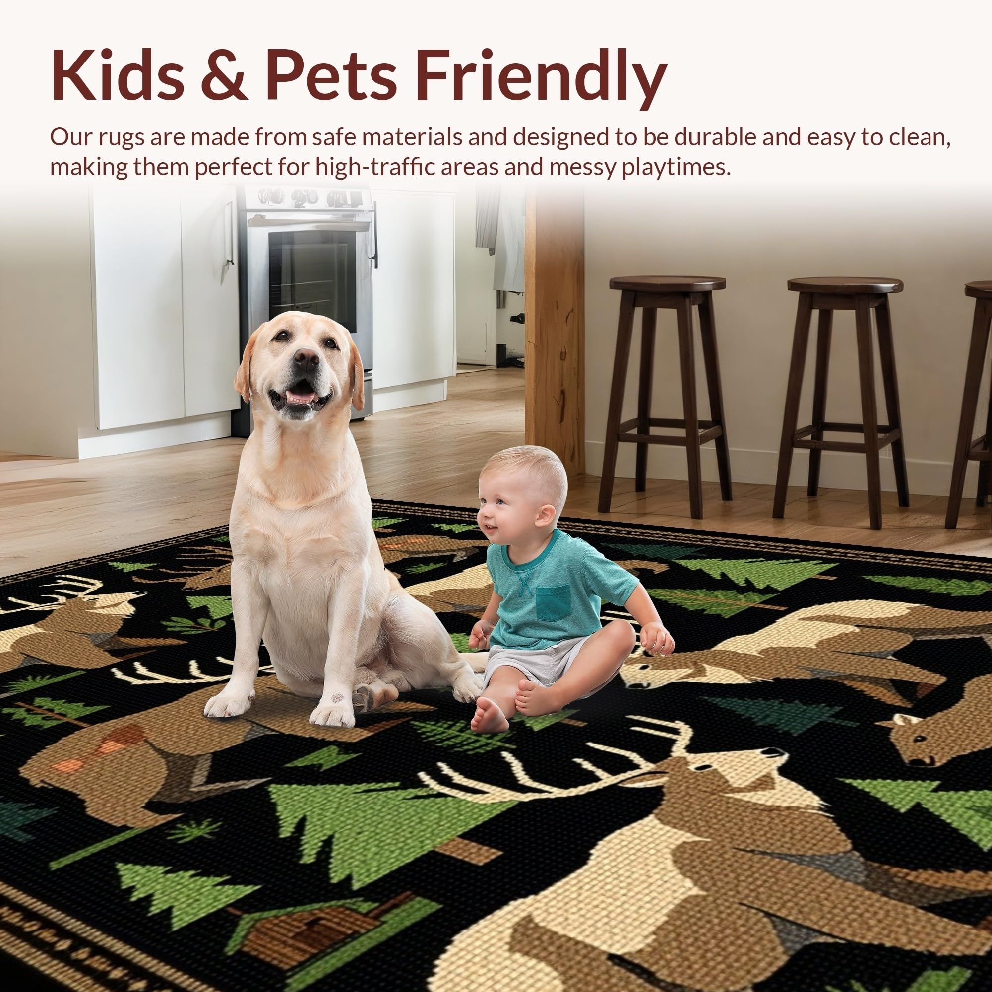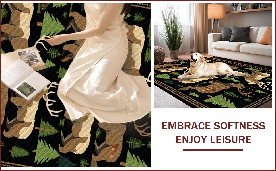 Ultra Soft Area Rug, Non Slip, Stain Resistant, Washable Area Rugs for Living Room, Bedroom, Elegant Earthy Leaf Motif(Black) Overview: