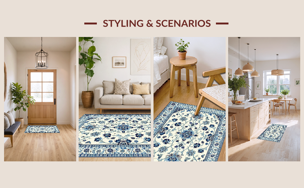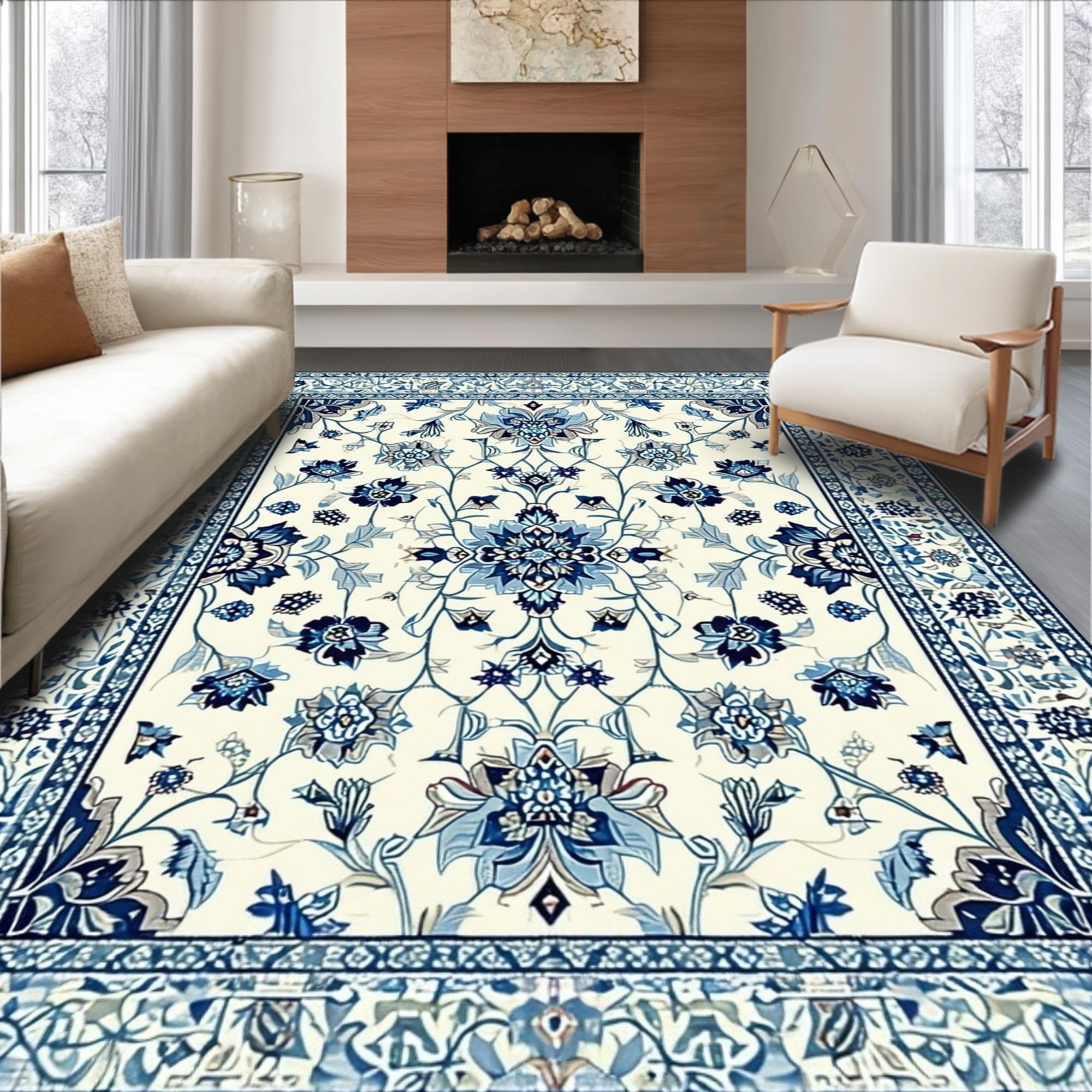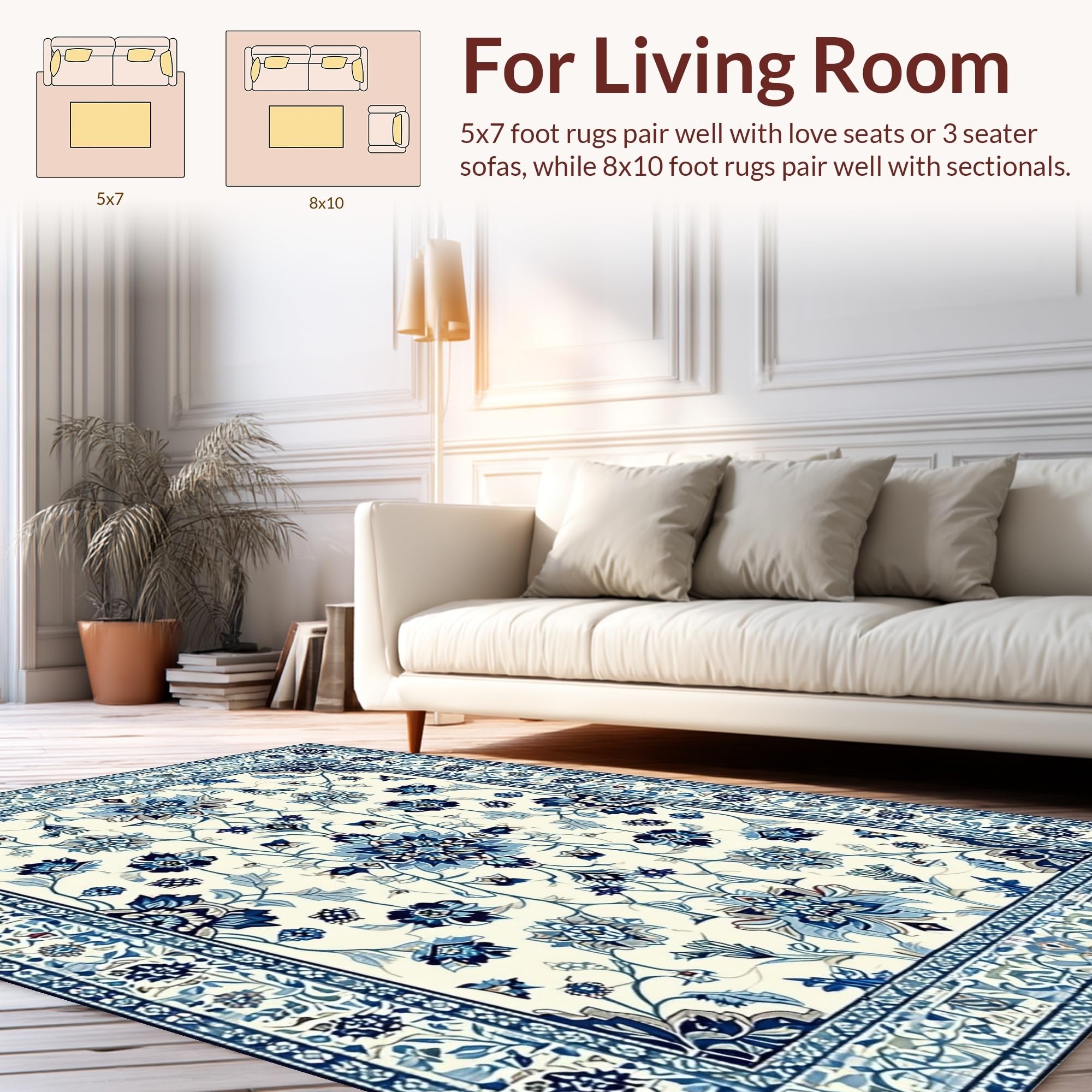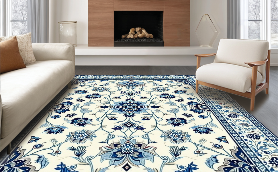 Ultra Soft Area Rug, Non Slip, Stain Resistant, Washable Area Rugs for Living Room, Bedroom, Elegant Earthy Ogee Pattern(Beige) Overview: