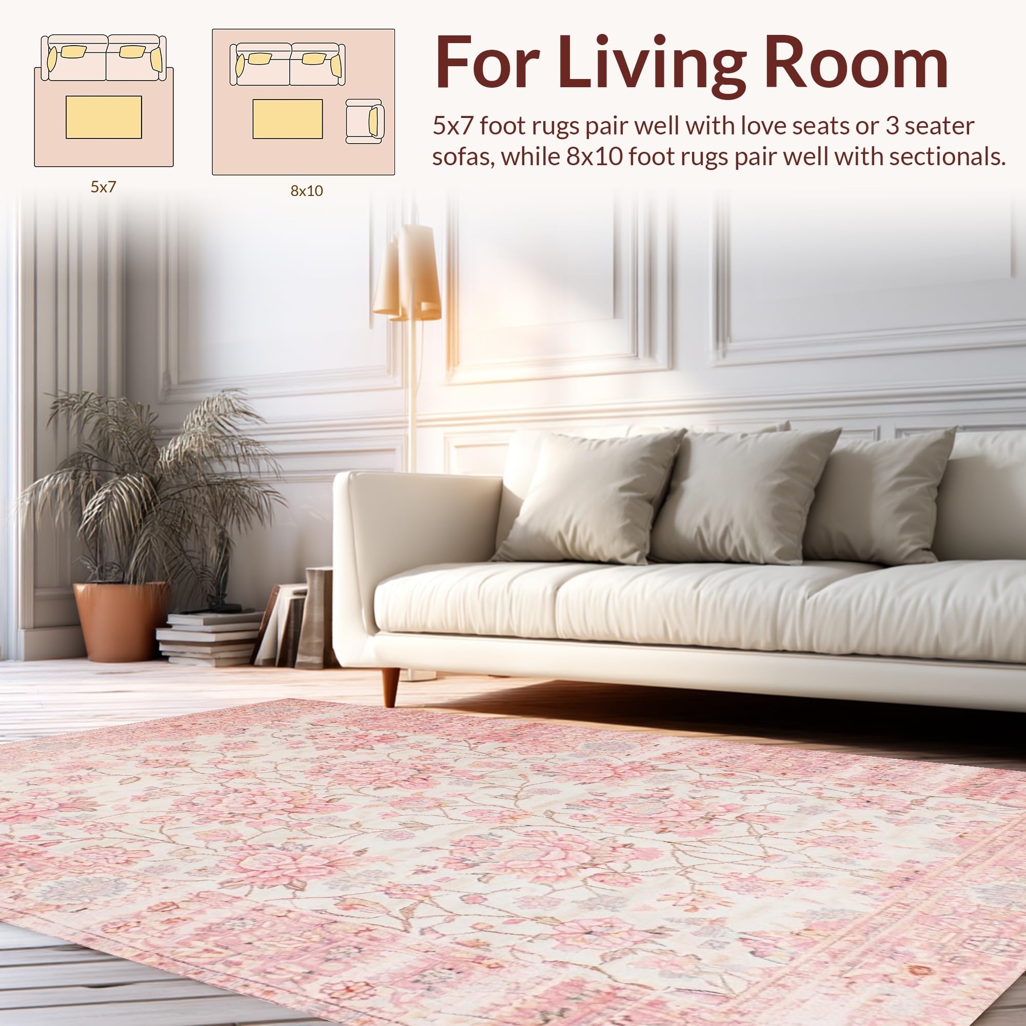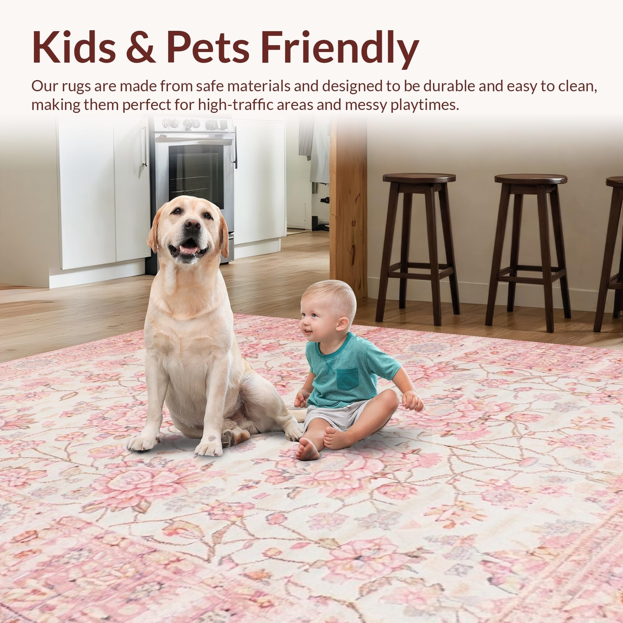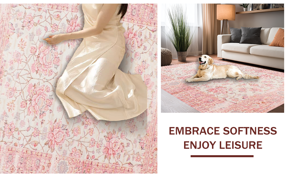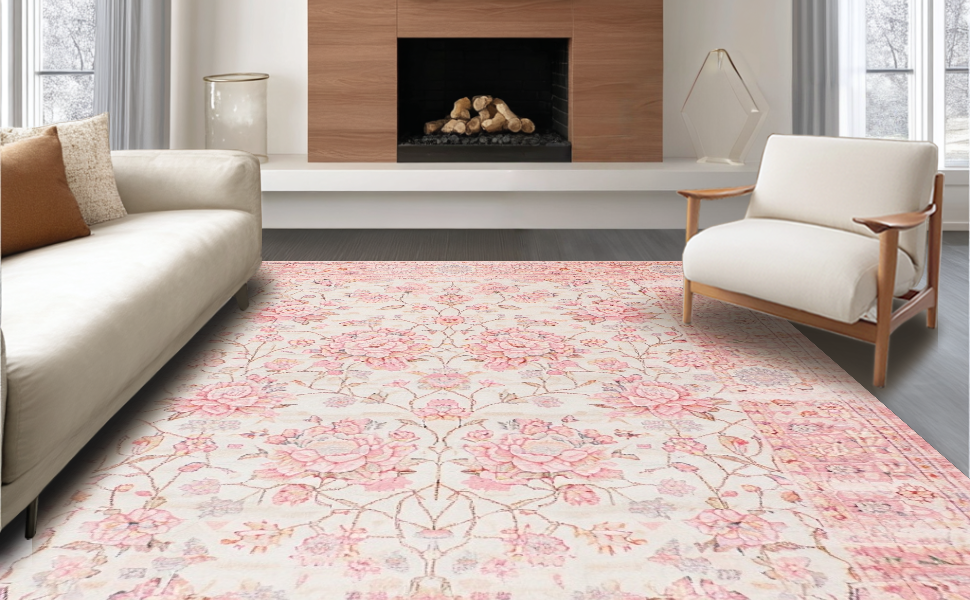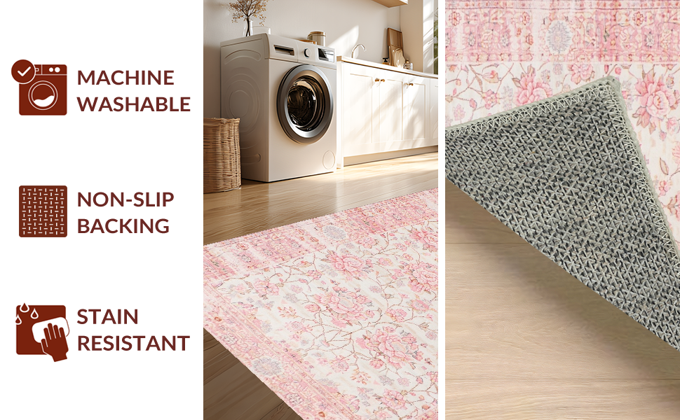 Ultra Soft Area Rug, Non Slip, Stain Resistant, Washable Area Rugs for Living Room, Bedroom, Elegant Earthy Tone Trellis Arrangement(Pink) Overview: