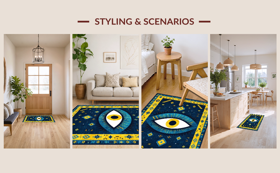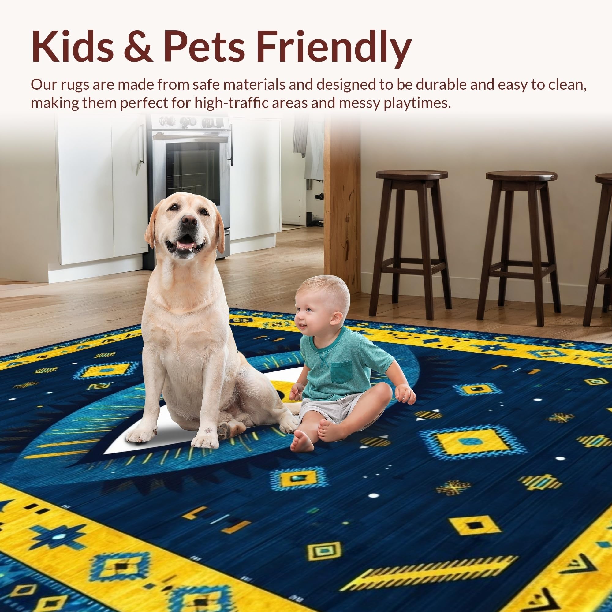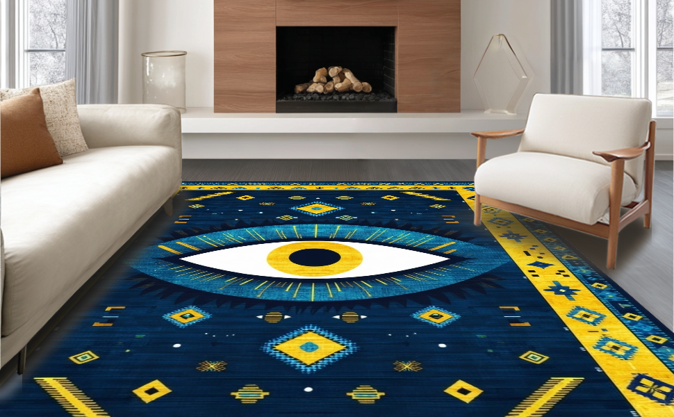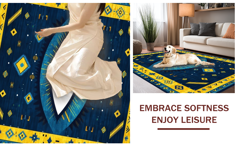 Ultra Soft Area Rug, Non Slip, Stain Resistant, Washable Area Rugs for Living Room, Bedroom, Elegant Ethnic Bold Pattern(Blue) Overview: