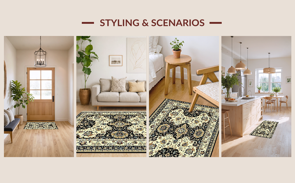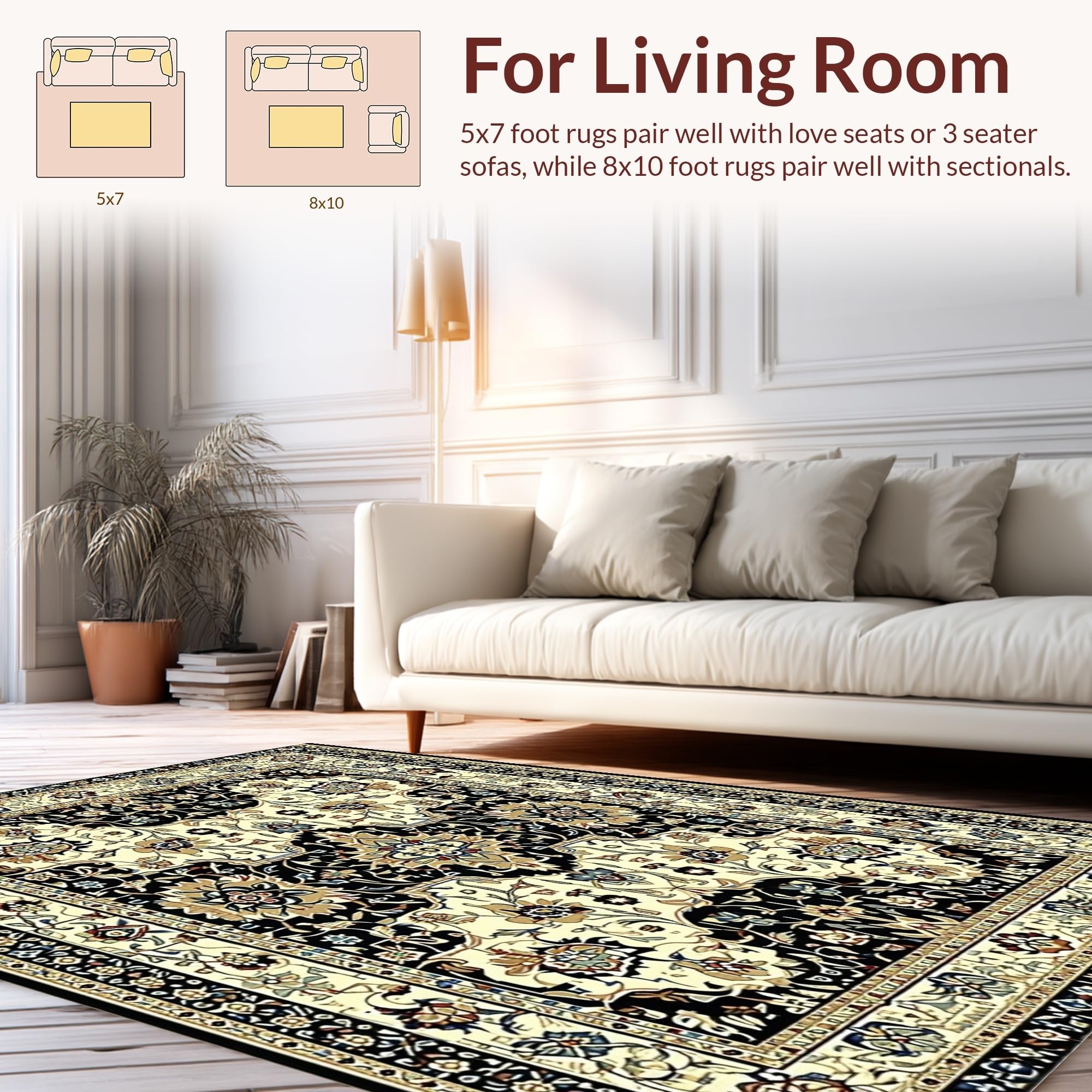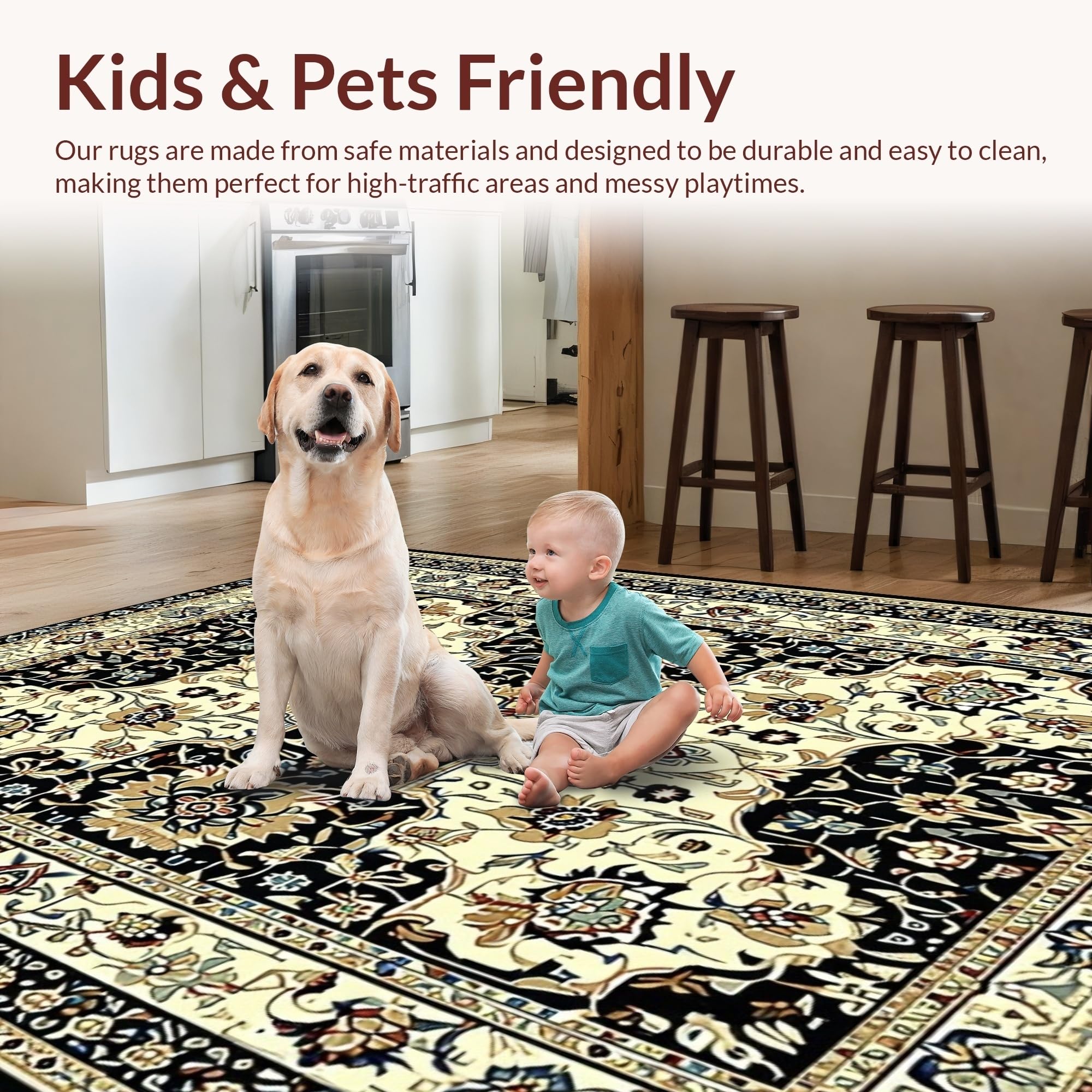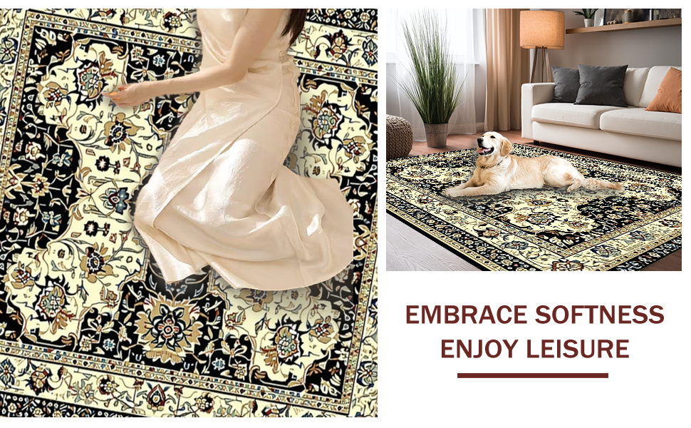 Ultra Soft Area Rug, Non Slip, Stain Resistant, Washable Area Rugs for Living Room, Bedroom, Elegant Faded Patterned Charm(Beige) Overview: