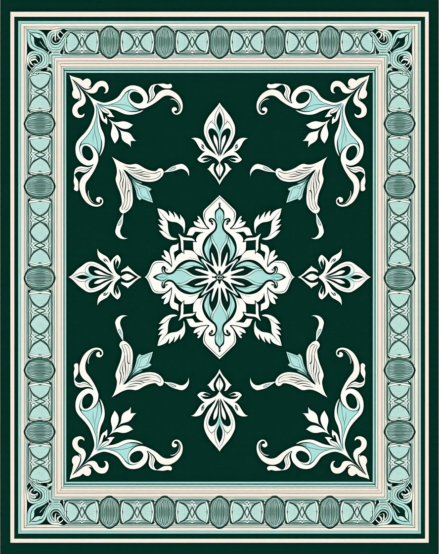 Elegant Floral Arabesque Weathered Decorative Eclectic Motif(Green)