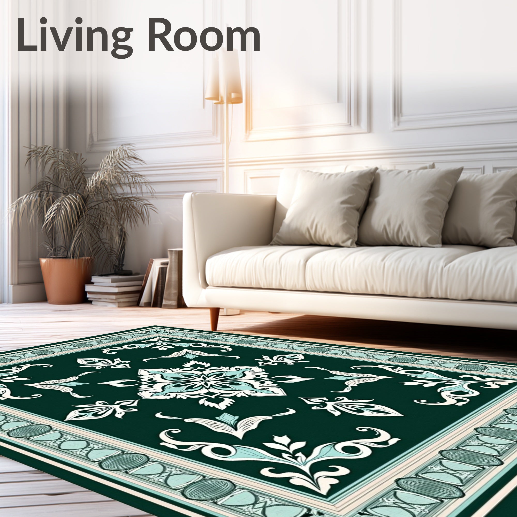 Flatwoven High Traffic Area Rug, Elegant Floral Arabesque Weathered Decorative Eclectic Motif, Non Slip, Stain Resistant, Washable Area Rugs for Living Room, Bedroom (Green) Overview:
