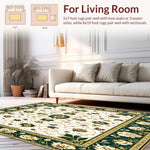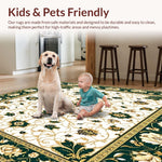 Ultra Soft Area Rug, Non Slip, Stain Resistant, Washable Area Rugs for Living Room, Bedroom, Elegant Floral Area with Green and Gold Accents for Classic Decor(Green) Overview: