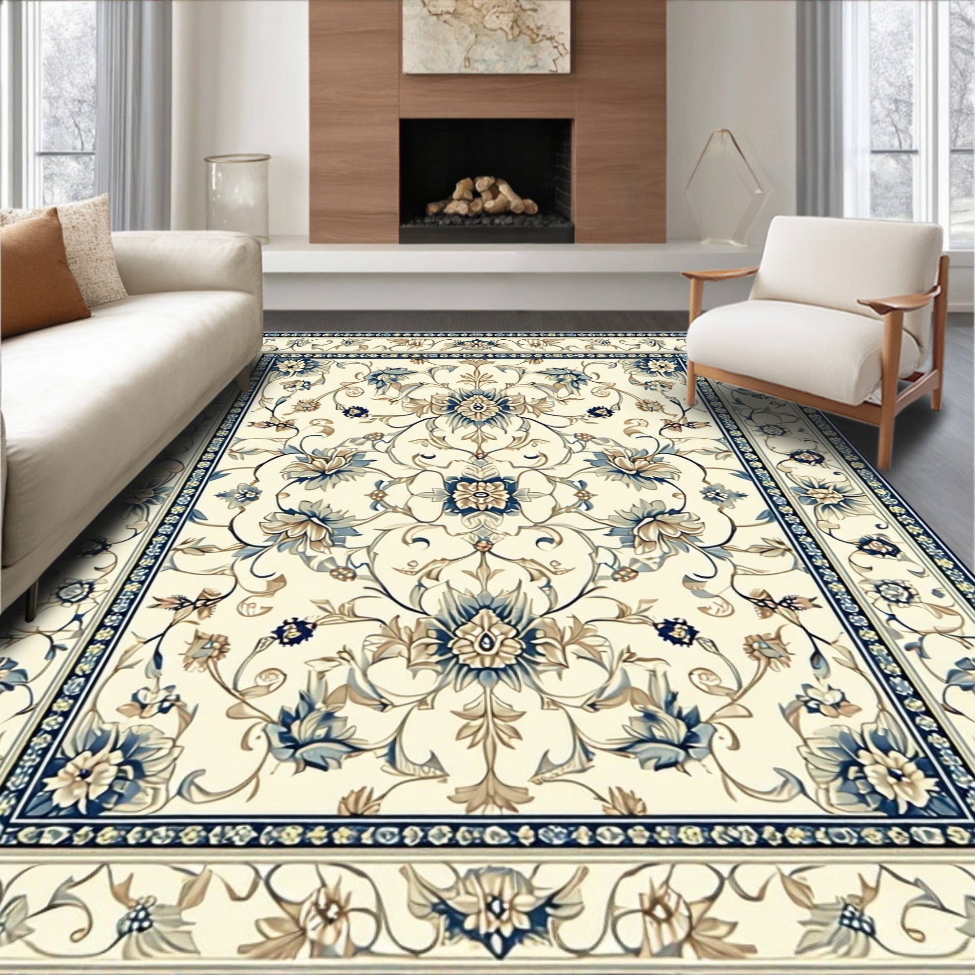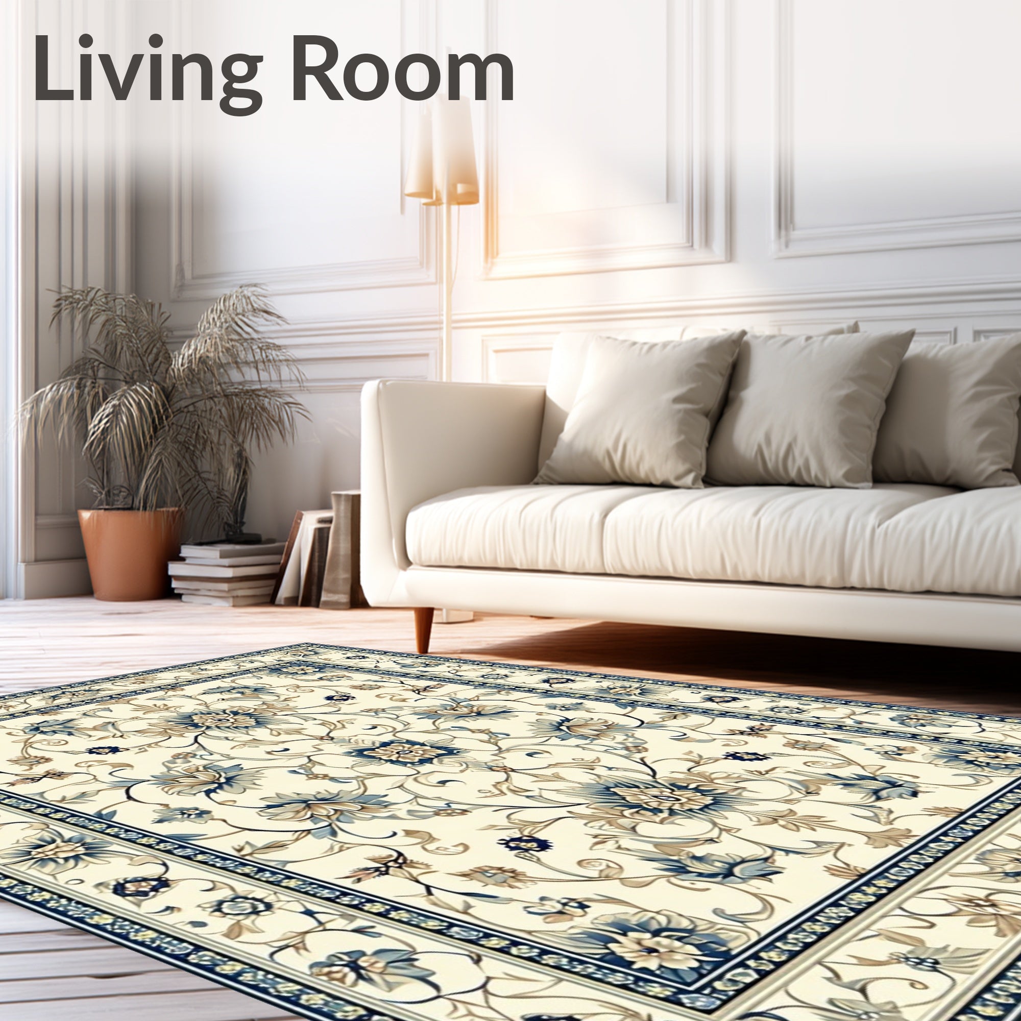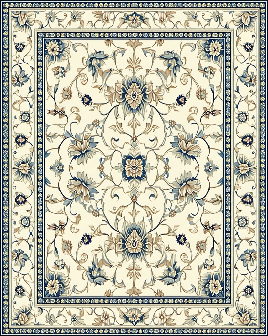 Flatwoven High Traffic Area Rug, Elegant Floral Beige and Azure, Non Slip, Stain Resistant, Washable Area Rugs for Living Room, Bedroom (Beige) Overview: