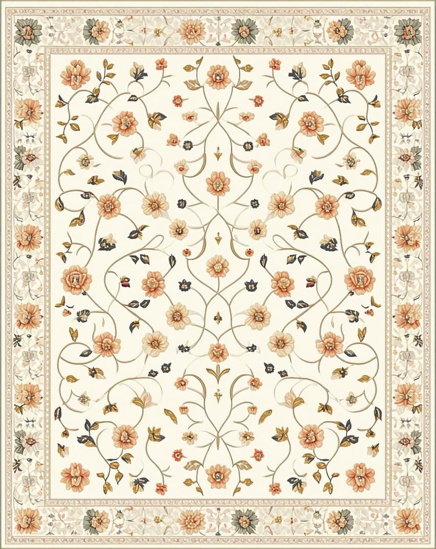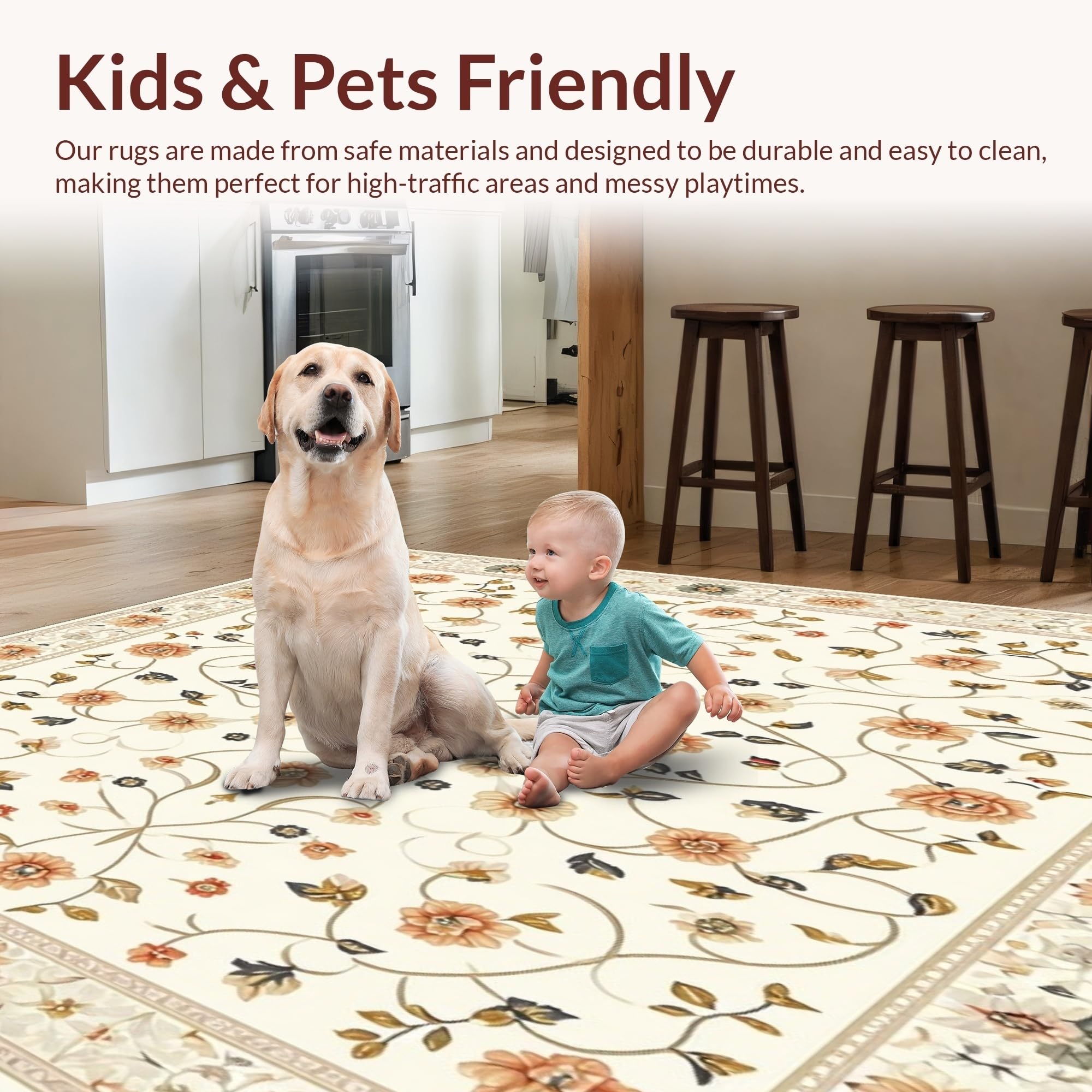 Ultra Soft Area Rug, Non Slip, Stain Resistant, Washable Area Rugs for Living Room, Bedroom, Elegant Floral Boho with Intricate Beige and Khaki(Ivory) Overview: