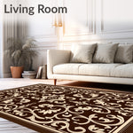 Flatwoven High Traffic Area Rug, Elegant Floral Damask Scroll Interwoven Artisan Crafted, Non Slip, Stain Resistant, Washable Area Rugs for Living Room, Bedroom (Brown) Overview: