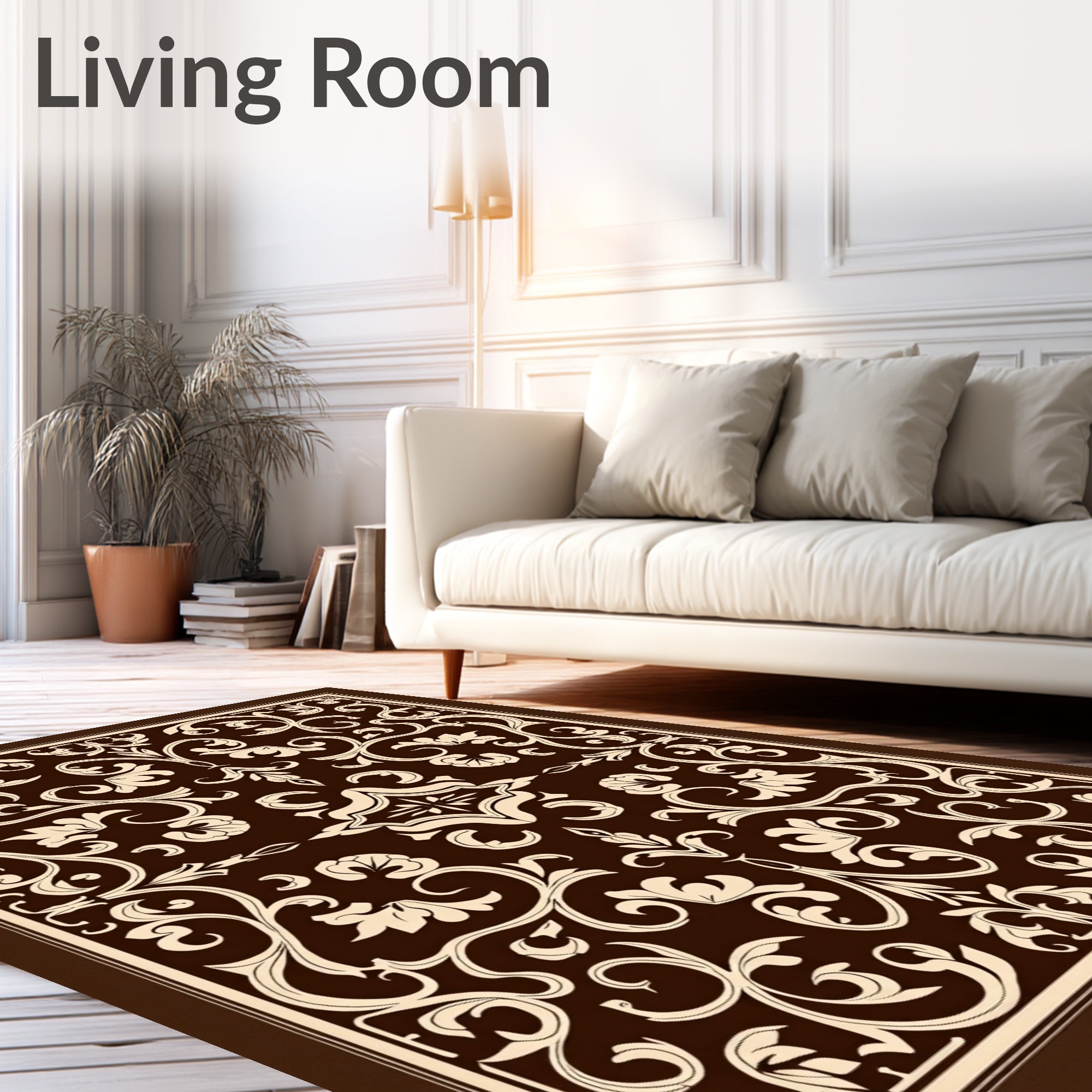 Elegant Floral Damask Scroll Interwoven Artisan Crafted(Brown)