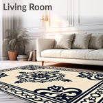 Flatwoven High Traffic Area Rug, Elegant Floral Damask Symmetrical Botanical Luxurious, Non Slip, Stain Resistant, Washable Area Rugs for Living Room, Bedroom (Beige) Overview: