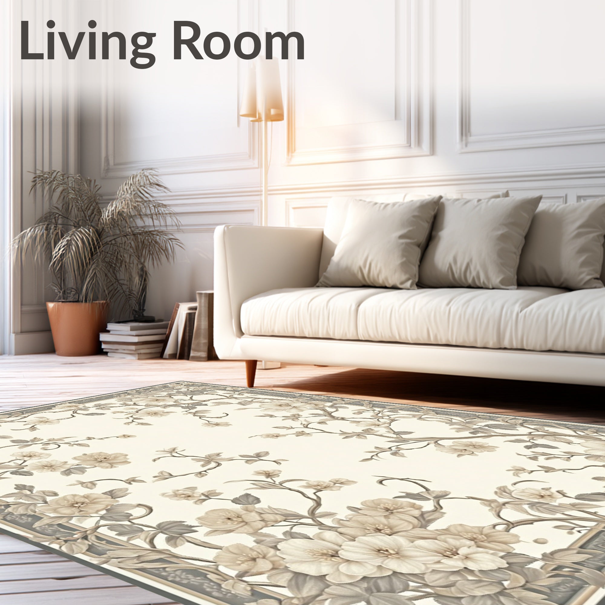 Flatwoven High Traffic Area Rug, Elegant Floral in Smoke and Beige Non Shedding, Non Slip, Stain Resistant, Washable Area Rugs for Living Room, Bedroom (Beige) Overview: