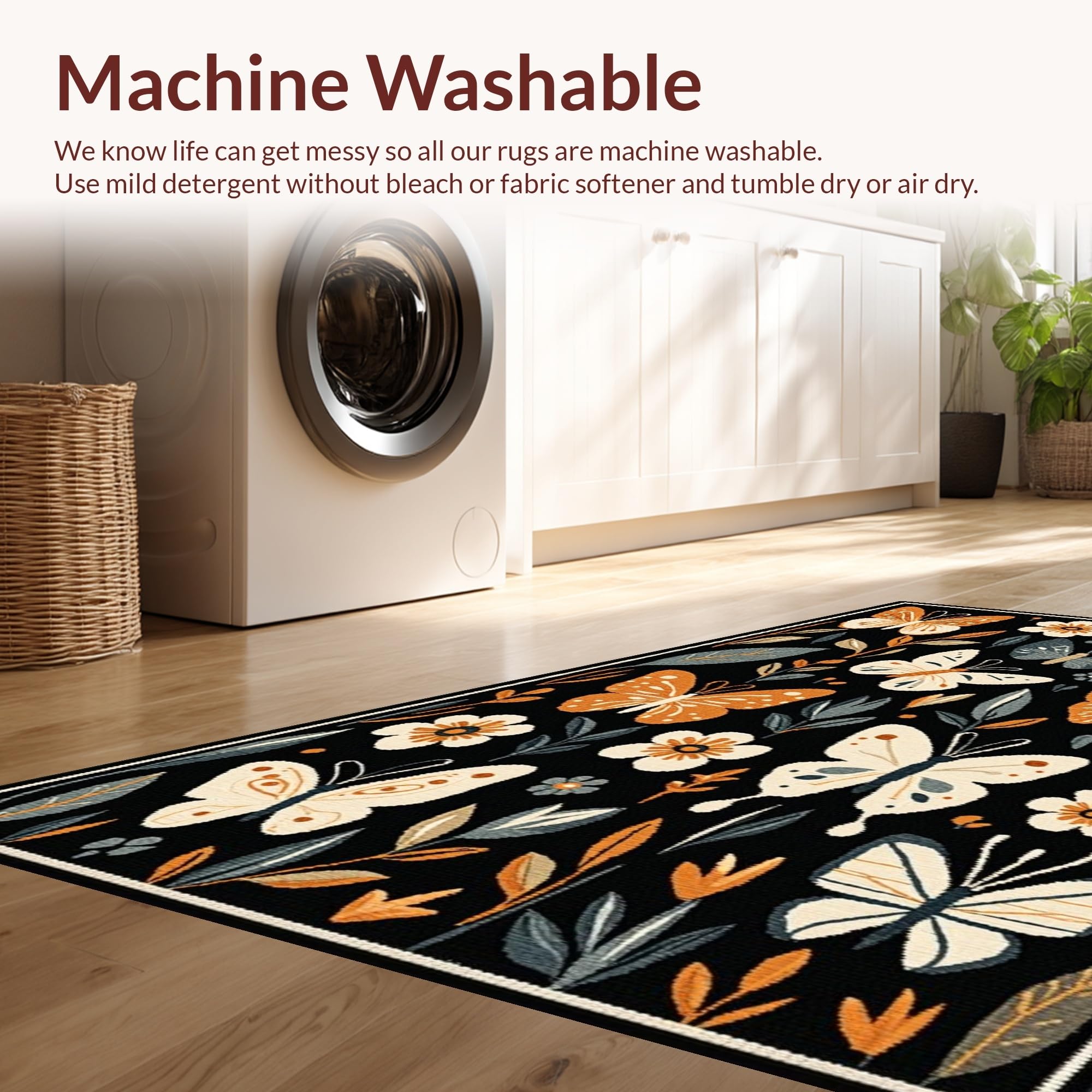 - Machine Washable: Our rugs can be easily thrown in the wash machine.