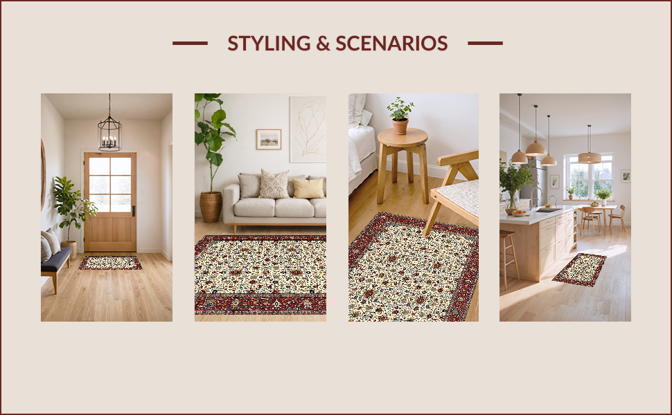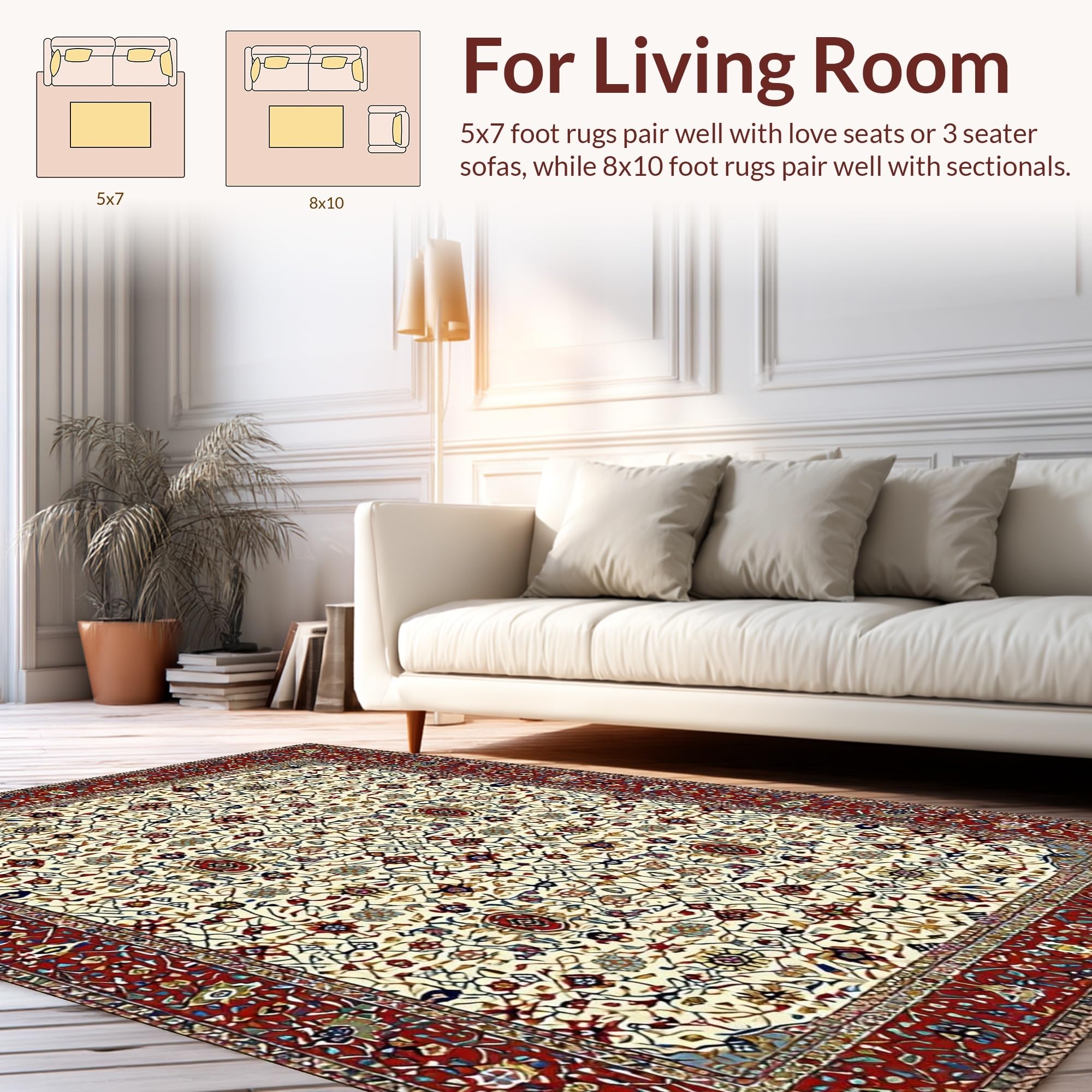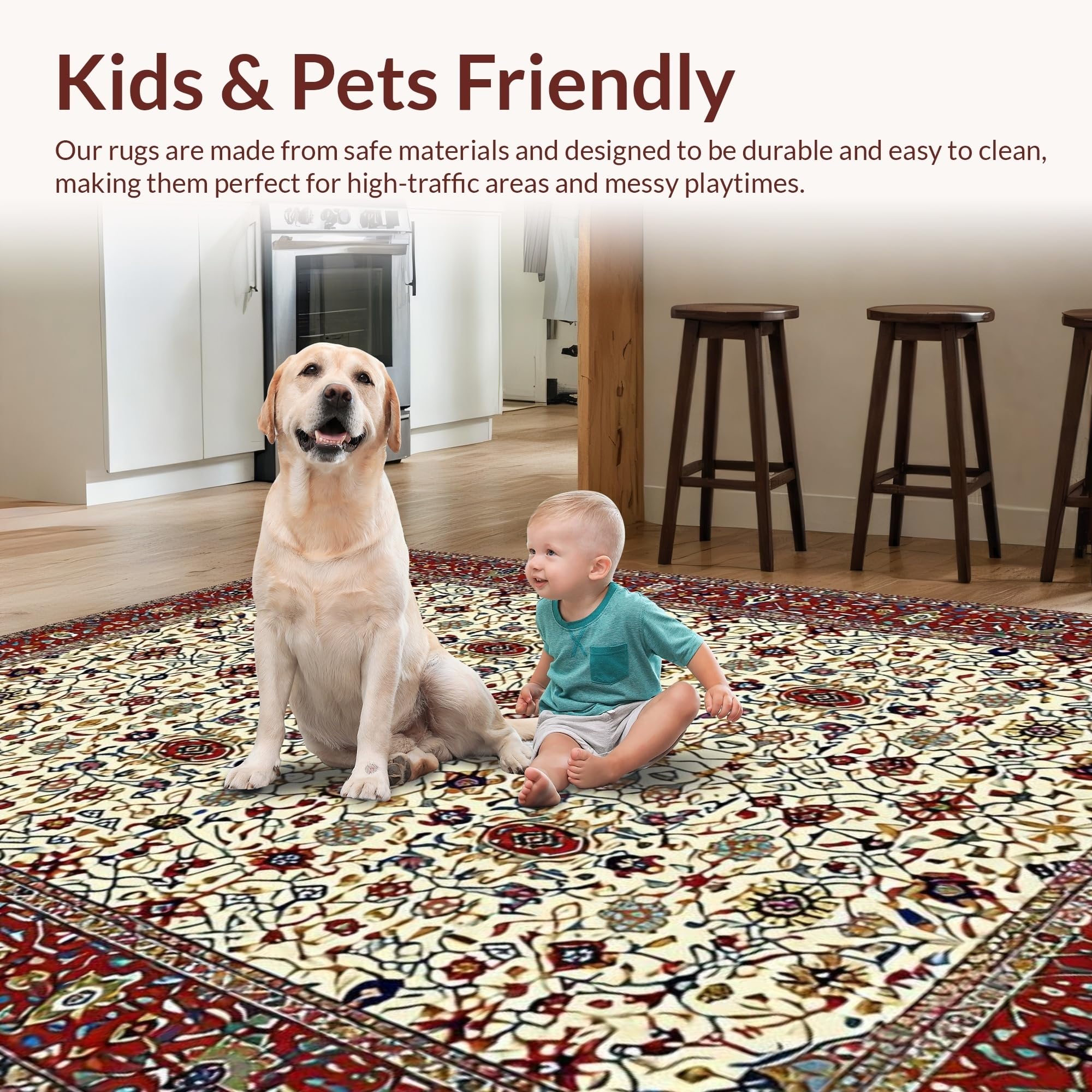 Ultra Soft Area Rug, Non Slip, Stain Resistant, Washable Area Rugs for Living Room, Bedroom, Elegant Floral Medallion Arrangement(Beige) Overview: