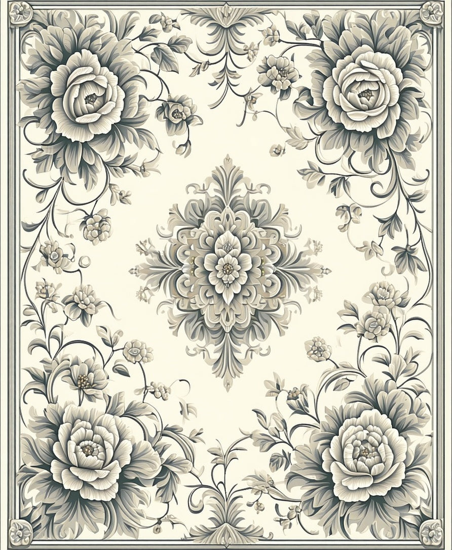 Elegant Floral Medallion in Smoke and Beige Non Shedding(Beige)