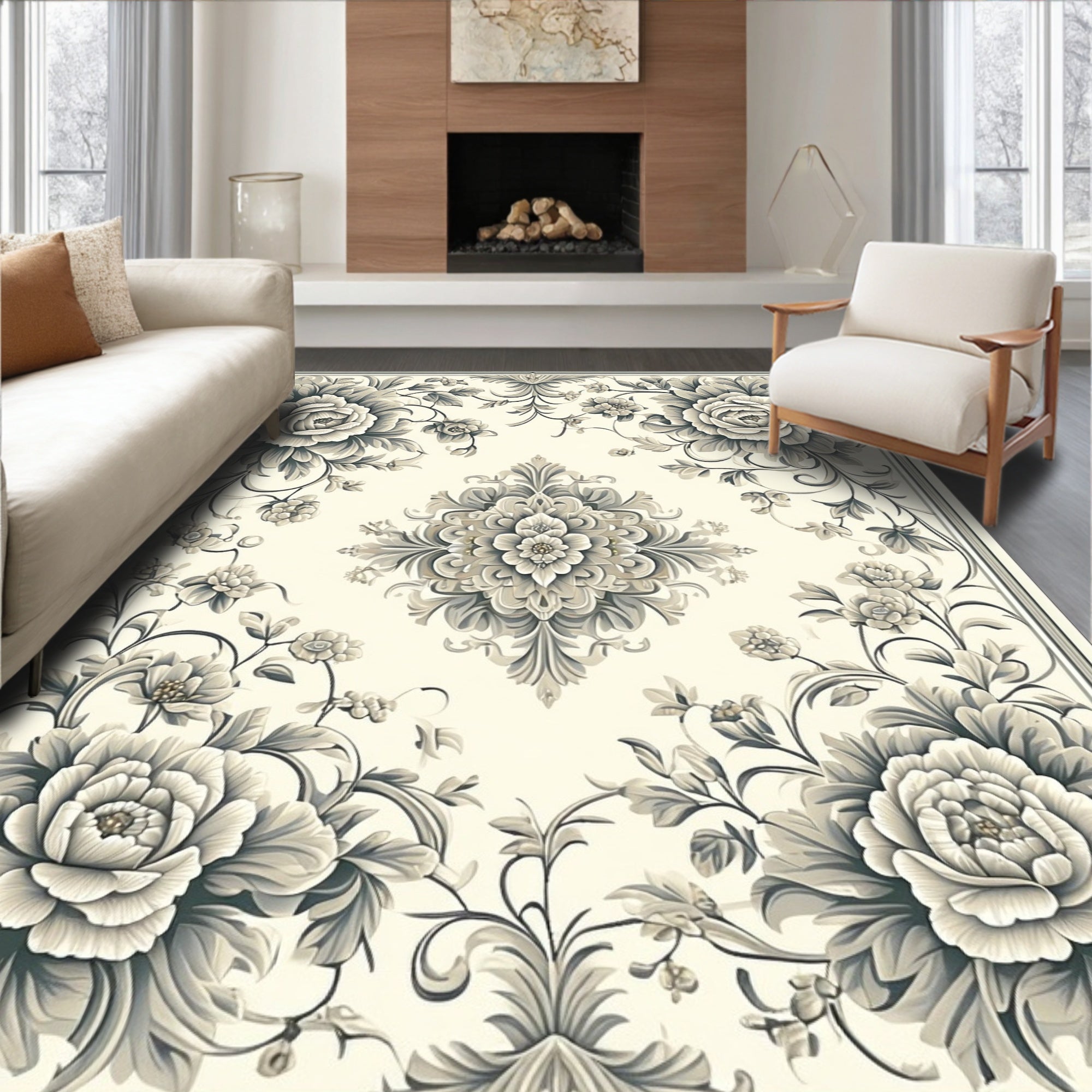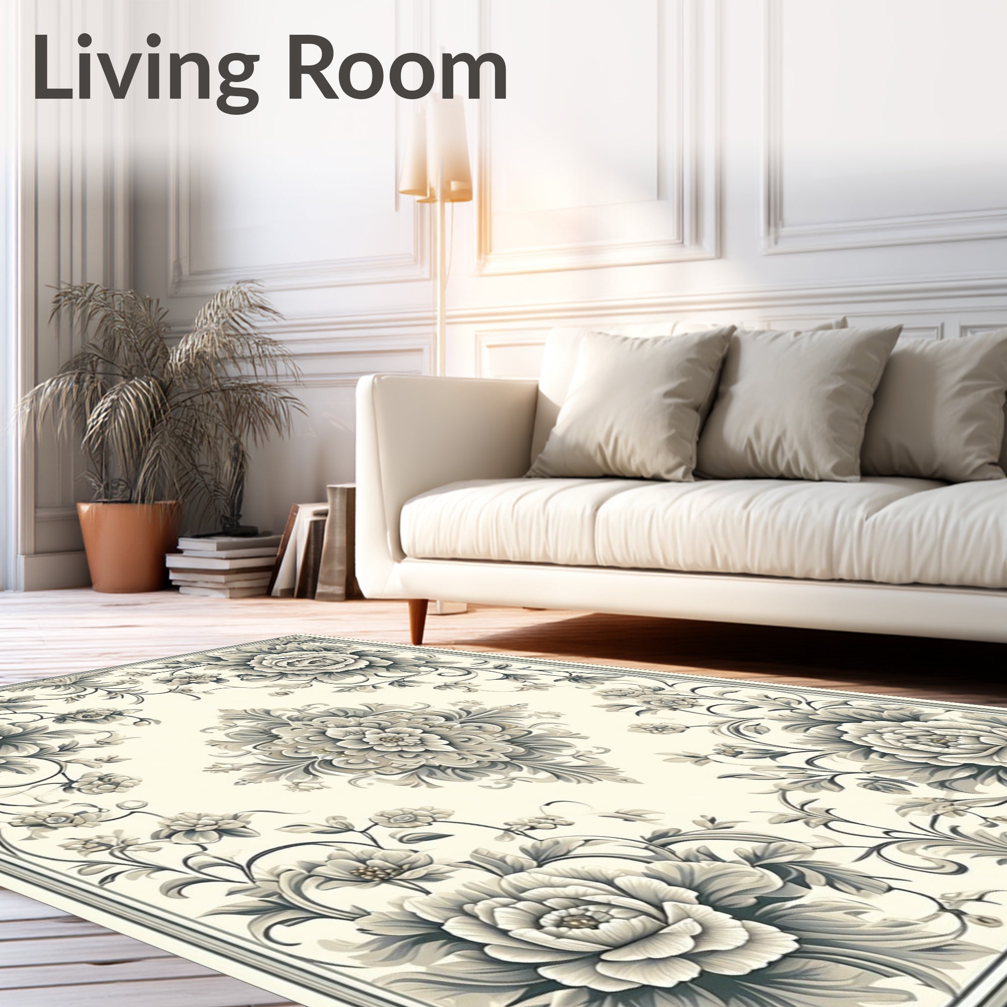 Flatwoven High Traffic Area Rug, Elegant Floral Medallion in Smoke and Beige Non Shedding, Non Slip, Stain Resistant, Washable Area Rugs for Living Room, Bedroom (Beige) Overview: