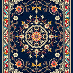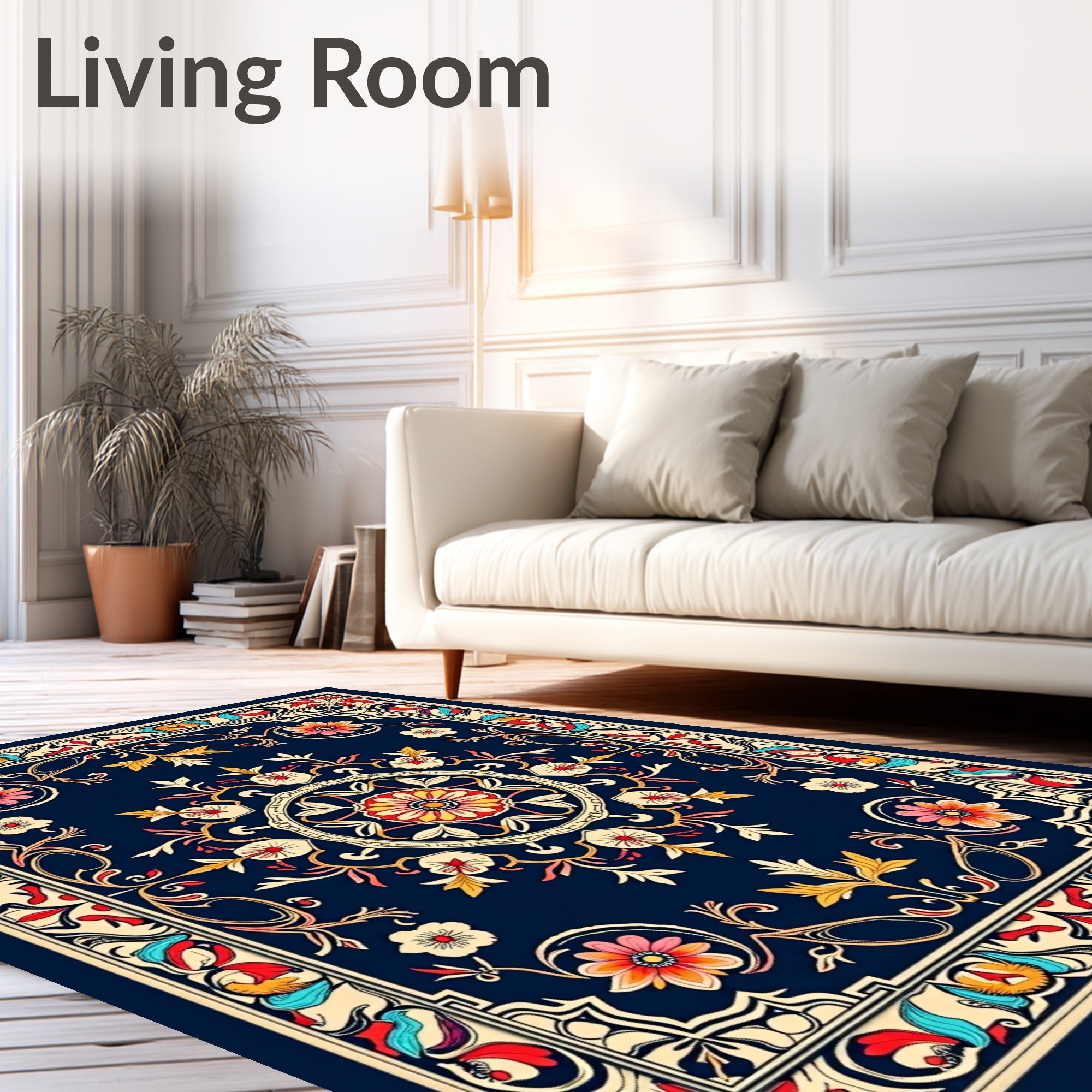 Flatwoven High Traffic Area Rug, Elegant Floral Medallion With Interlocking Vines And Petals, Non Slip, Stain Resistant, Washable Area Rugs for Living Room, Bedroom (Navy) Overview: