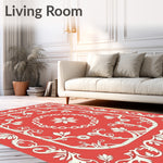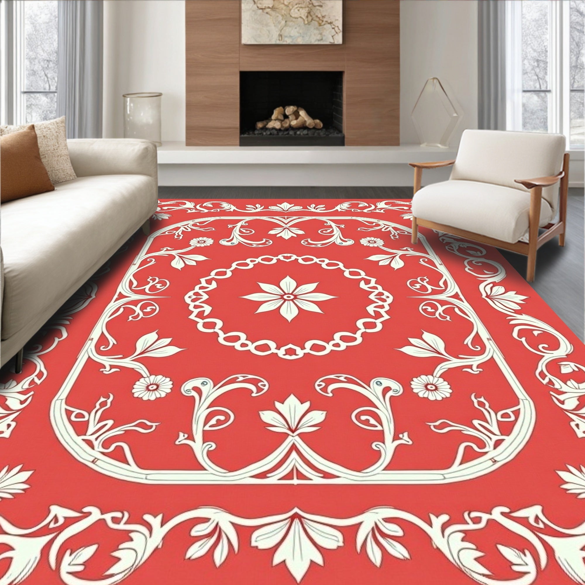 Ultra Soft Area Rug, Non Slip, Stain Resistant, Washable Area Rugs for Living Room, Bedroom, Elegant Floral Scroll Anti Slip Lightweight Decorative Throw(Red) Overview: