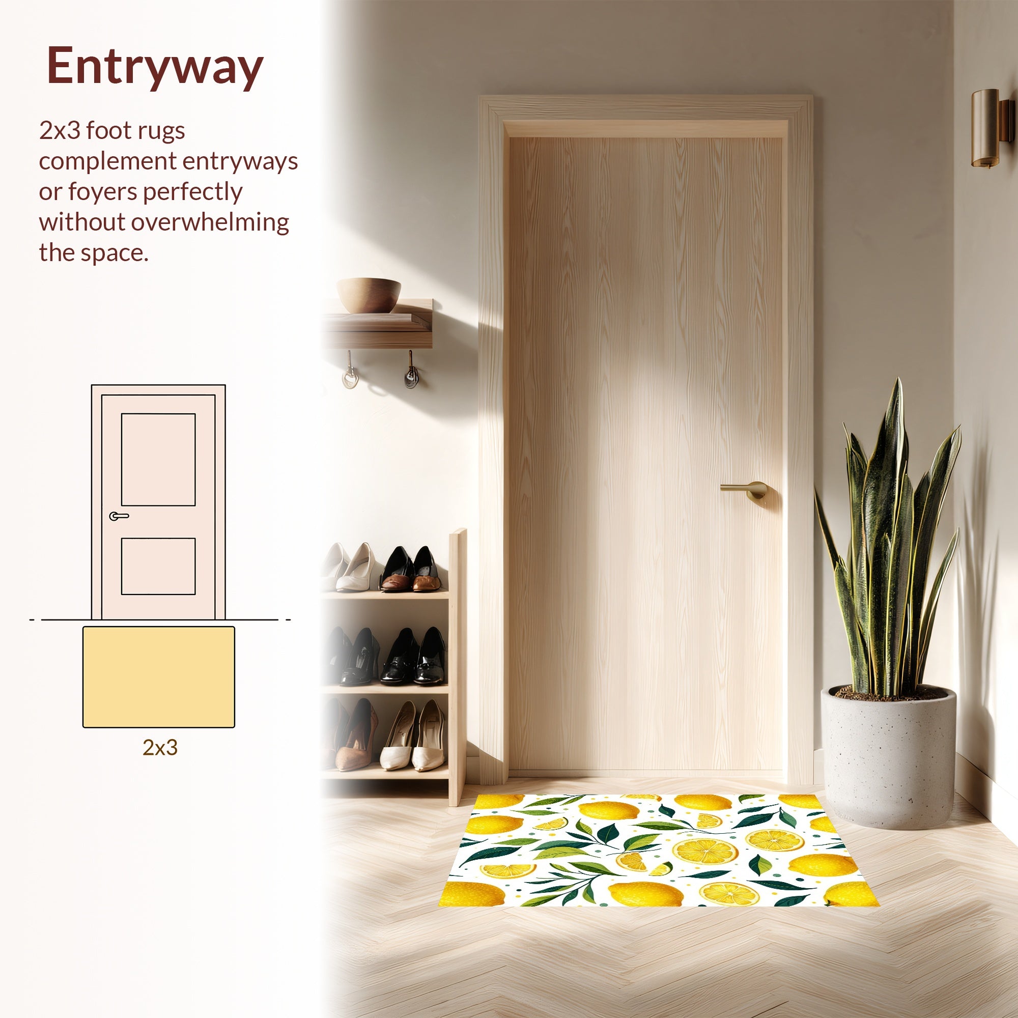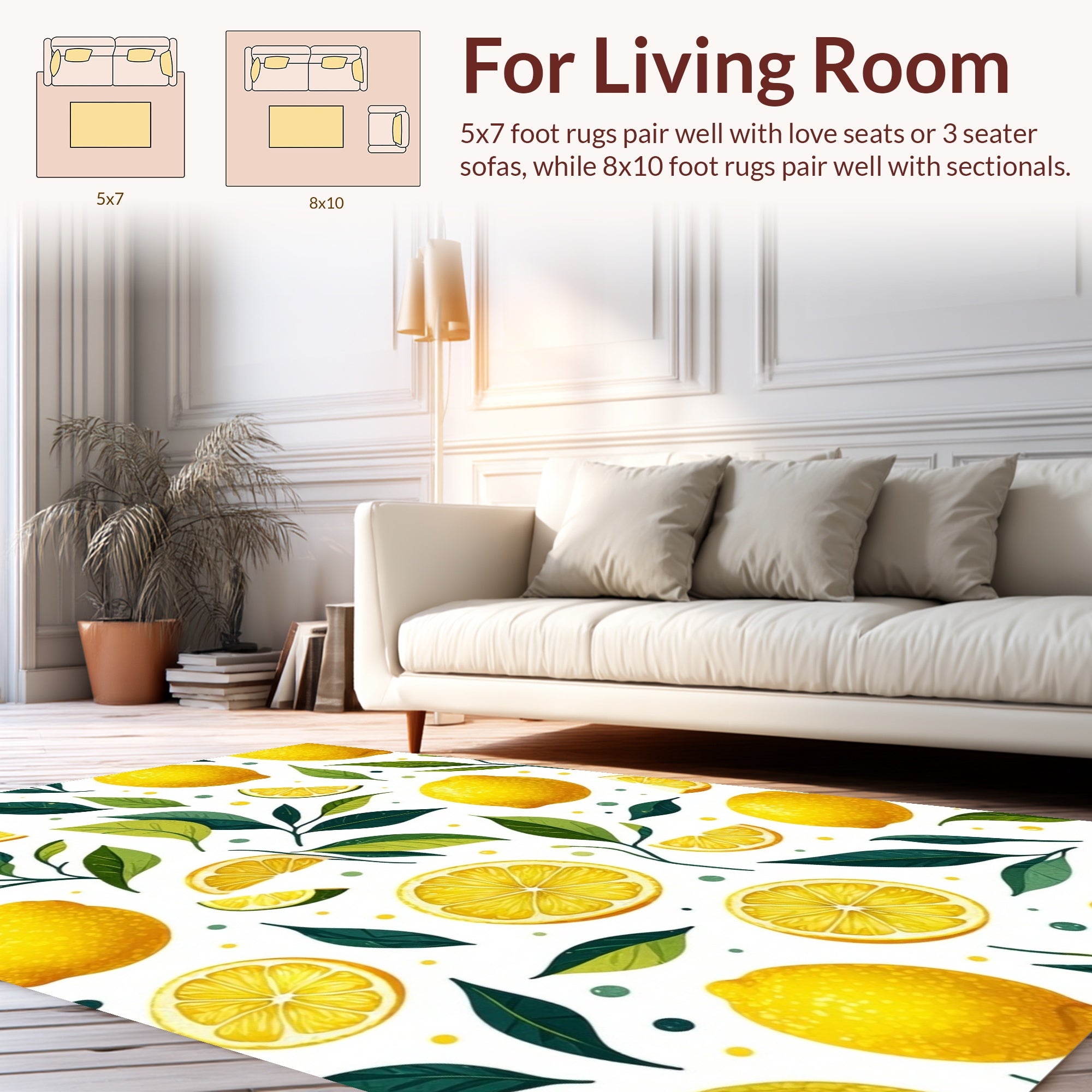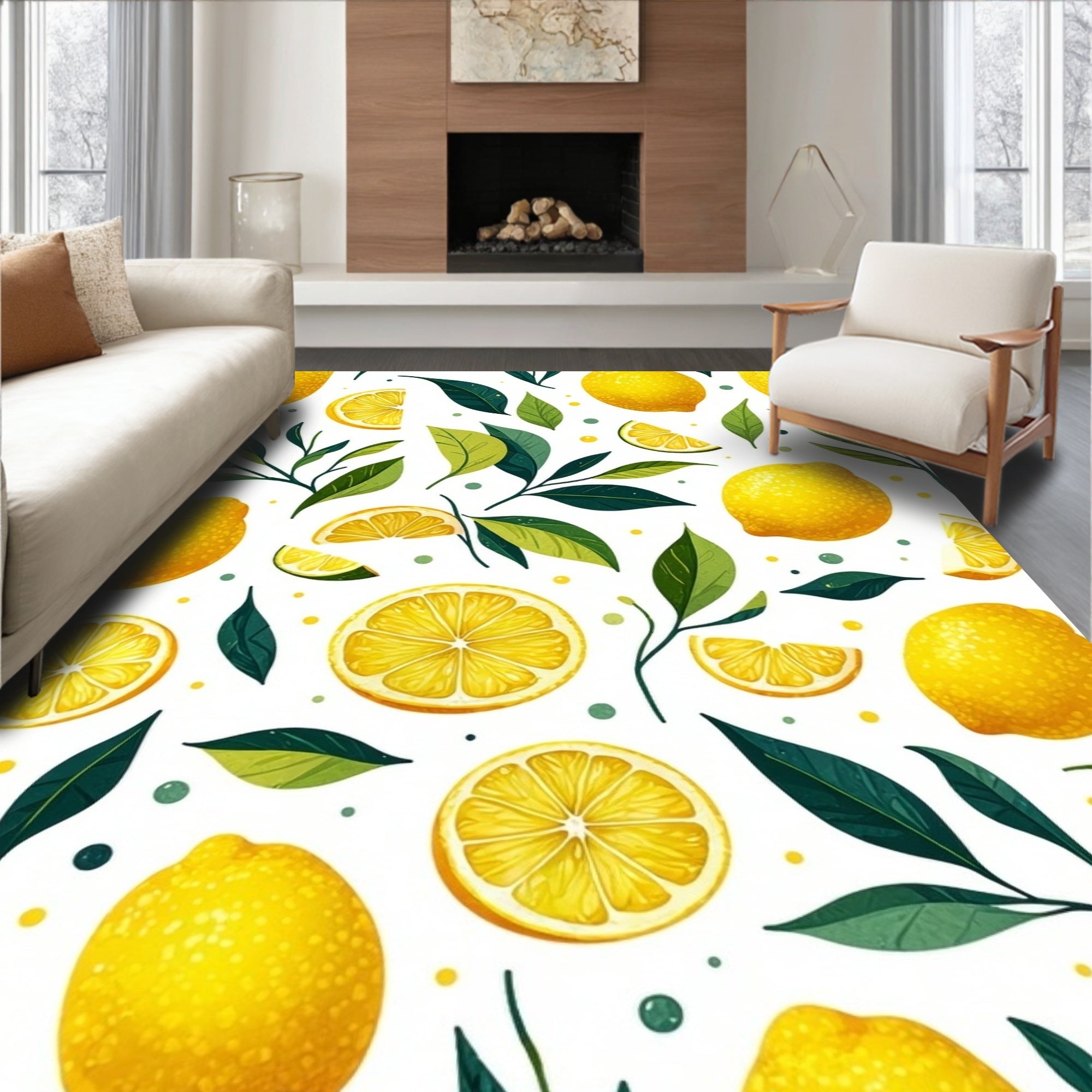 Flatwoven High Traffic Area Rug, Elegant Fresh Citrus Arrangement, Non Slip, Stain Resistant, Washable Area Rugs for Living Room, Bedroom (Yellow) Overview: