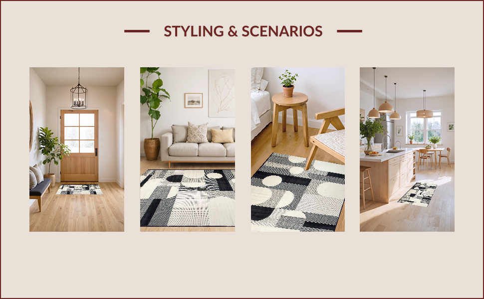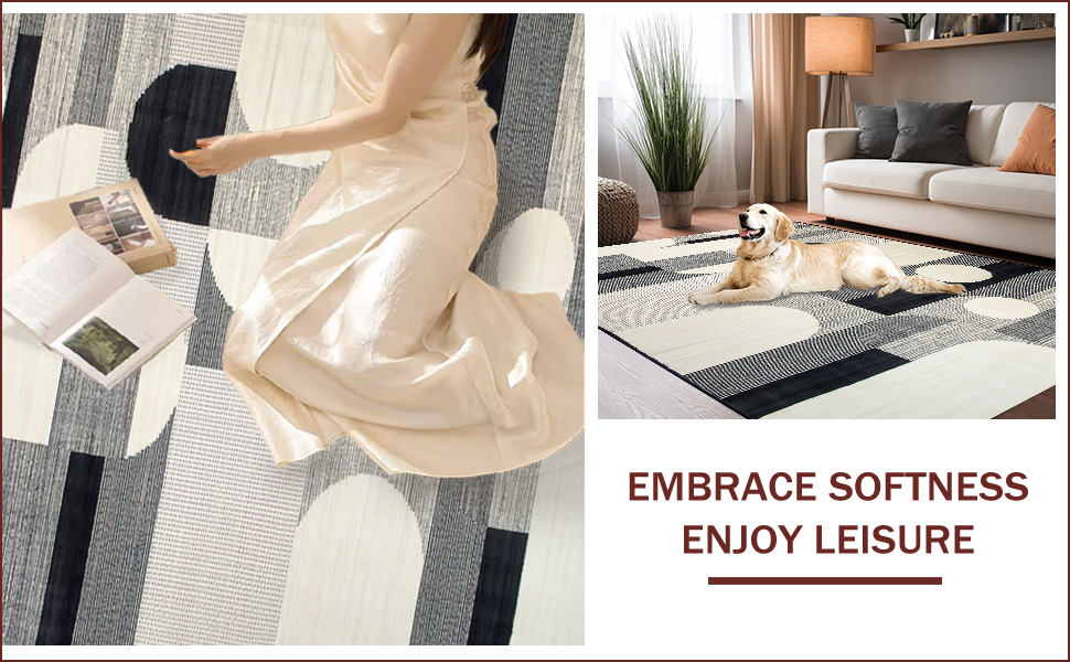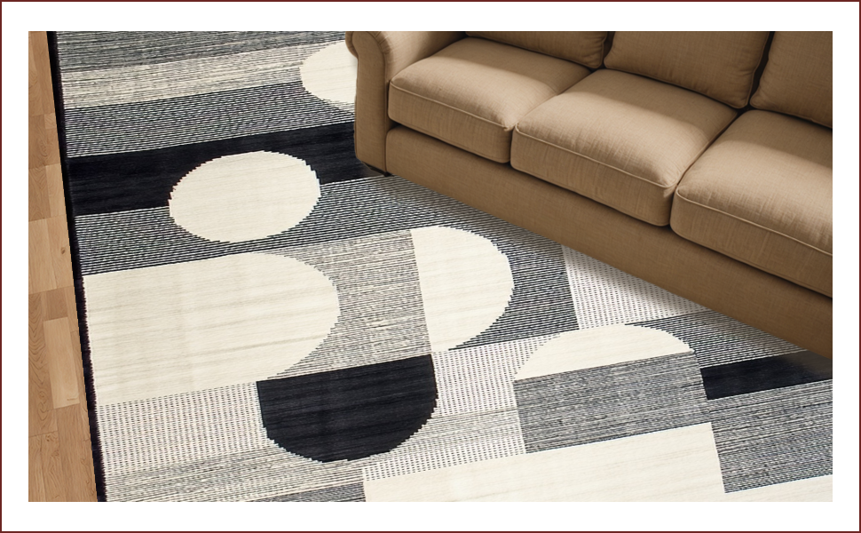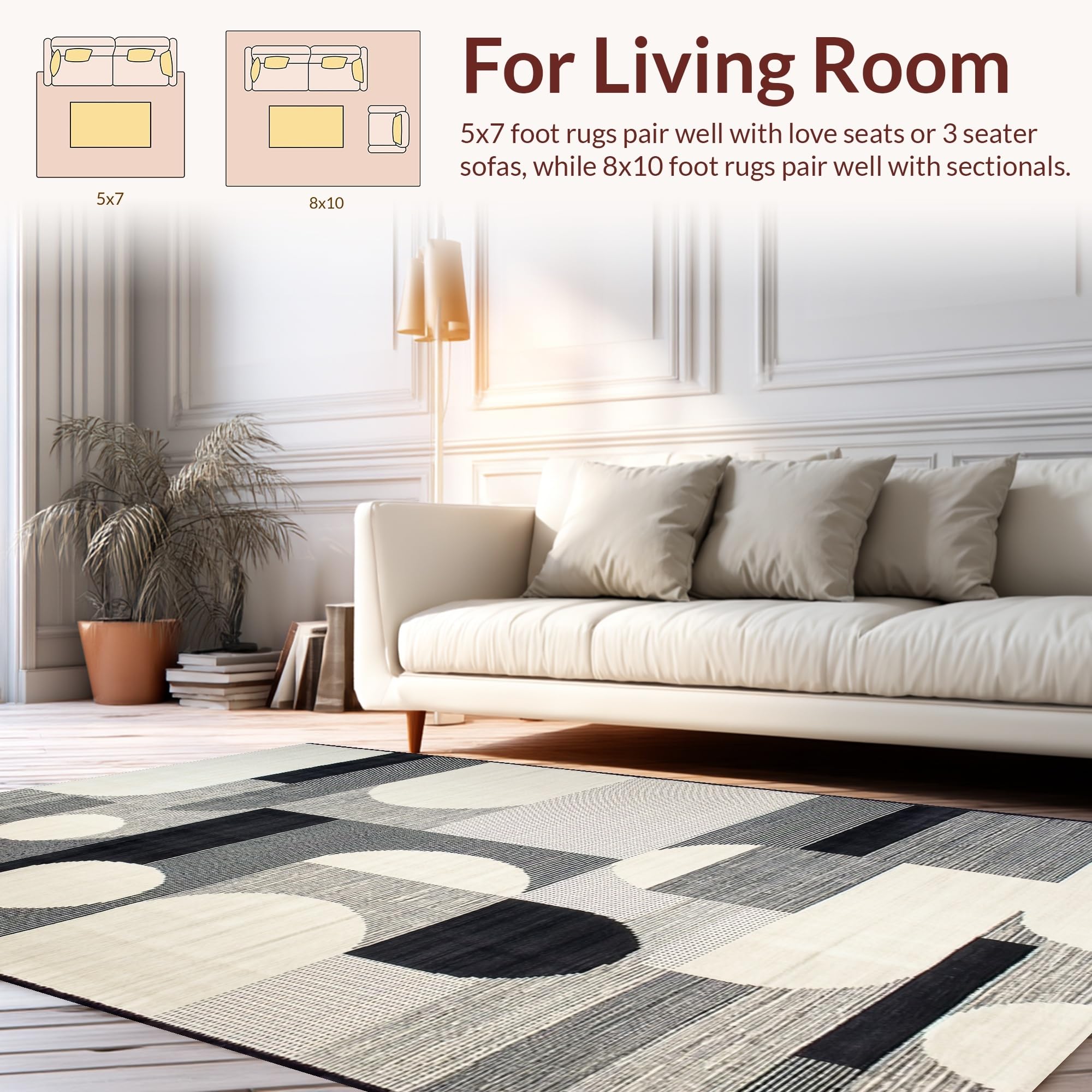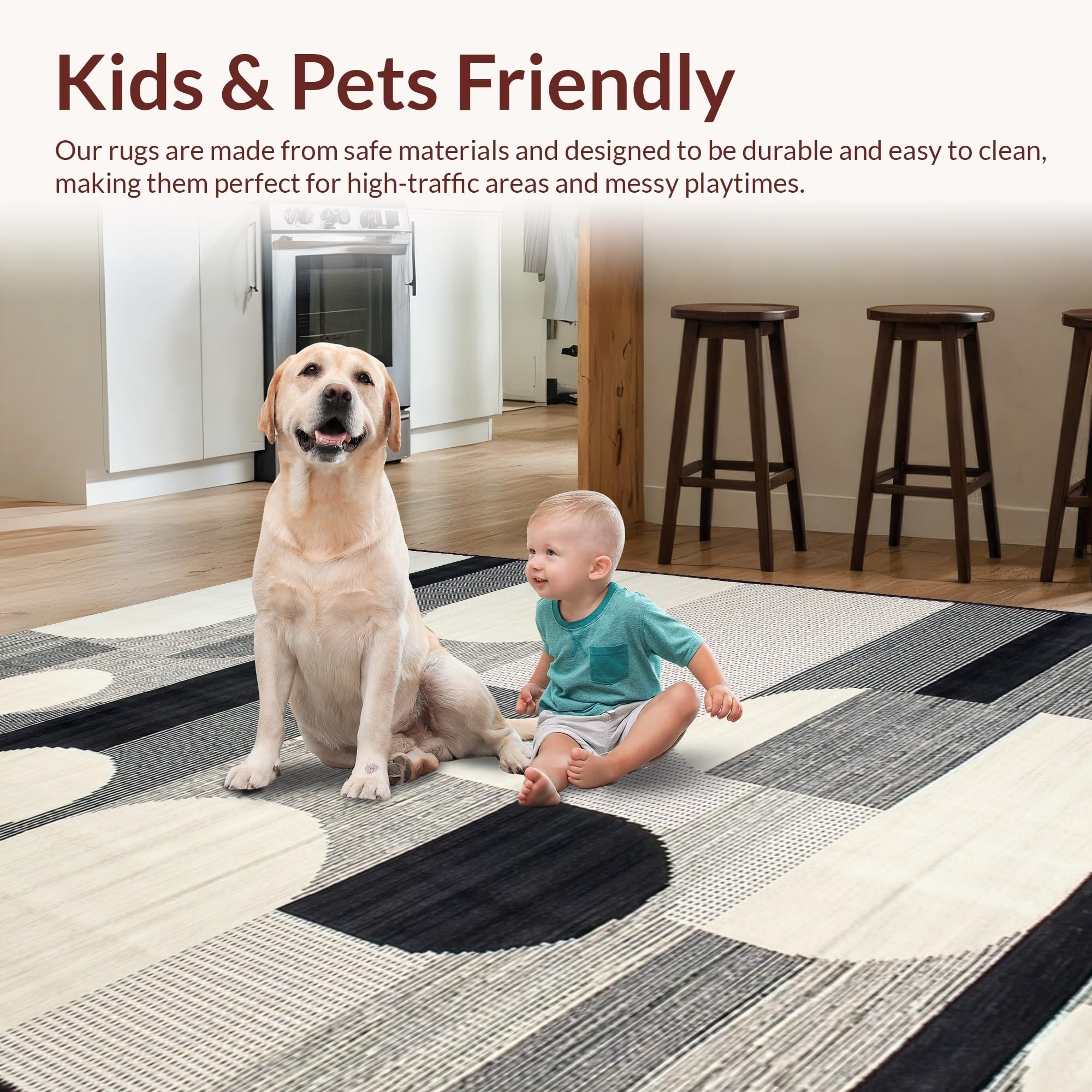 Ultra Soft Area Rug, Non Slip, Stain Resistant, Washable Area Rugs for Living Room, Bedroom, Elegant Geometric Black and Ivory Motif(Gray) Overview: