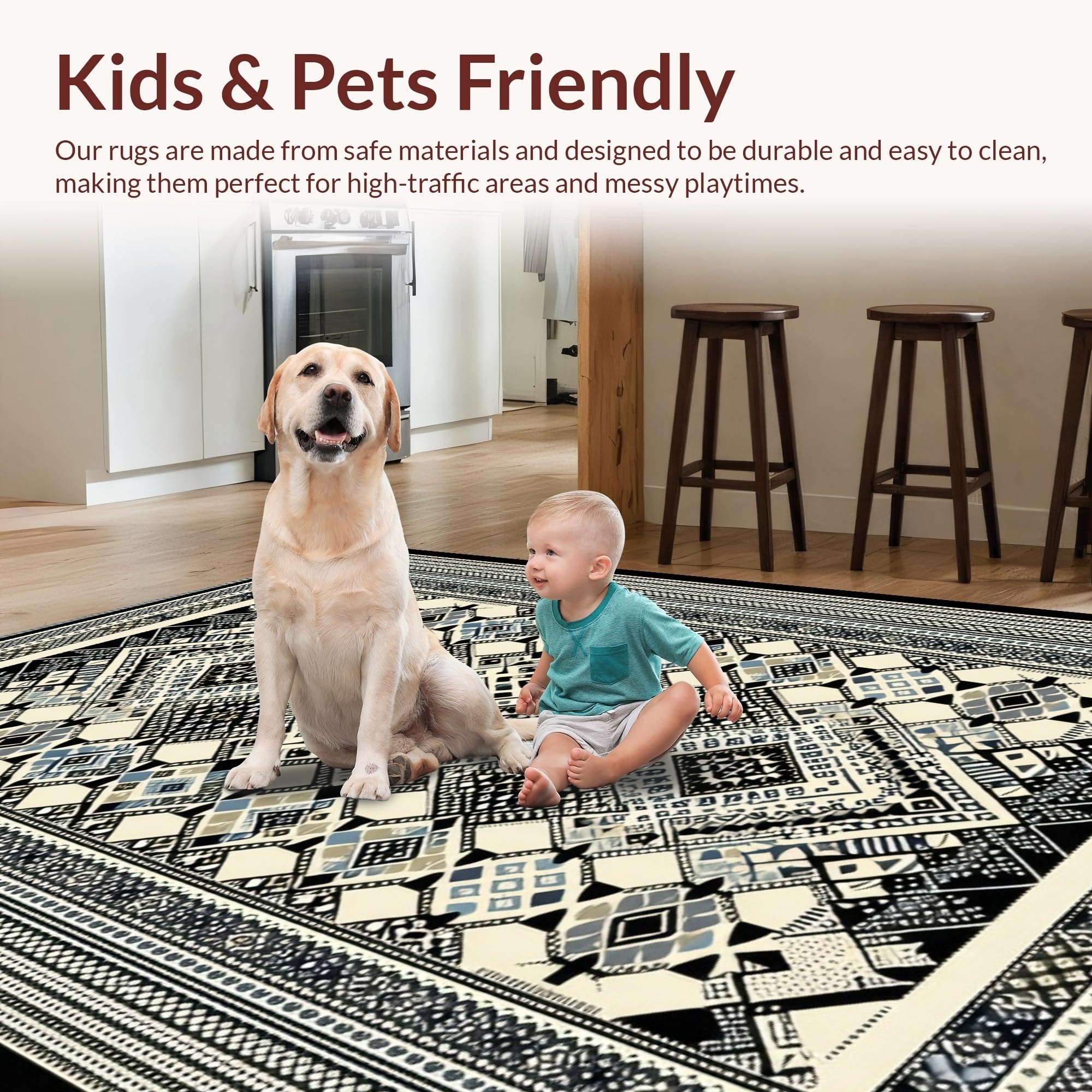 Ultra Soft Area Rug, Non Slip, Stain Resistant, Washable Area Rugs for Living Room, Bedroom, Elegant Geometric Diamond Texture(Black) Overview: