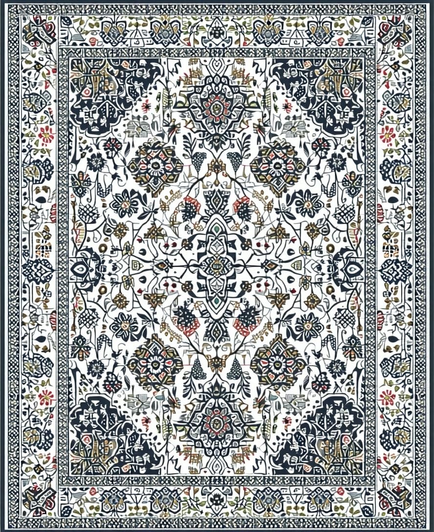 Ultra Soft Area Rug, Non Slip, Stain Resistant, Washable Area Rugs for Living Room, Bedroom, Elegant Geometric Gray Palette(White) Overview: