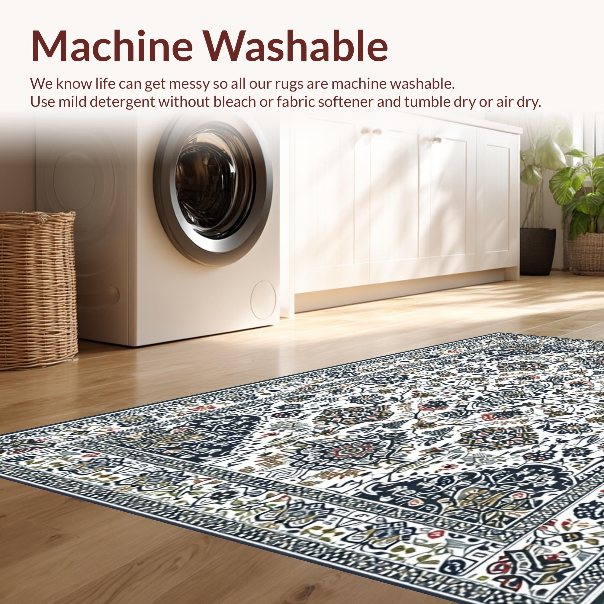 - Machine Washable: Our rugs can be easily thrown in the wash machine.