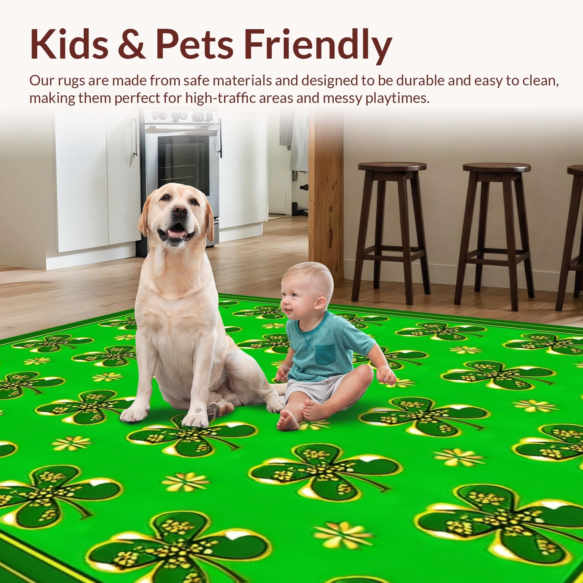 Ultra Soft Area Rug, Non Slip, Stain Resistant, Washable Area Rugs for Living Room, Bedroom, Elegant Gnome Design Fusion(Green) Overview: