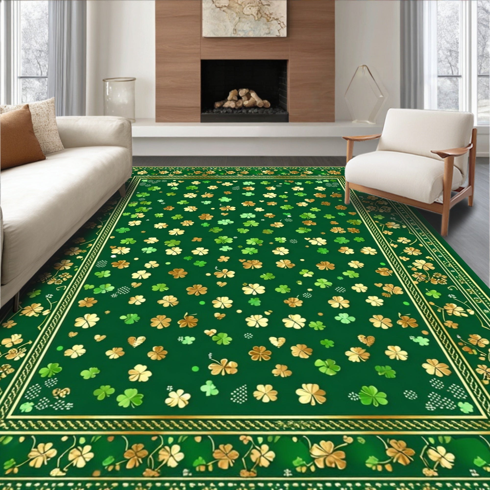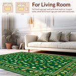 Flatwoven High Traffic Area Rug, Elegant Gold Accented Green Design, Non Slip, Stain Resistant, Washable Area Rugs for Living Room, Bedroom (Green) Overview: