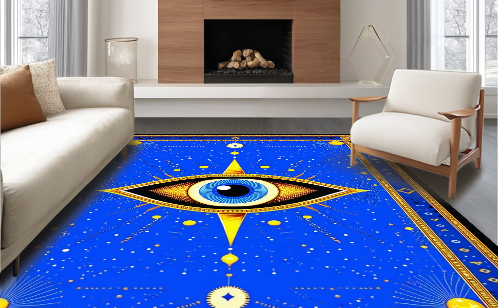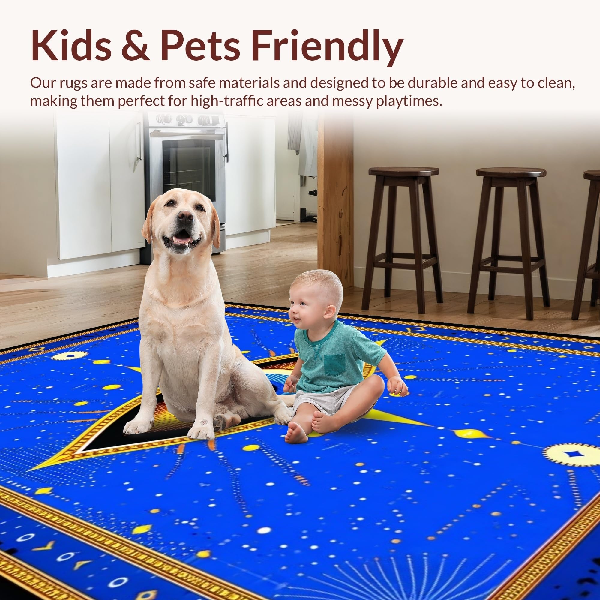Ultra Soft Area Rug, Non Slip, Stain Resistant, Washable Area Rugs for Living Room, Bedroom, Elegant Gold Geometric Entrance Rug(Blue) Overview: